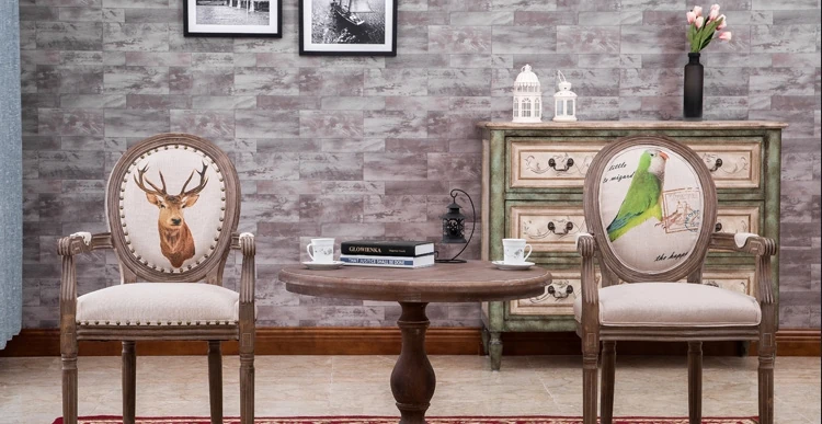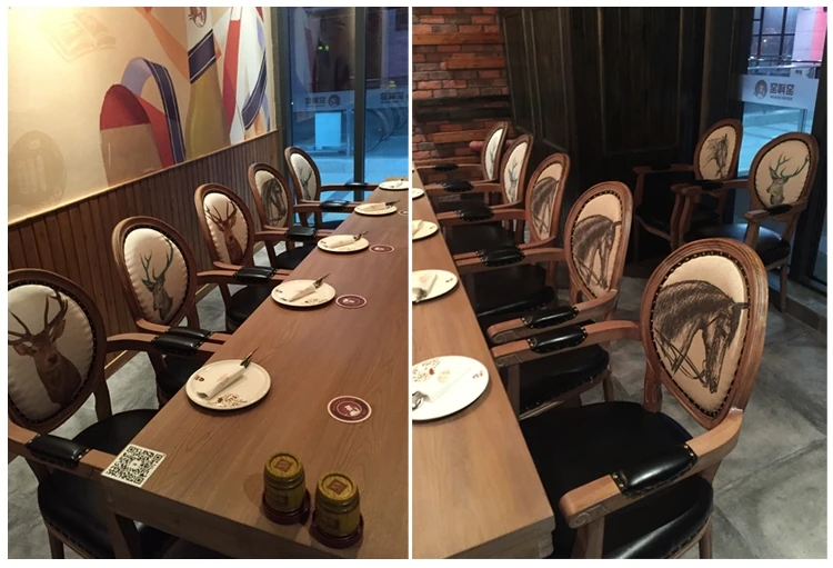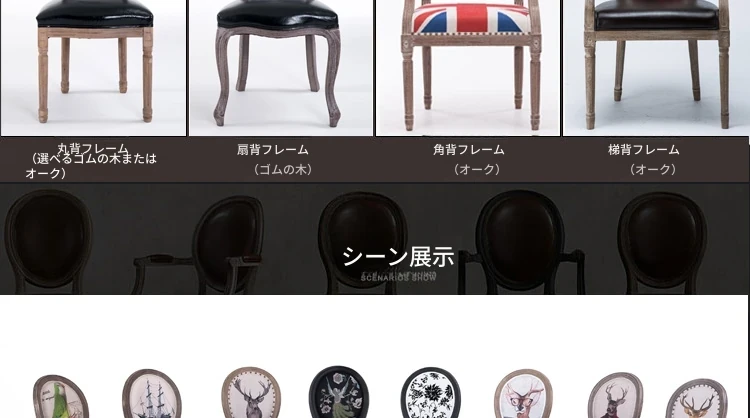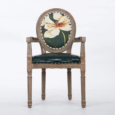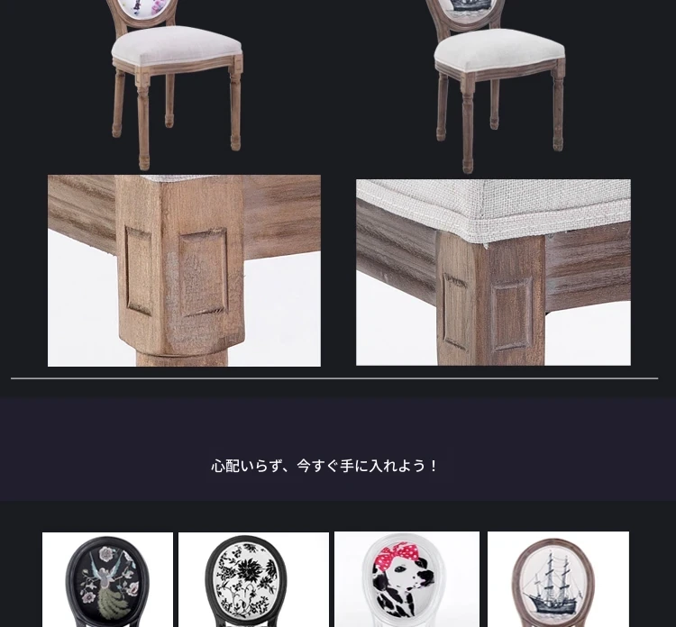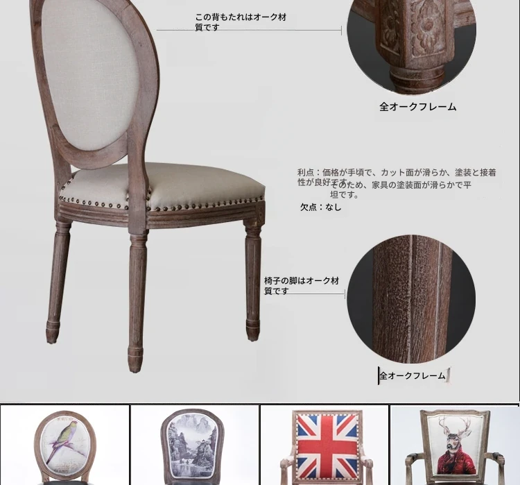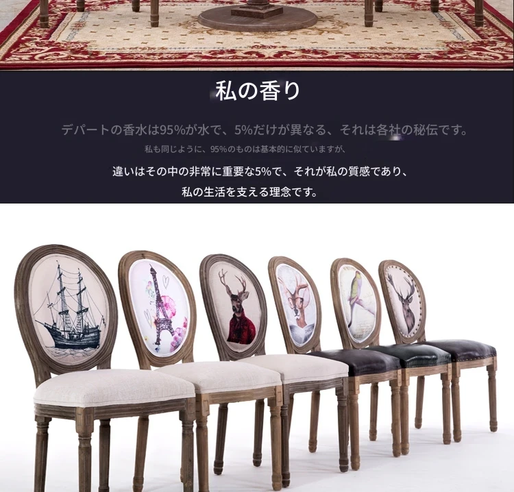 欧風無垢材ダイニングチェア レトロアメリカンスタイルのカジュアルチェア 新古典的デザイン ホテルやカフェにぴったり 家庭用の快適な背もたれ付きチェア
