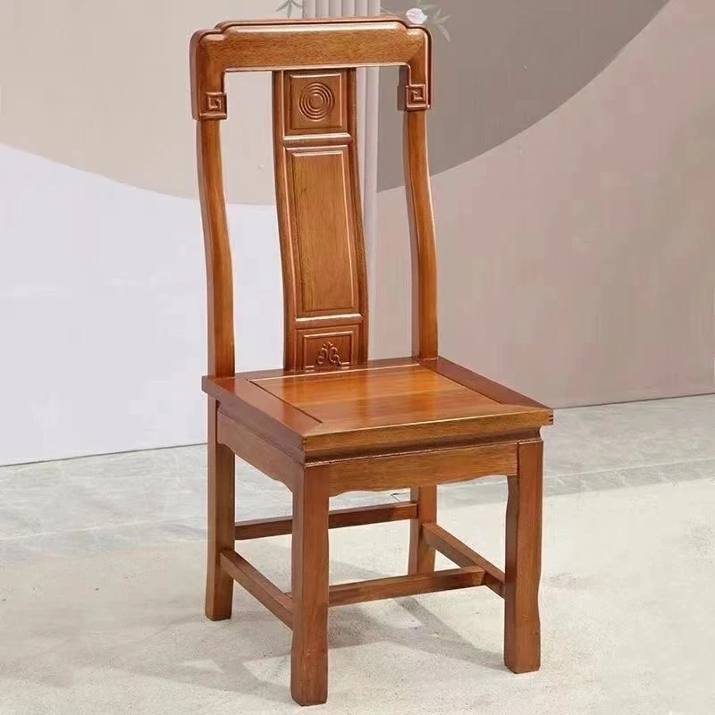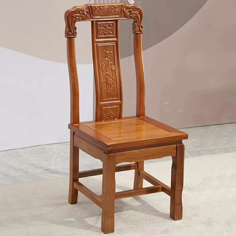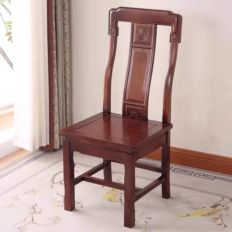 高級感あふれる紅木色の無垢材使用!モダンでシンプルなデザインの中華風ダイニングチェア。家庭やレストラン、民宿にぴったりの快適な背もたれ付き、月型の美しいフォルムで、食事の時間を特別なものにします。