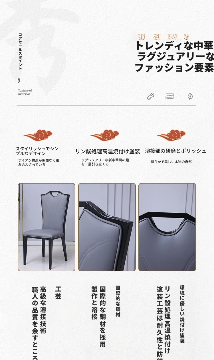 新中式デザインのレストラン用ダイニングチェア - 高級感溢れる鉄製、ホテルや宴会にも最適な背もたれ付き、火鍋店や個室にもぴったり!おしゃれで快適な食事空間を演出します。