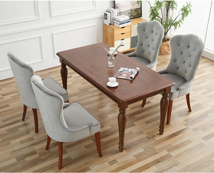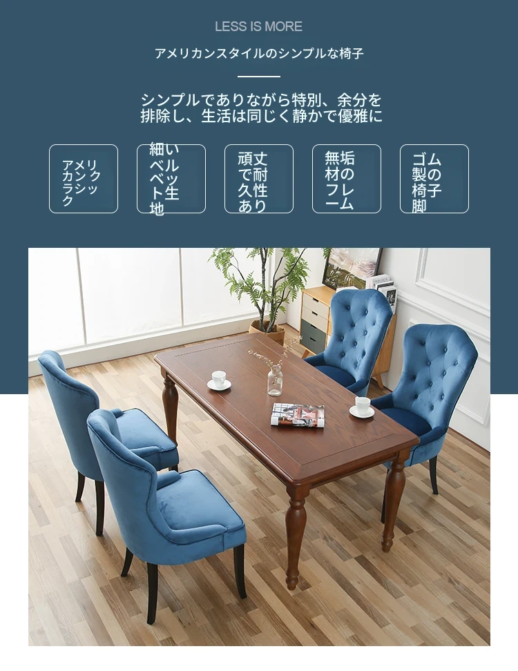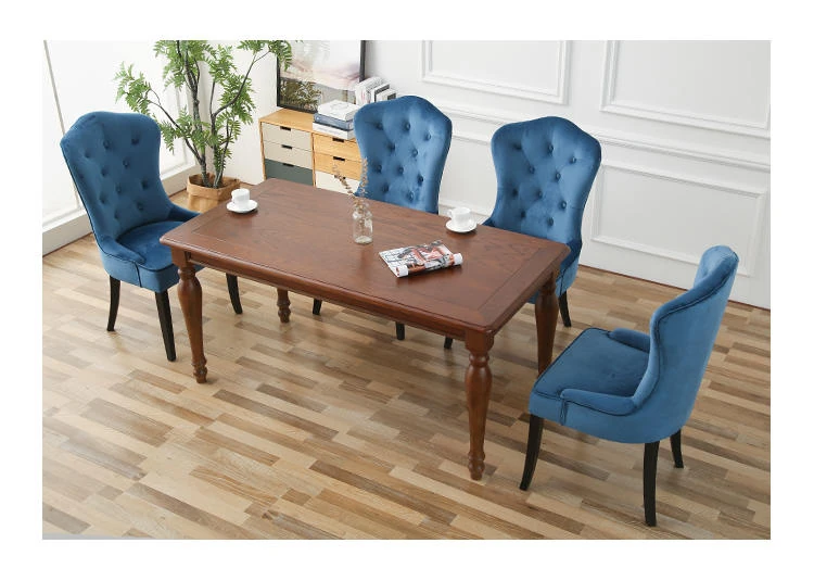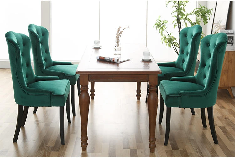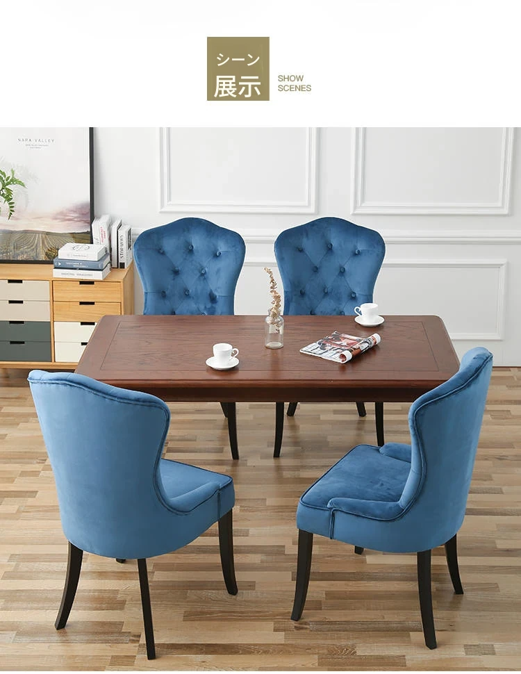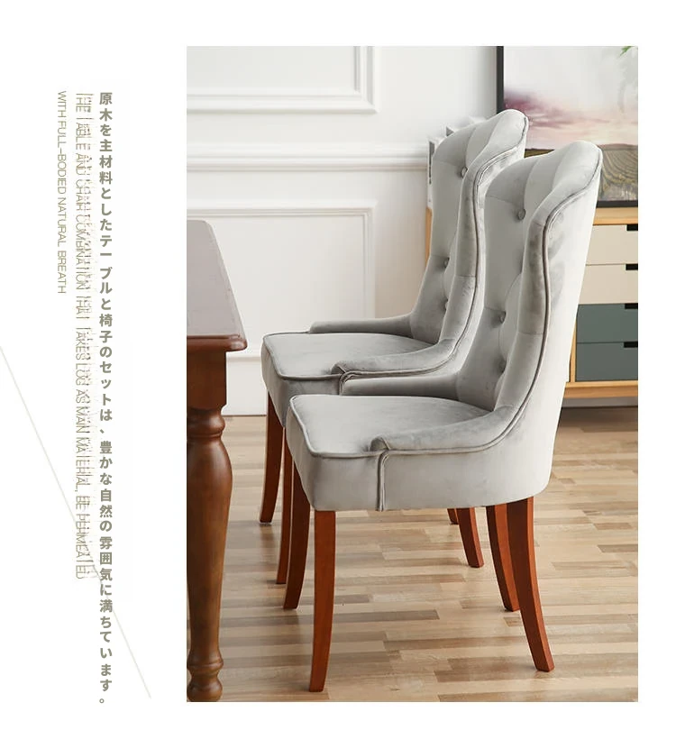 ヨーロピアンスタイルの実木製ソフトパックダイニングチェア、シルクベルベット生地使用!家庭やホテルに最適な快適さを追求したアメリカンラグジュアリーの書斎椅子。上質なデザインで、毎日の食事や作業を特別な時間に変えます。
