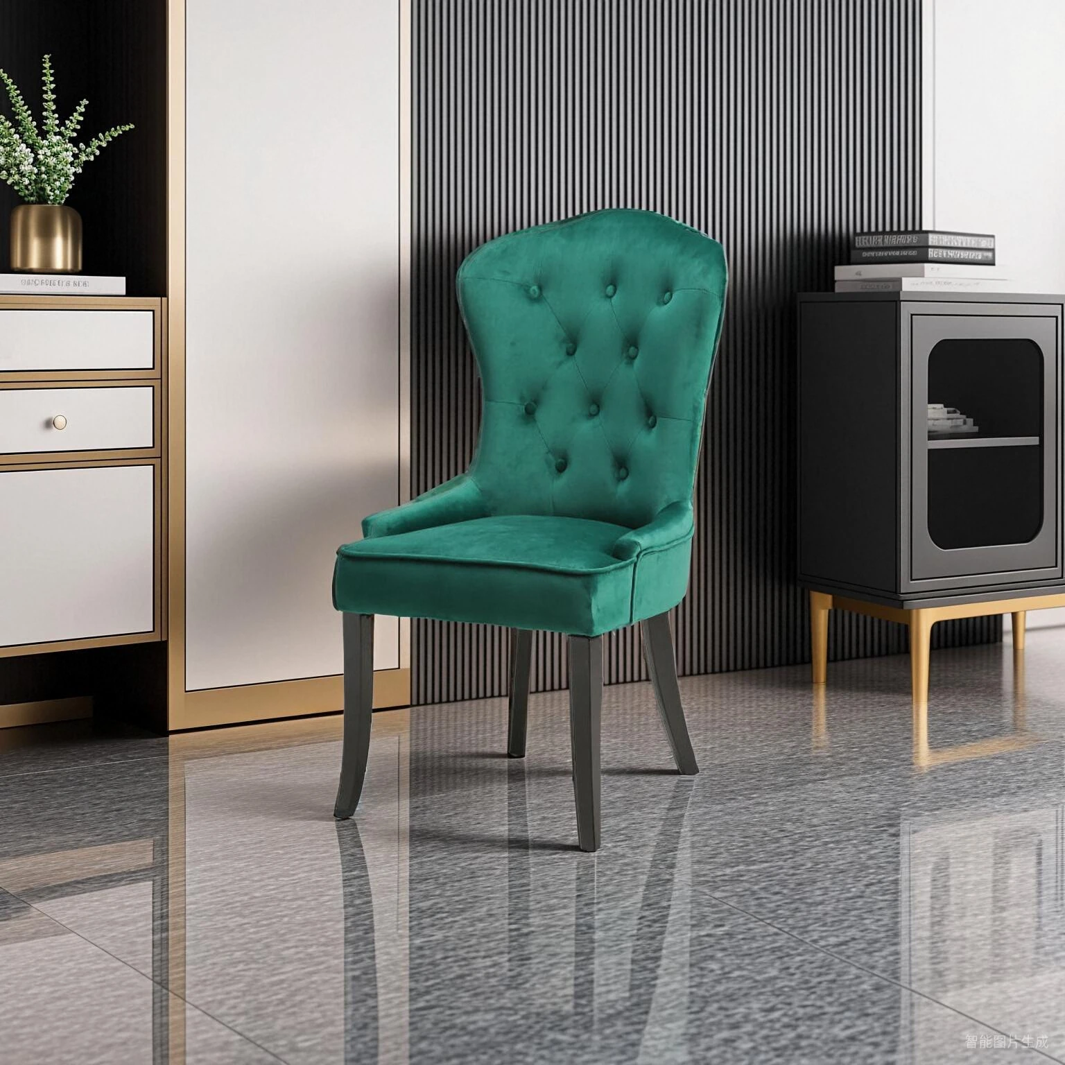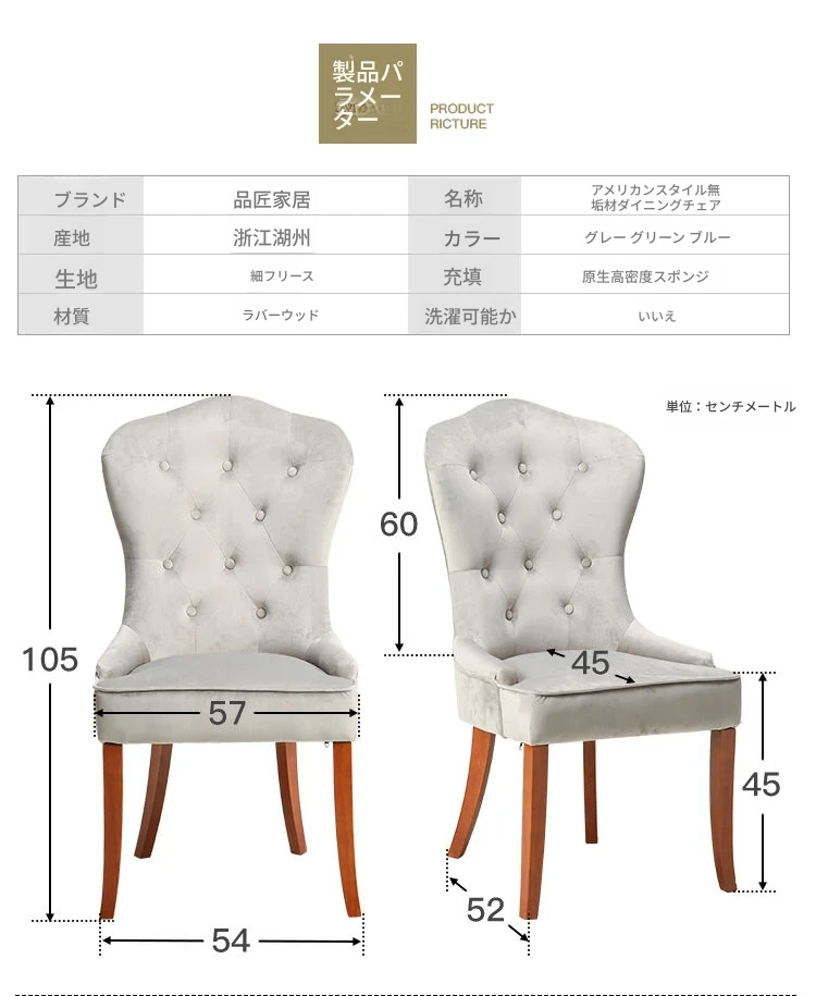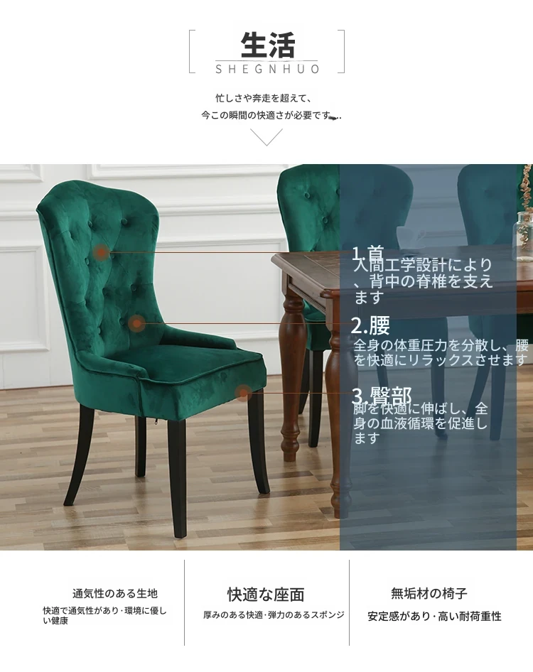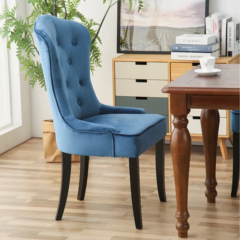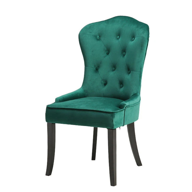 ヨーロピアンスタイルの実木製ソフトパックダイニングチェア、シルクベルベット生地使用!家庭やホテルに最適な快適さを追求したアメリカンラグジュアリーの書斎椅子。上質なデザインで、毎日の食事や作業を特別な時間に変えます。