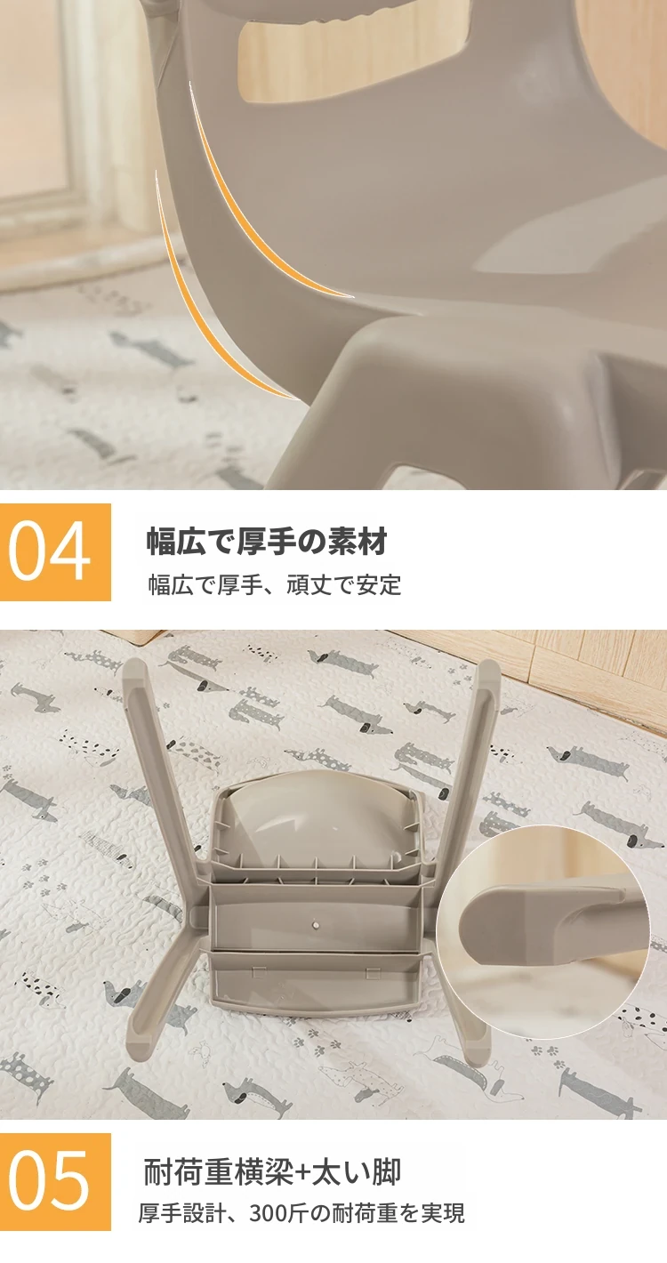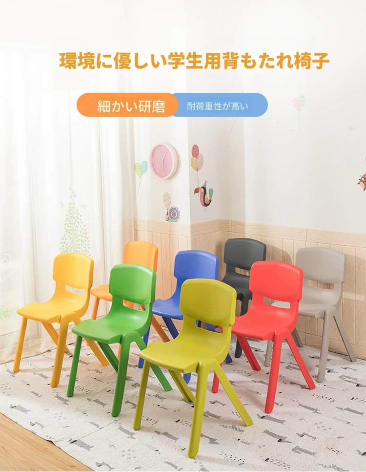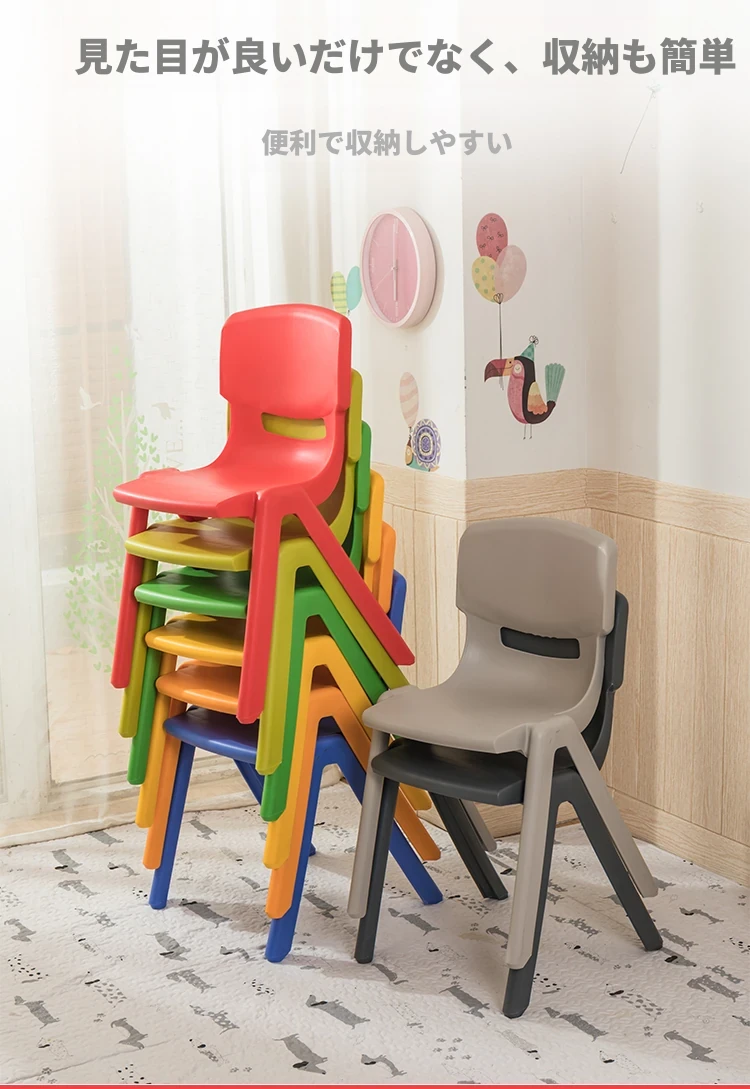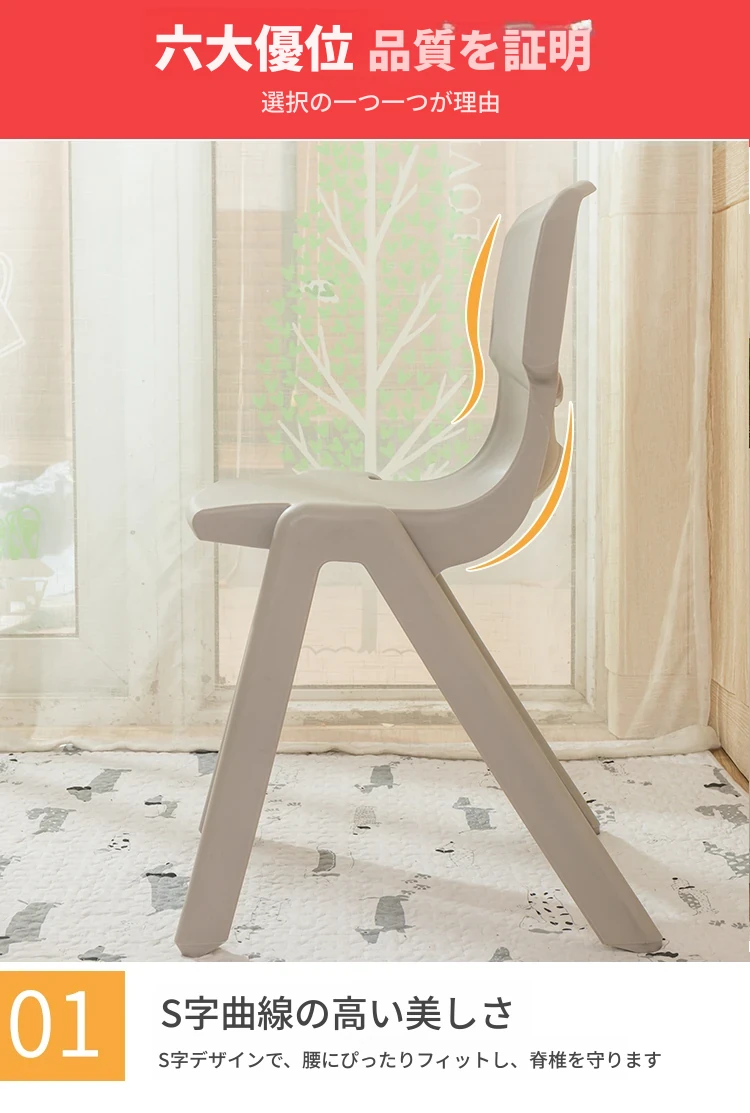 厚手で安心!大人も子供も使えるプラスチック製エルゴノミクスチェア - 家庭用デスクや幼稚園に最適、滑り止め付きで安全性抜群!