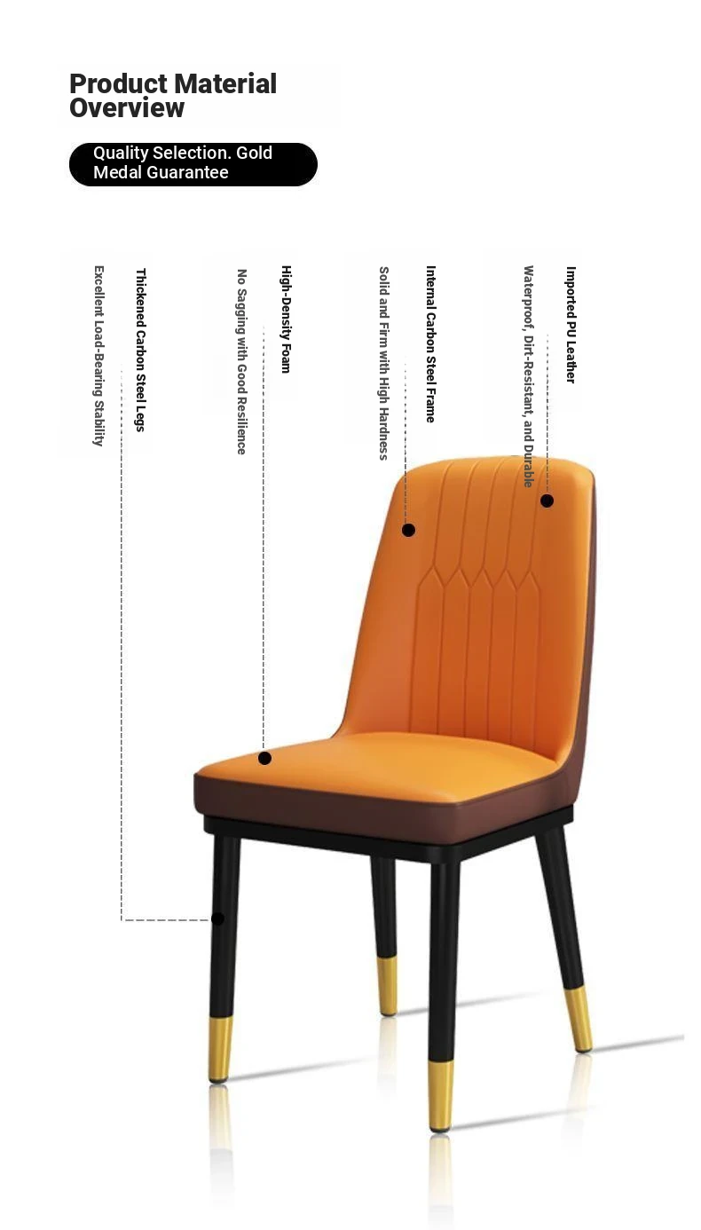 [Reinforced Carbon Steel Integrated Frame + Gold Leg] Orange Surface + Brown Back [Abrasion-resistant Scratch-resistant + Selected Leather Seat] Bearing 250.00kg