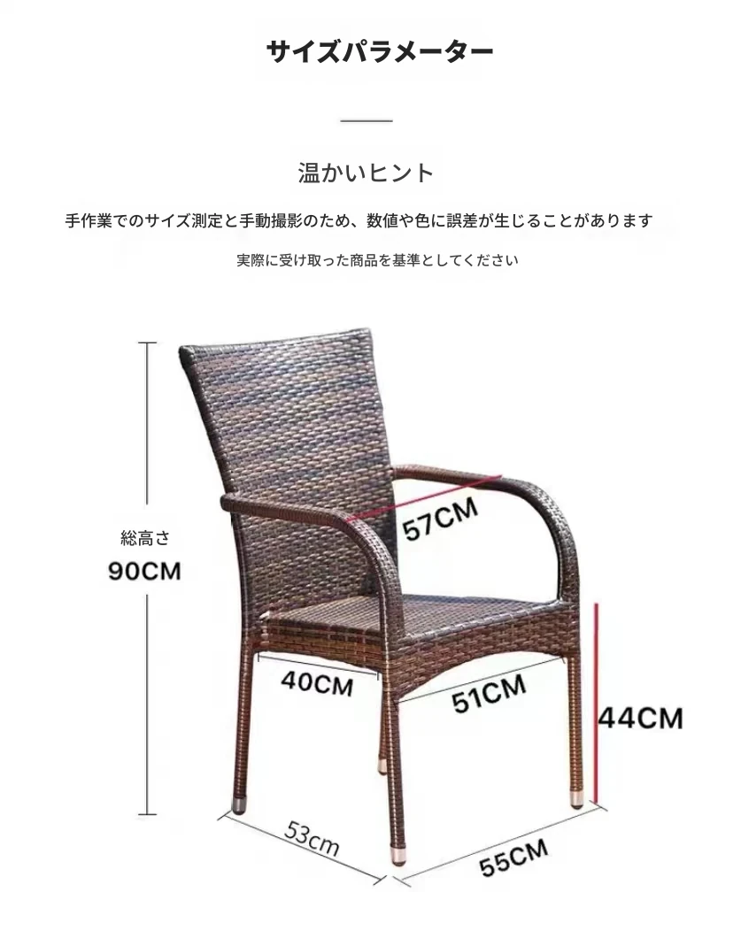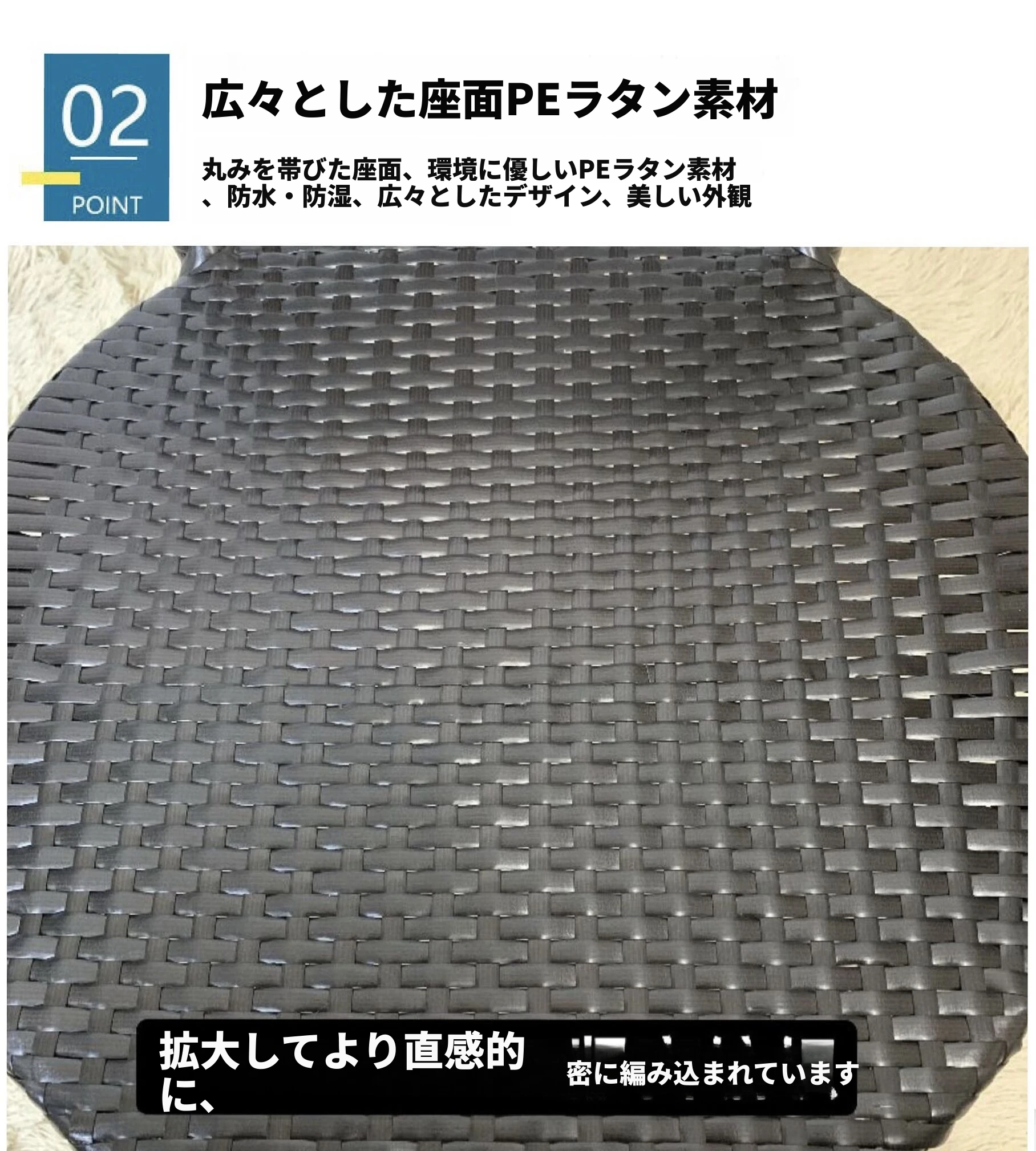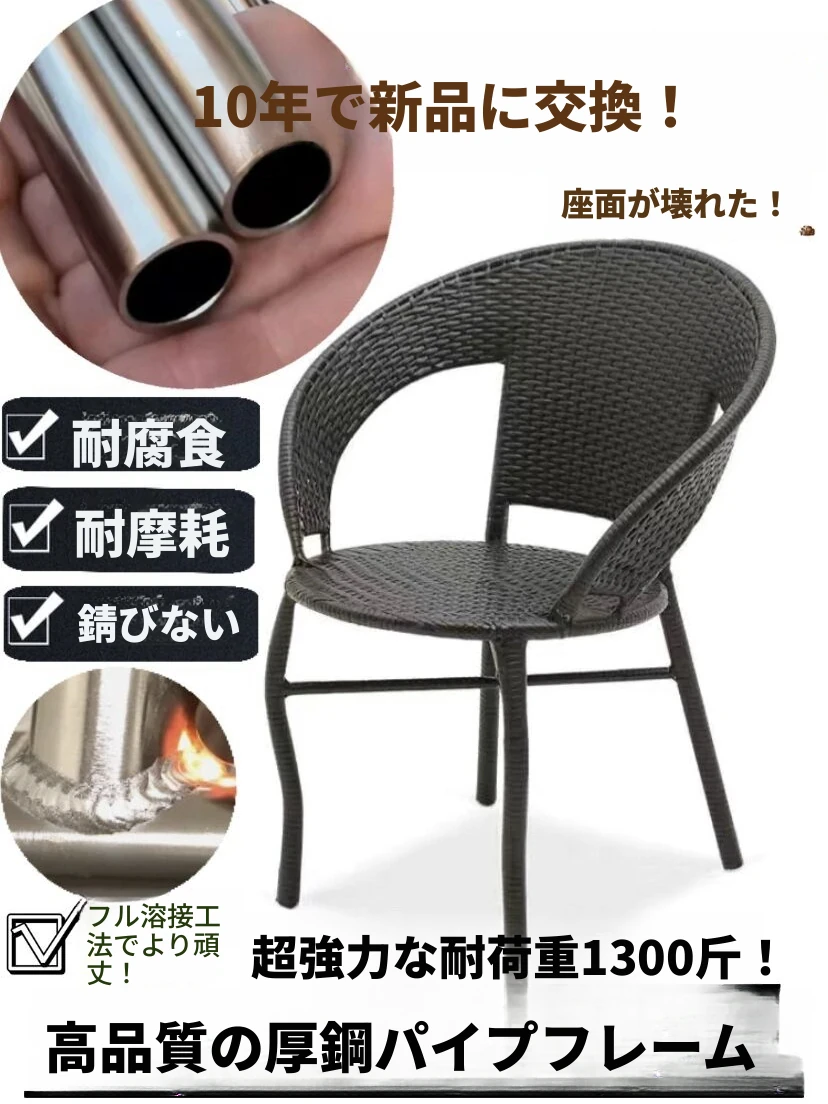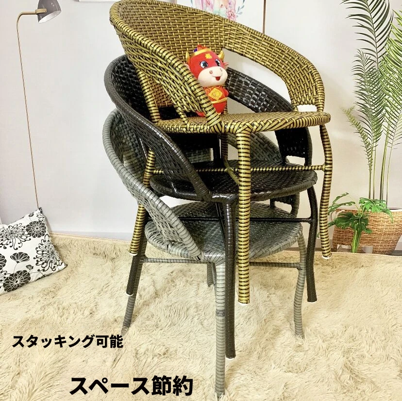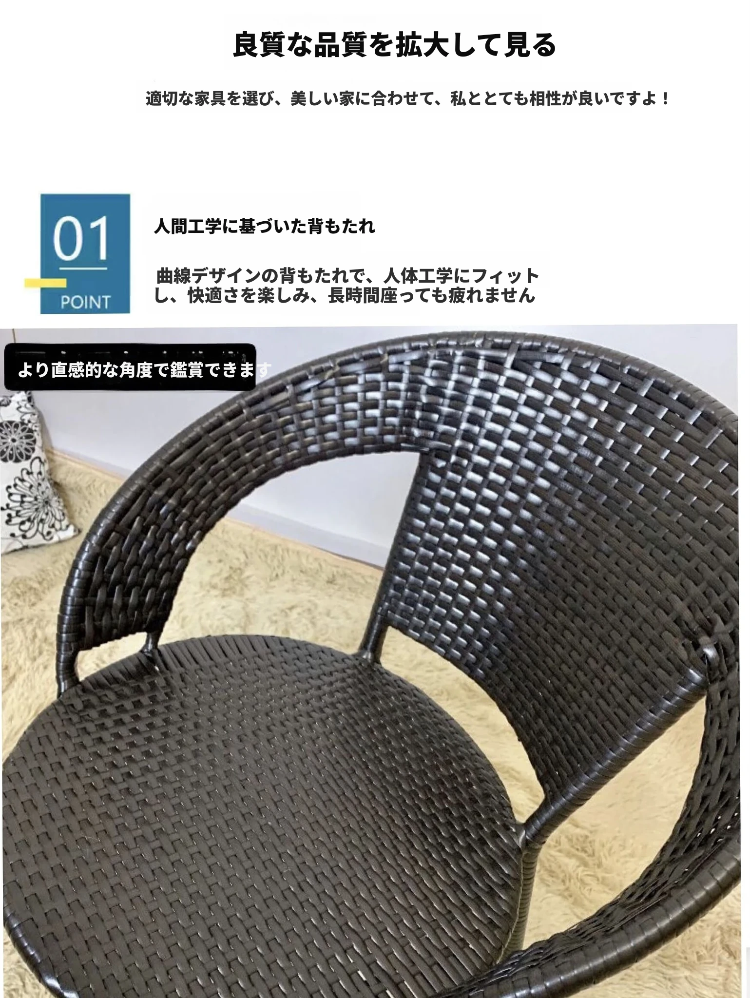 アウトドアラタンチェア 一人用リラックス背もたれ付き 手作り編み 家庭用 お年寄りにも優しい シンプルな庭やバルコニーにぴったりなテーブルセット