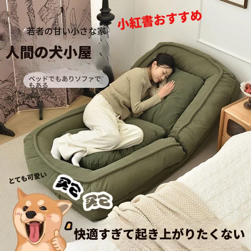 人間用犬小屋風のラクラクソファ!インスタ映えする折りたたみ式ソファベッド、畳スタイルでバルコニーやリビング、寝室に最適。座っても寝転んでもリラックスできる一品!