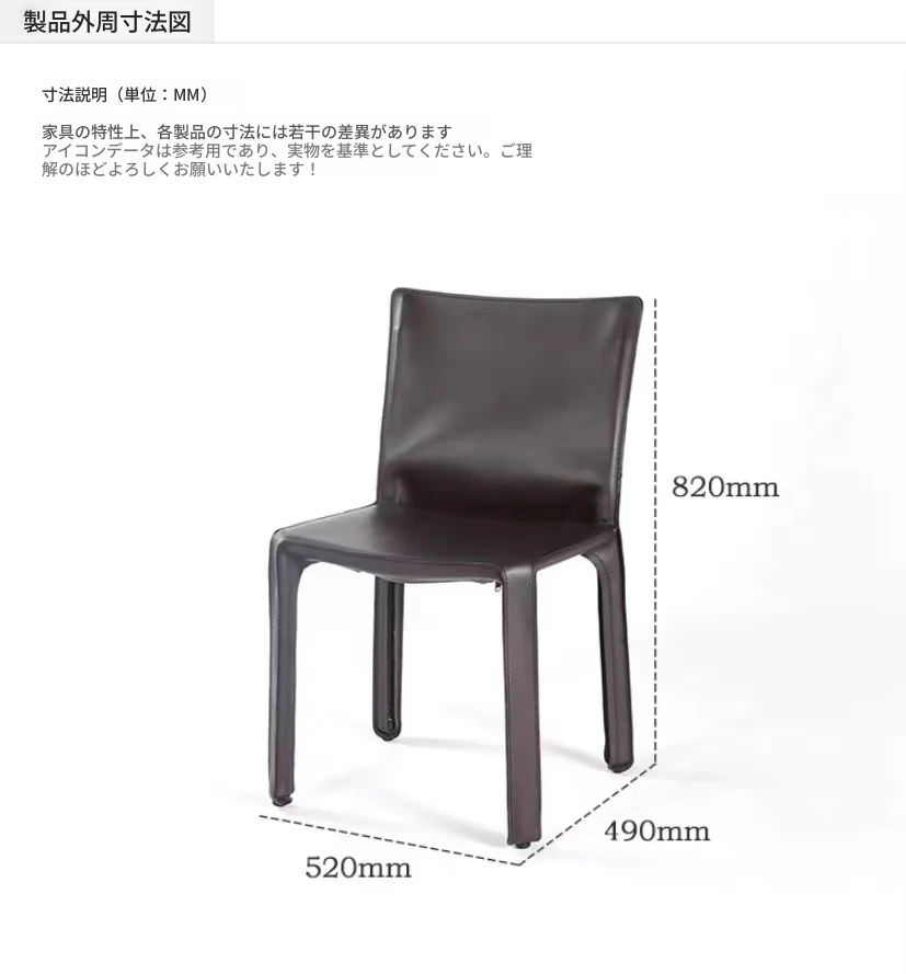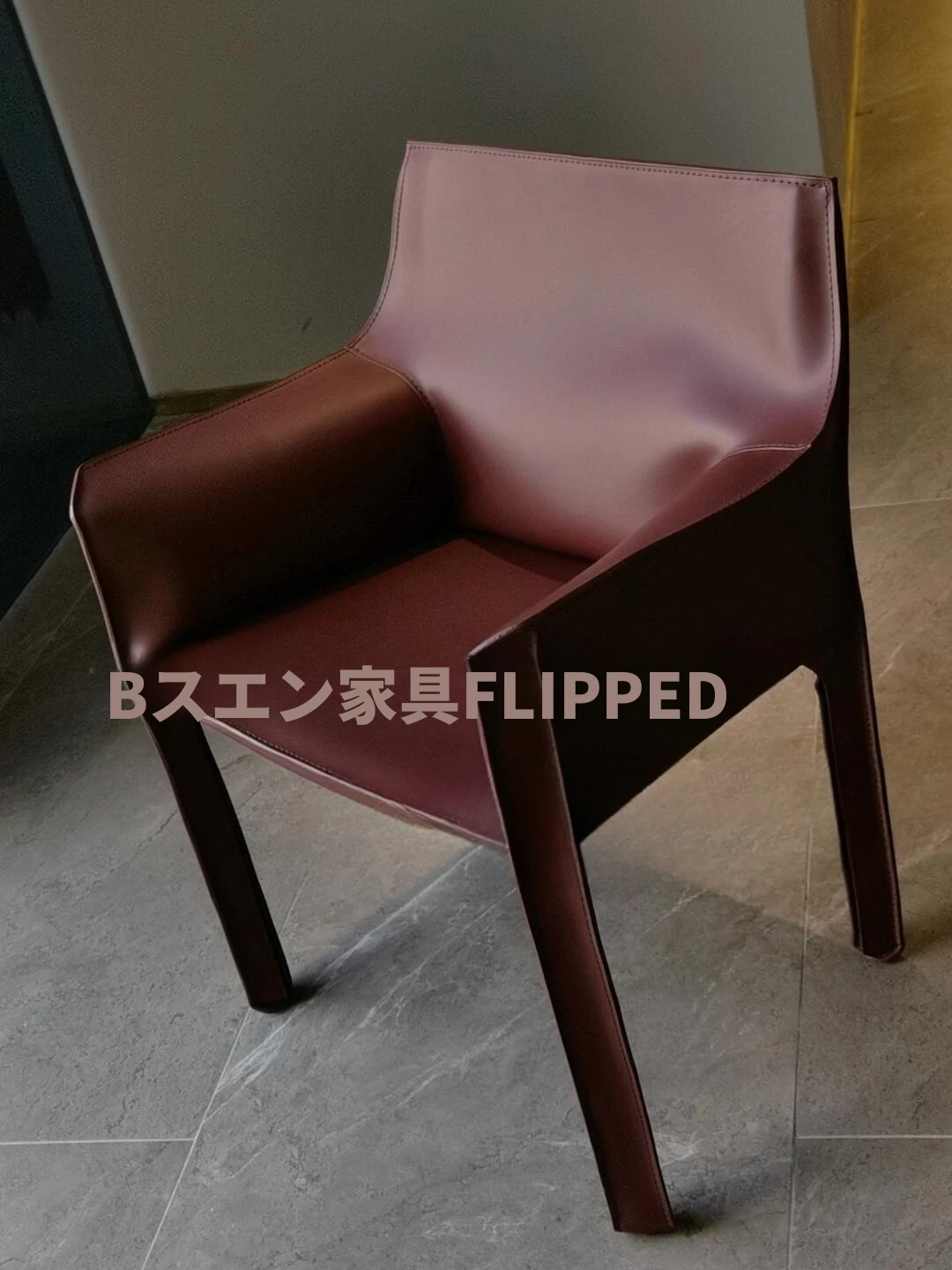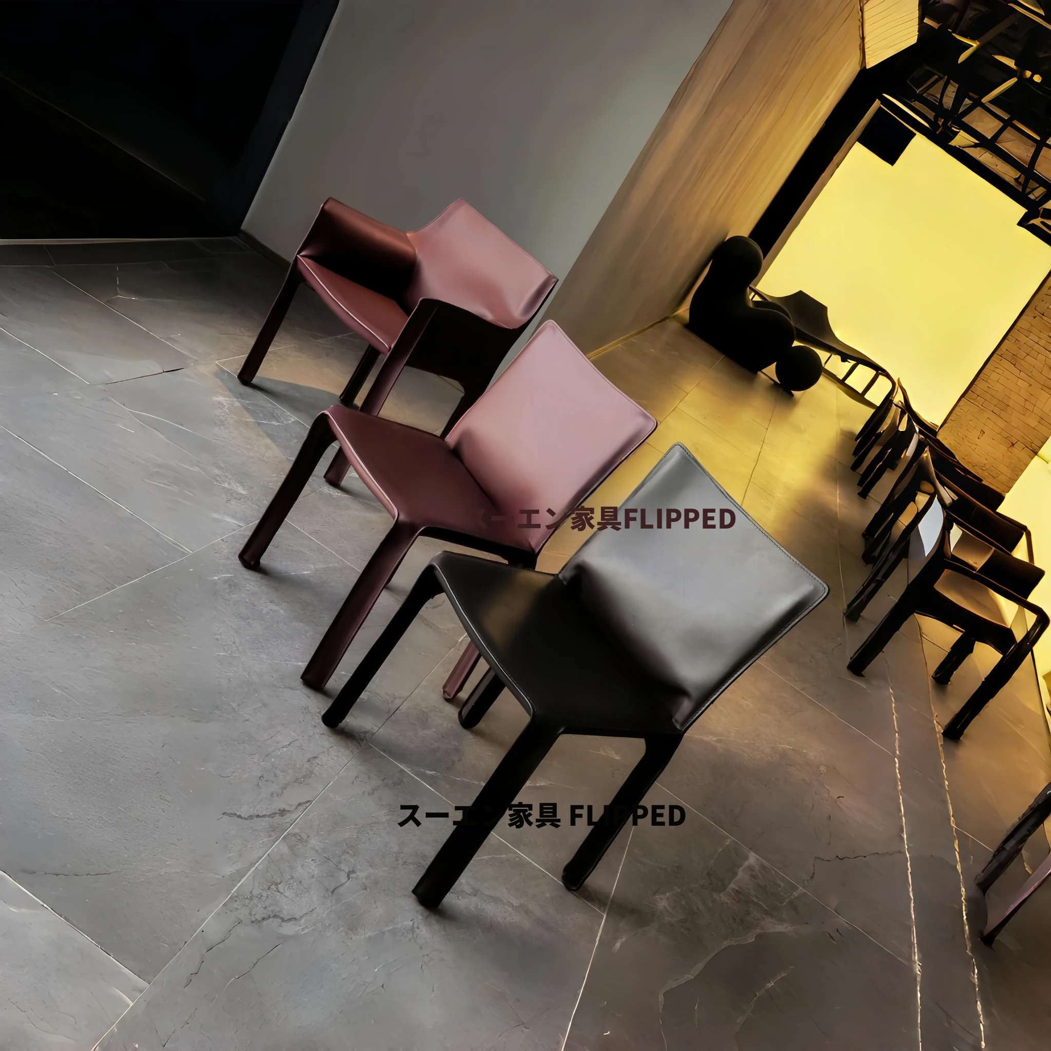 イタリア製カッシーナのサドルレザー食卓椅子 - シンプルでスタイリッシュなデザイン、快適な背もたれ付き!食事を楽しむための理想的な椅子です。