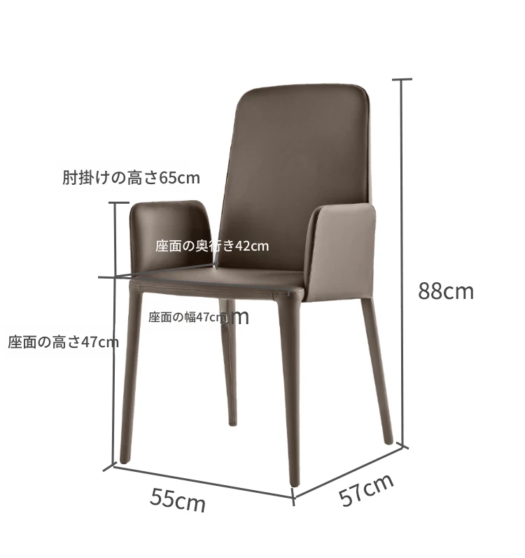 イタリアンレザー製ダイニングチェア|シンプルで洗練されたデザイン|家庭用・レストラン向け|快適なアームレスト付き|スタイリッシュな書斎椅子としても最適!