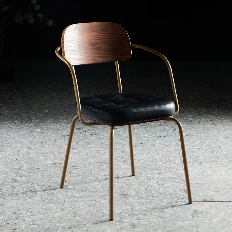 木製背もたれのブラウンクッション有肘掛け 2枚から注文可能