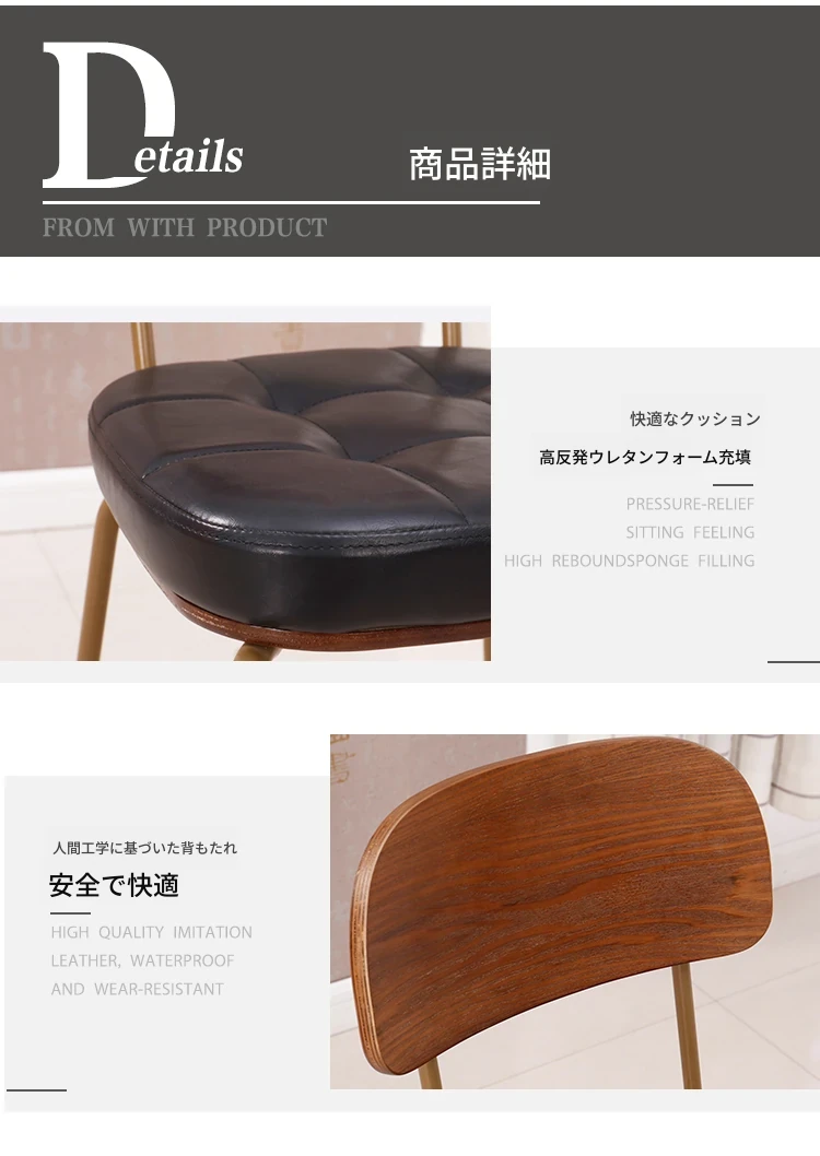 木製背もたれのブラウンクッション無肘掛け 2枚から注文可能