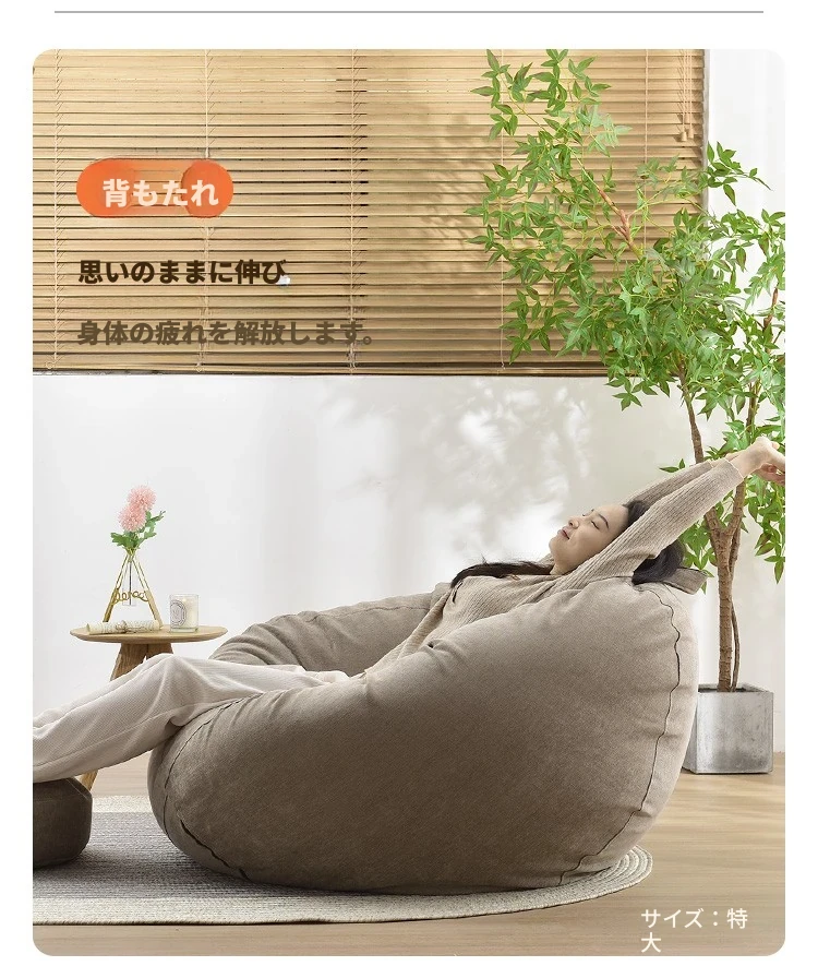 日本のリラックスソファ|寝ても座ってもOK!畳スタイルの一人用ビーズクッション|小スペースにぴったりなバルコニーや寝室のくつろぎチェア