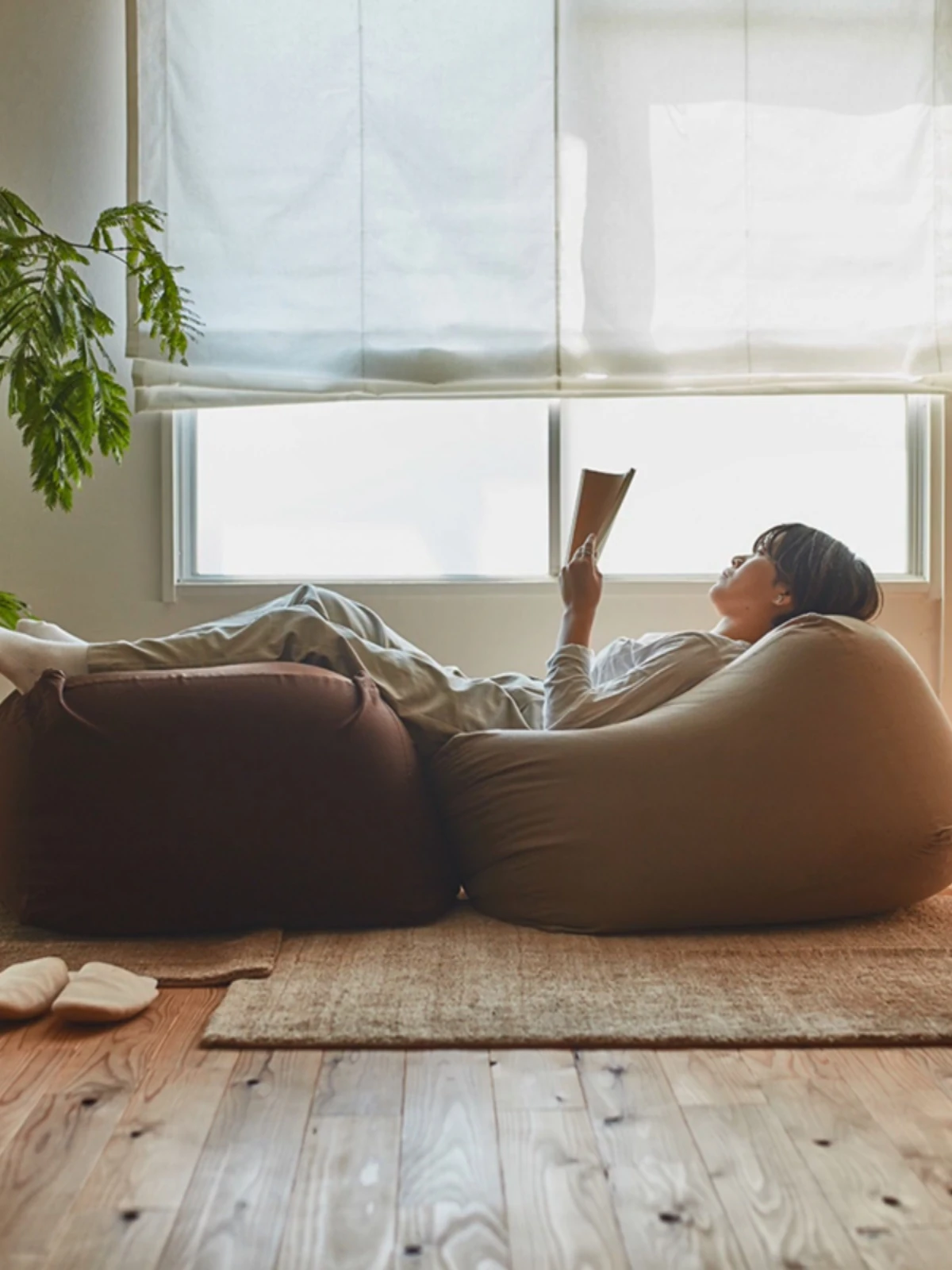 シンプルでスタイリッシュな日本風リラックスソファ!省スペースで小さなお部屋にもぴったり。人気のボディバッグ型豆袋ソファ、畳風デザインで心地よいくつろぎを実現。あなたの寝室に最適なアイテムです!