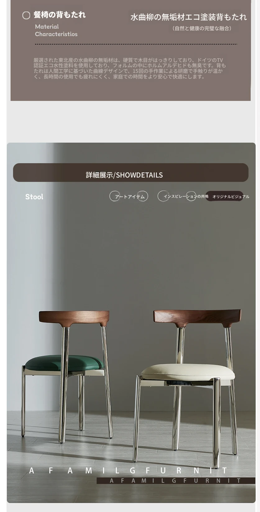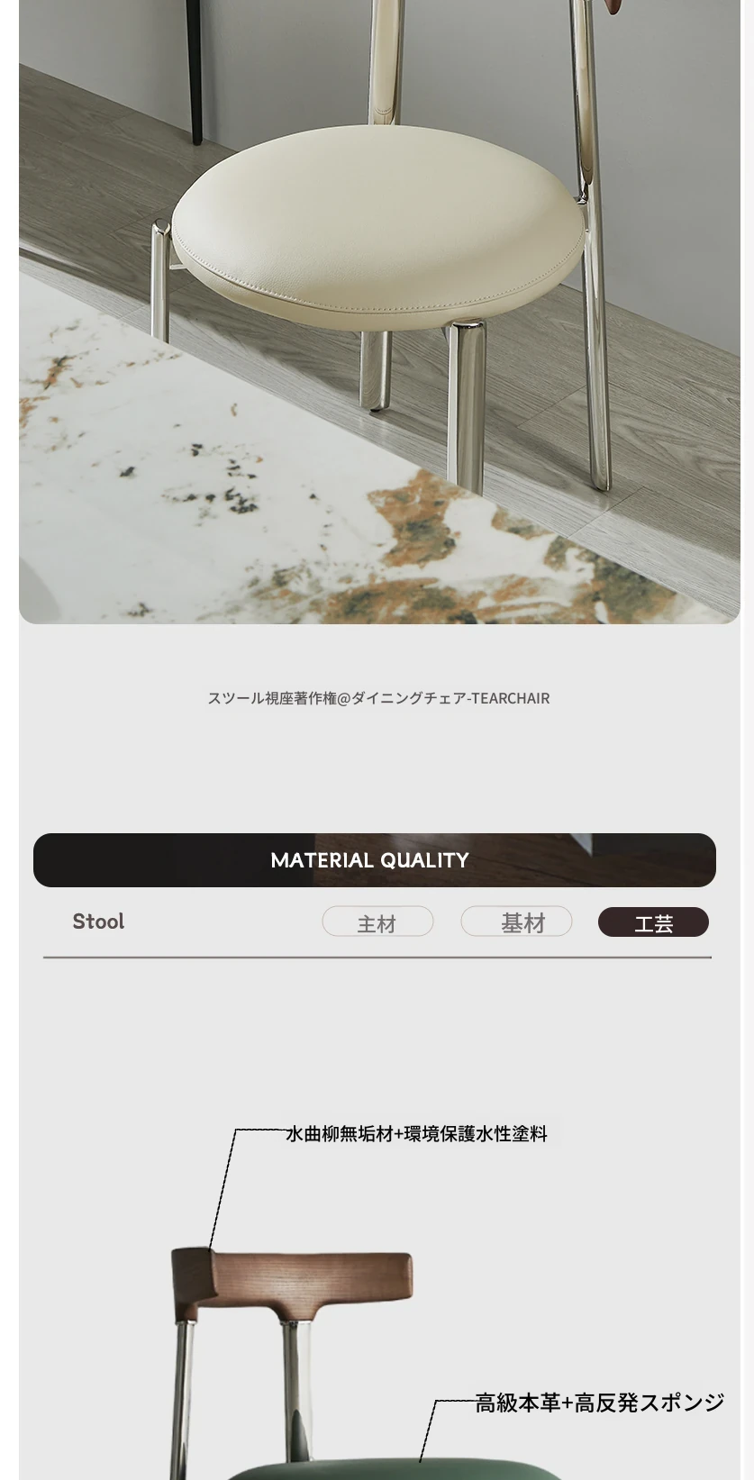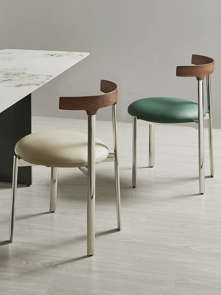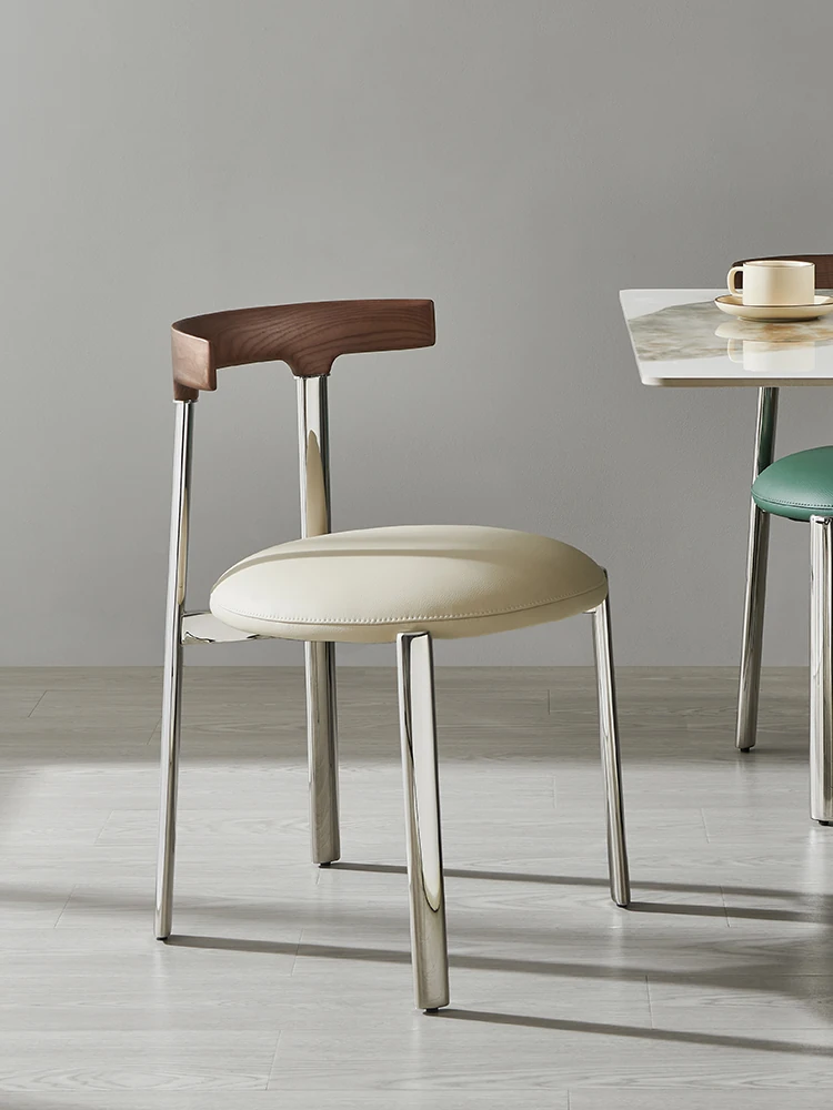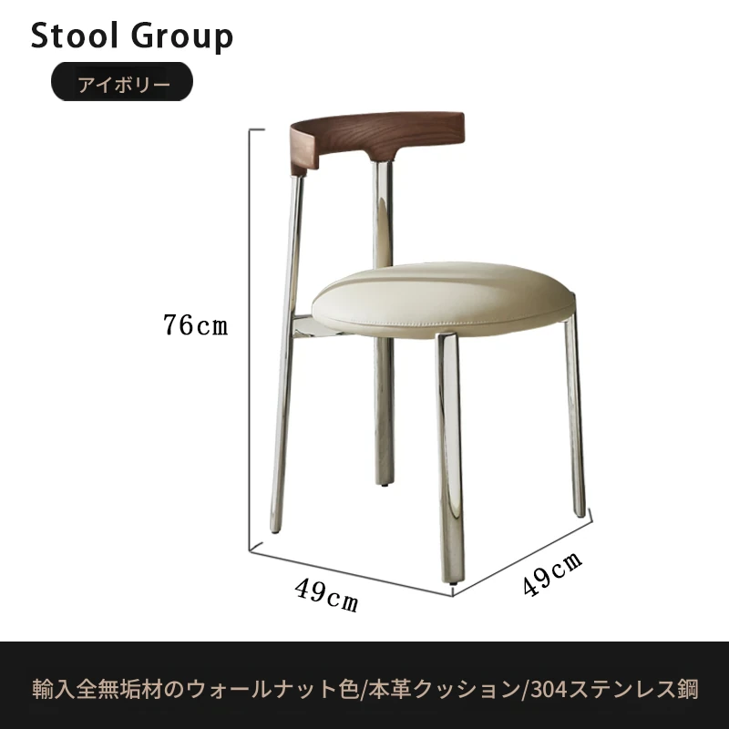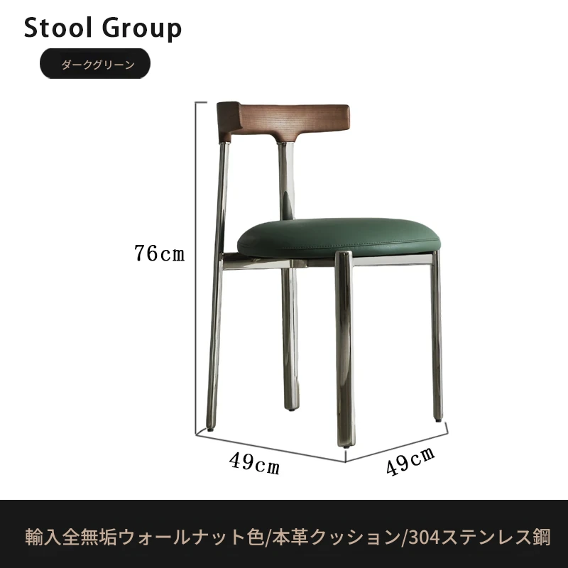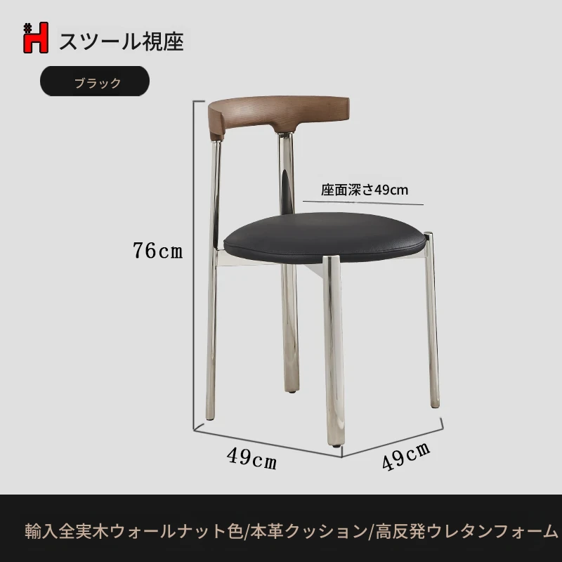 スタイリッシュなイタリアンミニマリズムのステンレススチール製ダイニングチェア。軽やかなラグジュアリーと温もりを感じる無垢材の書斎椅子。家庭用、ダイニングテーブルやメイクアップスツールにも最適です。