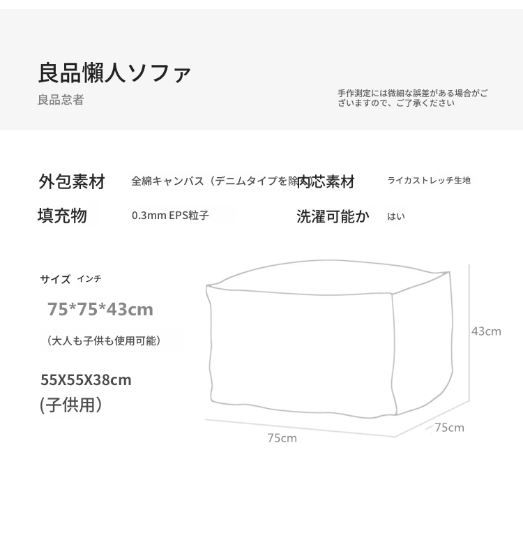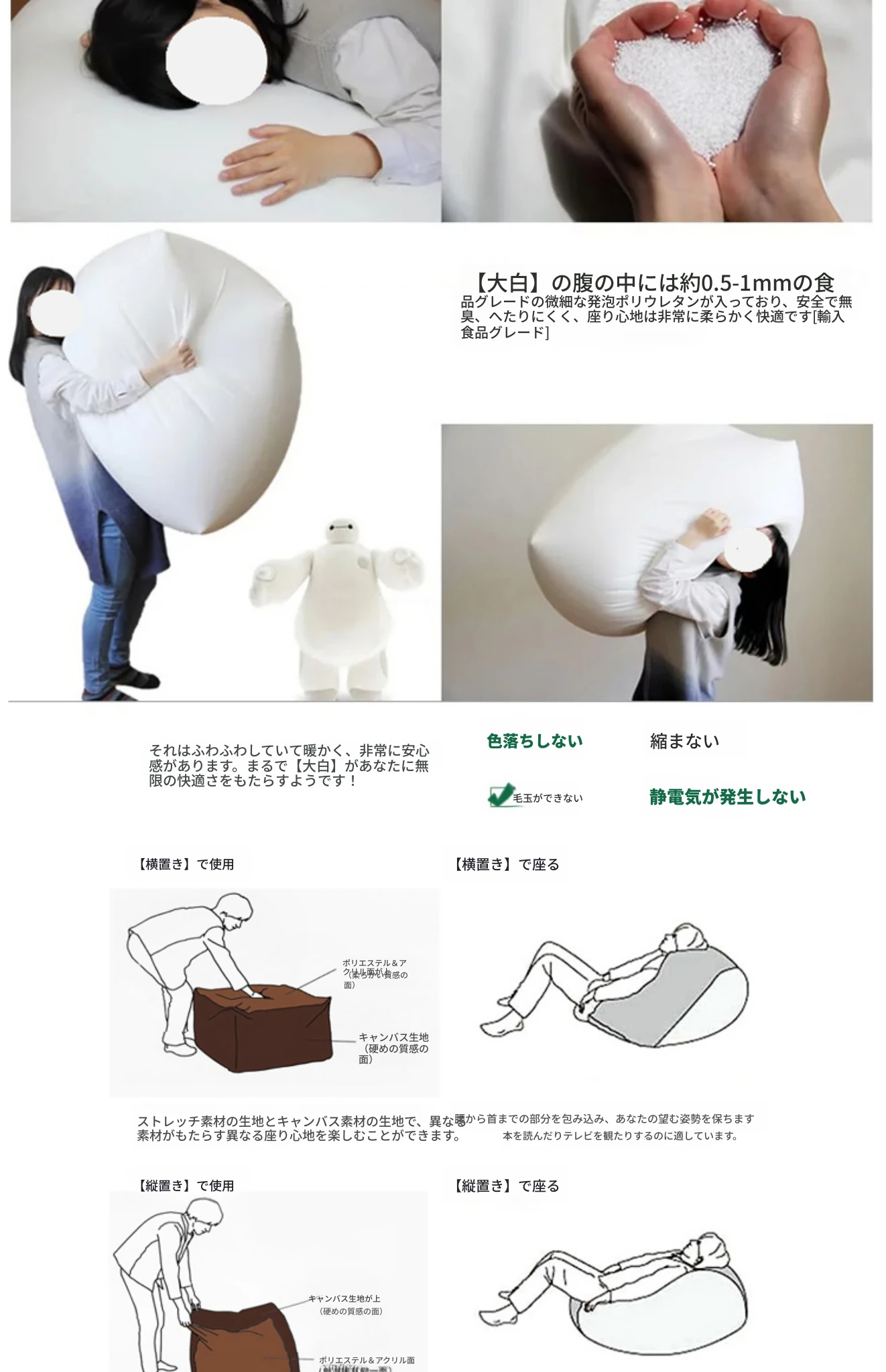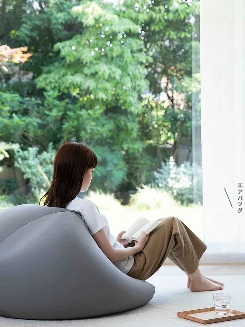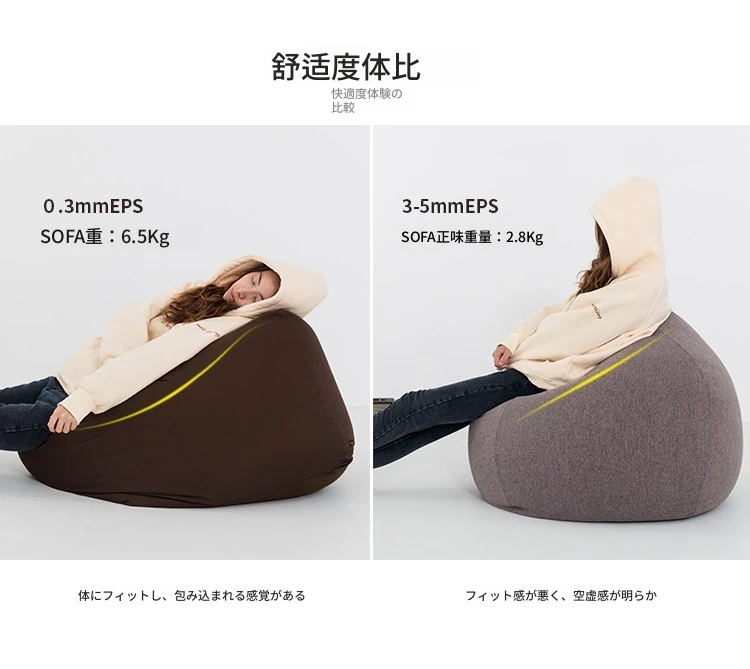 無印良品スタイルのリラックス豆袋ソファー|快適さ抜群!寝転んでもOK、単独使用にも最適な一人掛けチェア|リビングや寝室、畳スペースにぴったり!