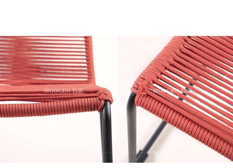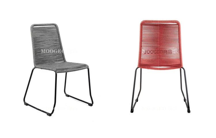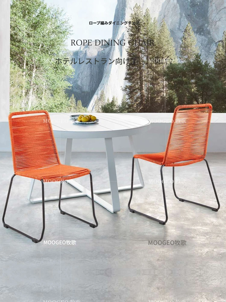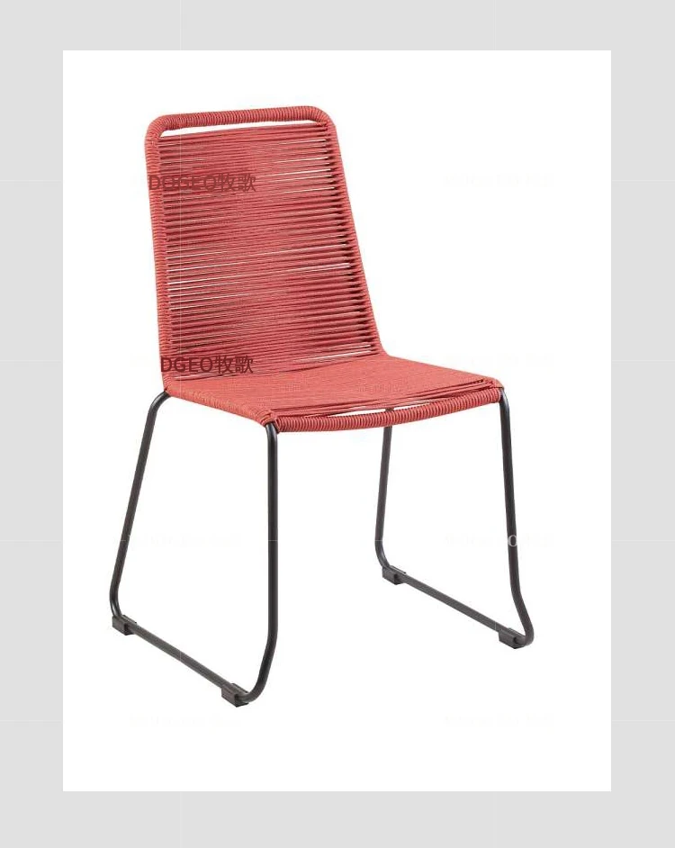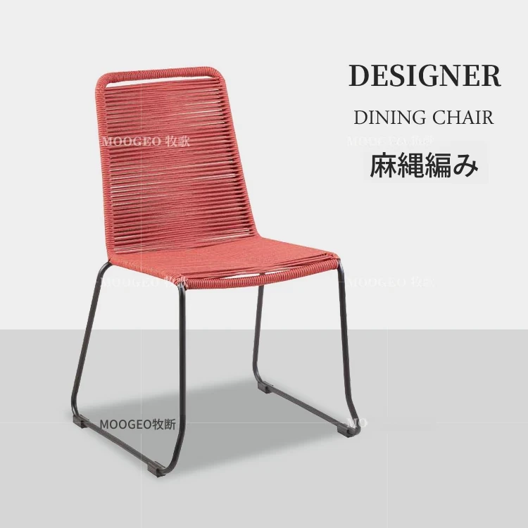 現代的なリラックスチェア デザイナーのダイニングチェア 麻紐編みの新作クリエイティブラタンチェア スチール脚付きで耐久性抜群!おしゃれで快適な食事空間を演出します。