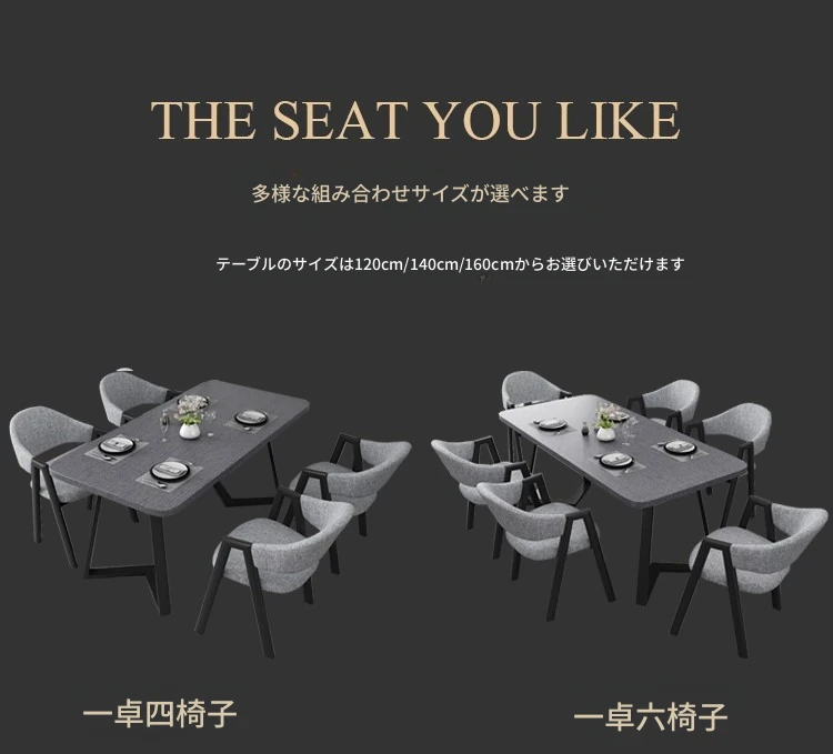 ブラック大理石模様テーブル+6脚の椅子