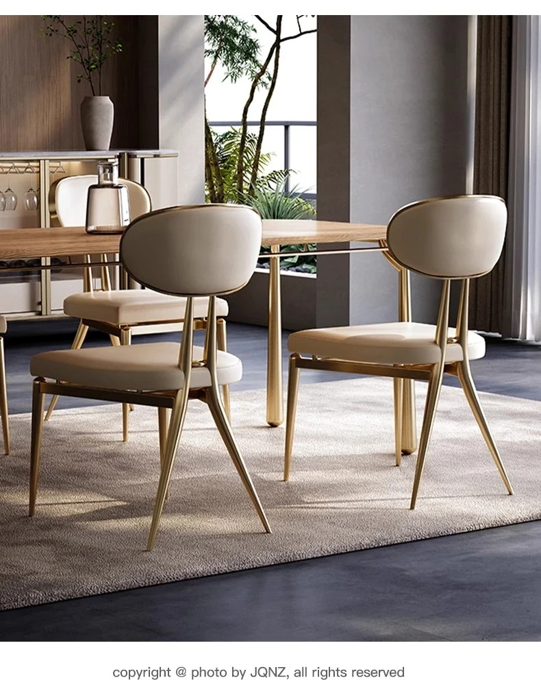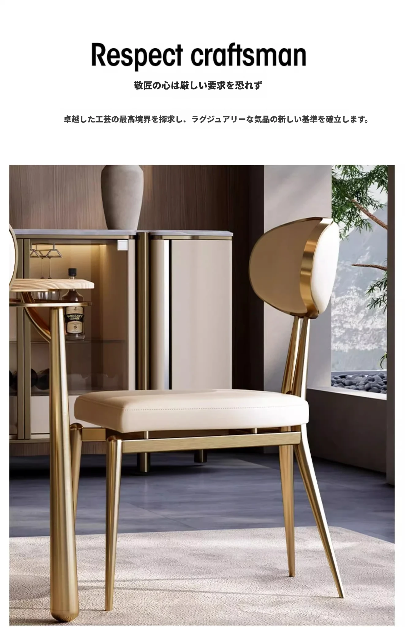 洗練されたデザインの軽奢レストランチェア|現代的でシンプルな家用・ホテル用|デザイナーによるイタリアンミニマリズム|真皮素材で高級感溢れるカフェチェア!