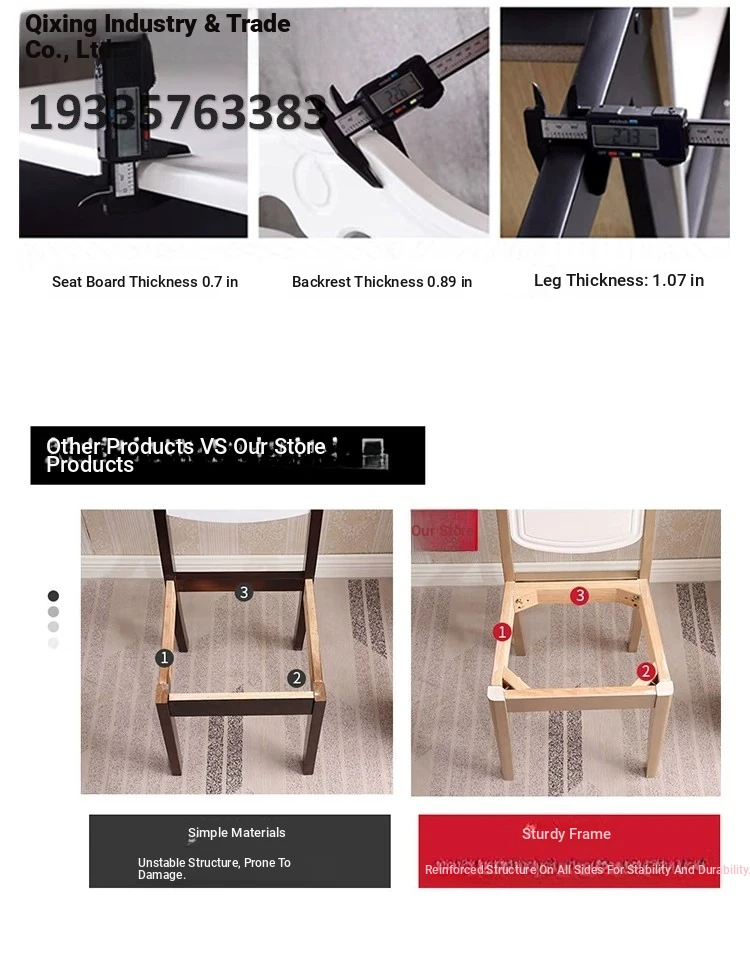 Modern Minimalist Solid Wood Dining Chair with Backrest - White Home and Restaurant Stool for Stylish Dining Experience