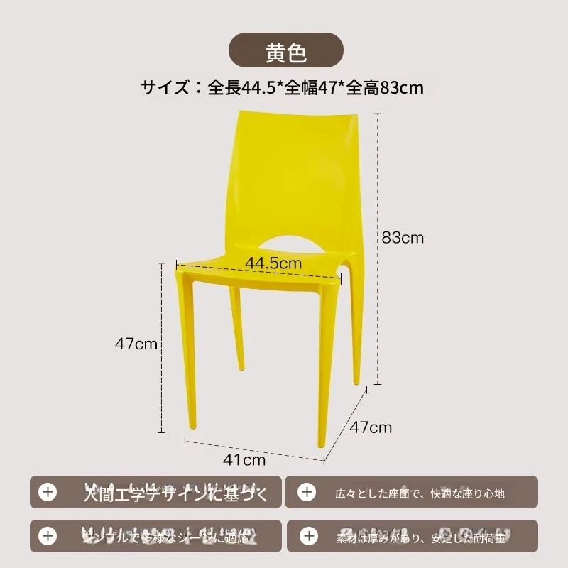 モダンアウトドア厚手プラスチックダイニングチェア|人気の民宿やカフェに最適なカラフルな背もたれのリラックス談話椅子!快適な座り心地で、友人とのひとときをもっと特別に!