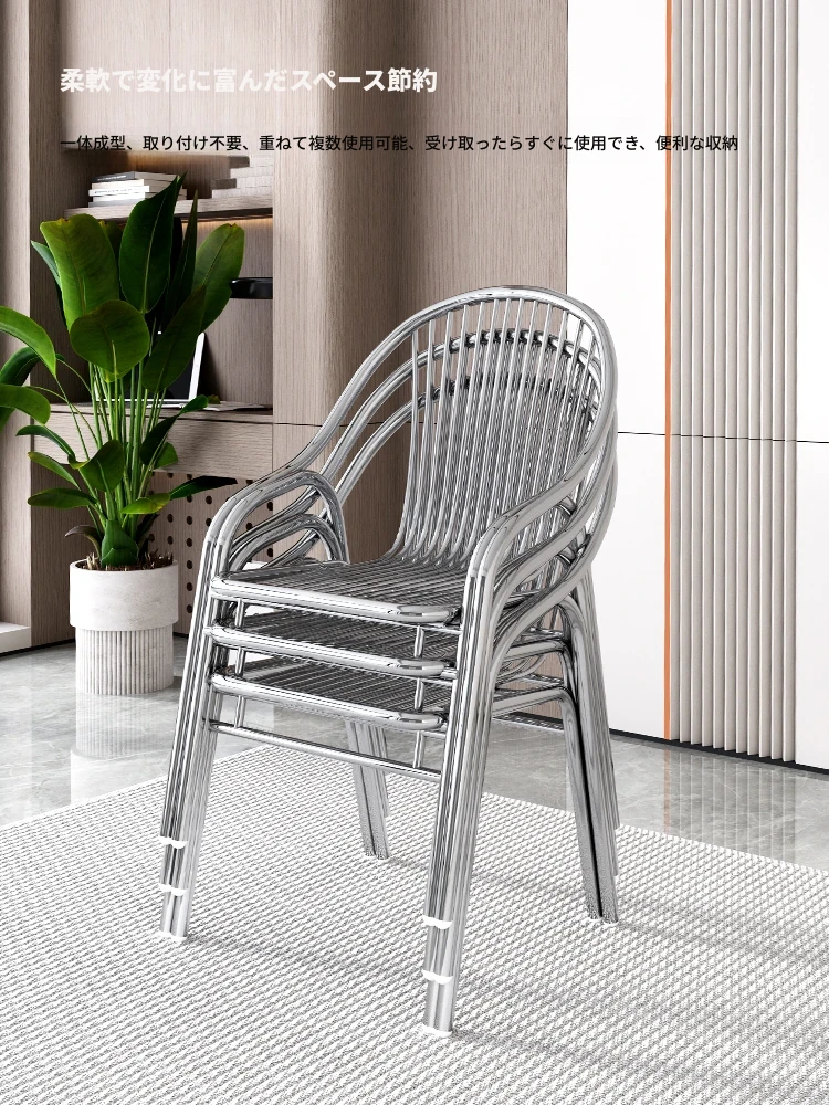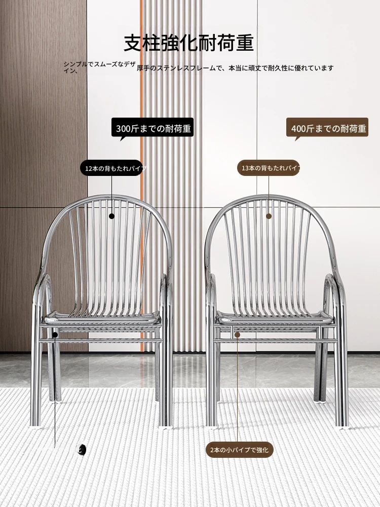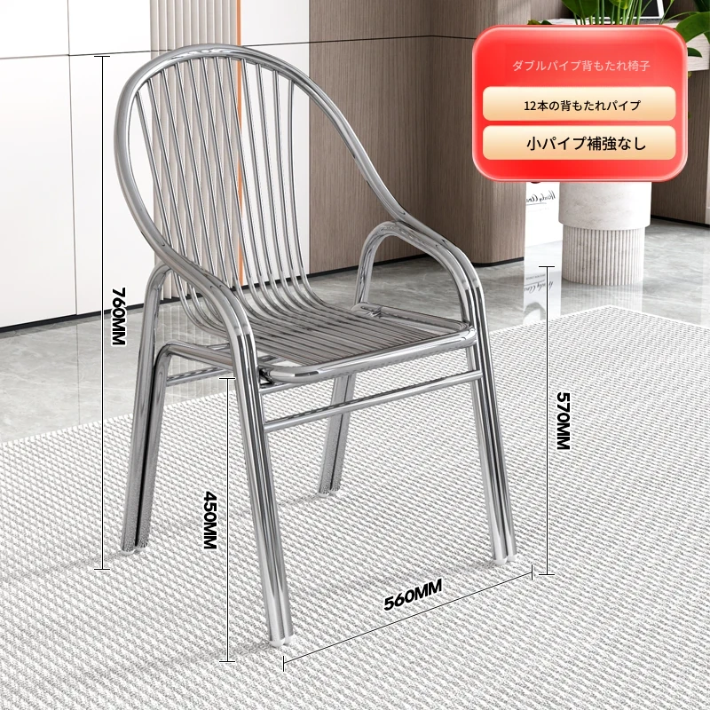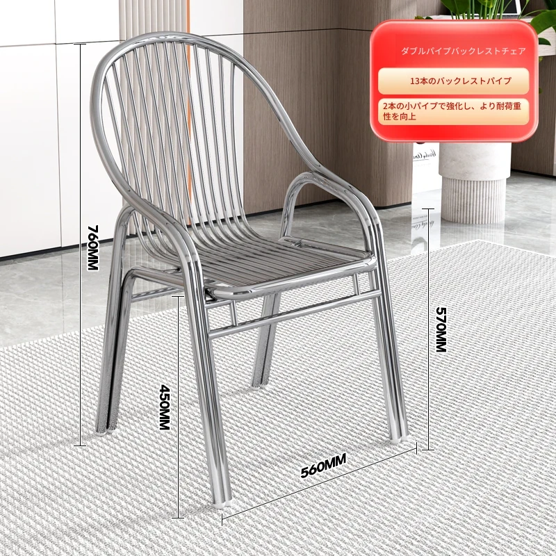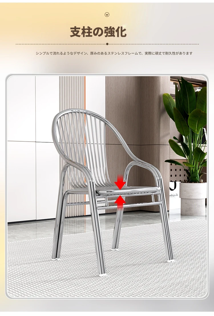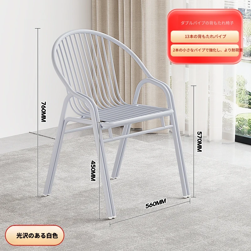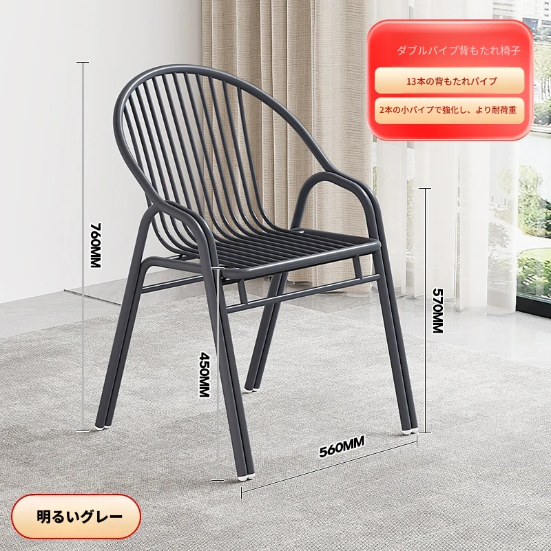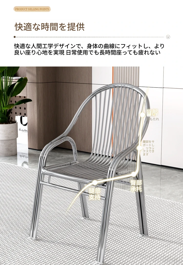 ステンレス製アウトドアチェア|モダンデザインの背もたれ付き家庭用金属バルコニーダイニングチェア|シンプルでリラックスできる一人掛けアームチェア!快適な座り心地でおしゃれな空間を演出します。