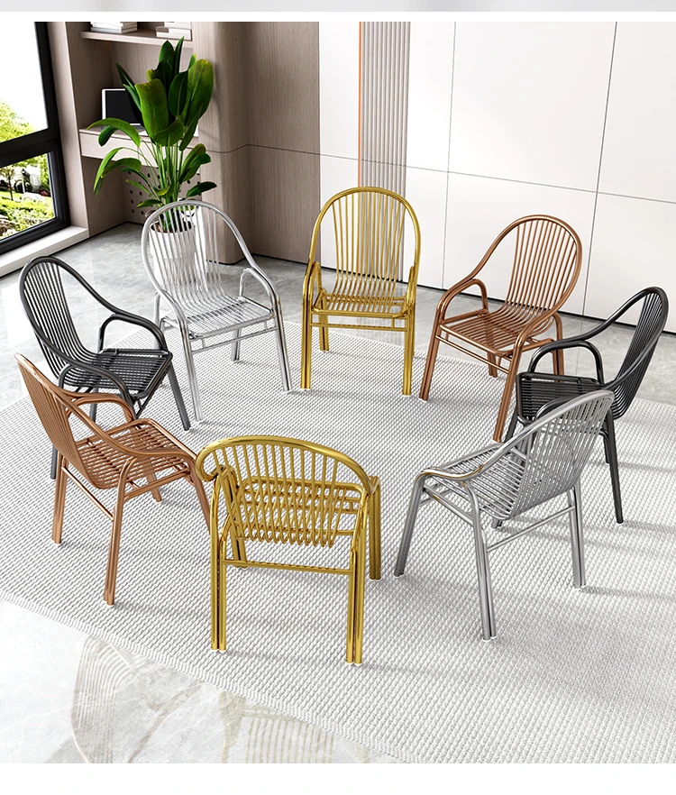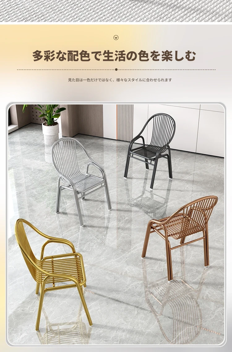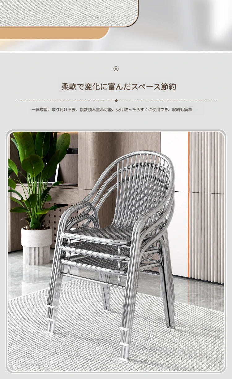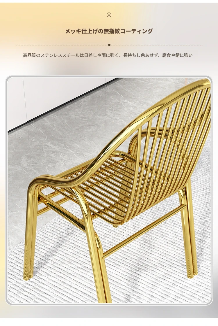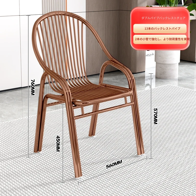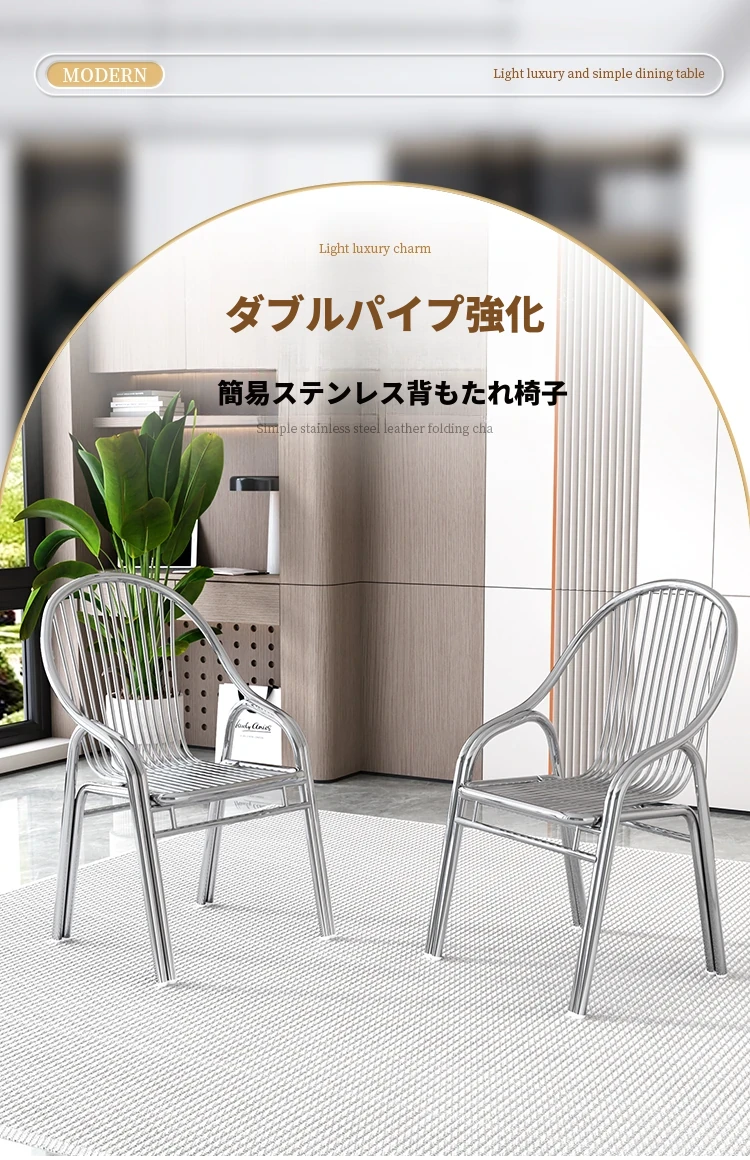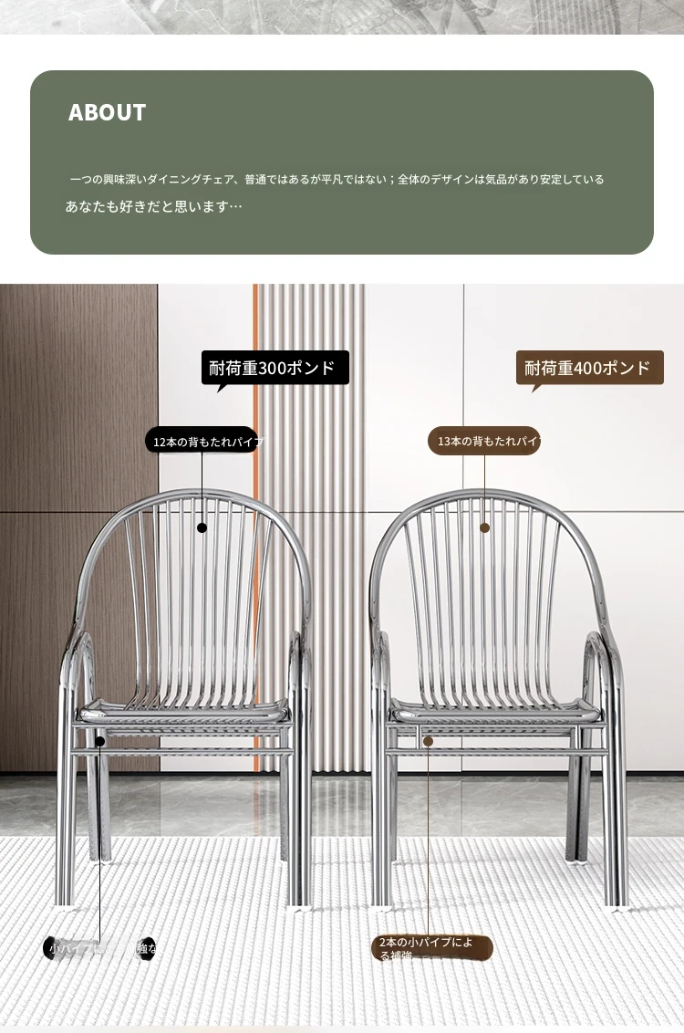 ステンレス製アウトドアチェア|モダンデザインの背もたれ付き家庭用金属バルコニーダイニングチェア|シンプルでリラックスできる一人掛けアームチェア!快適な座り心地でおしゃれな空間を演出します。