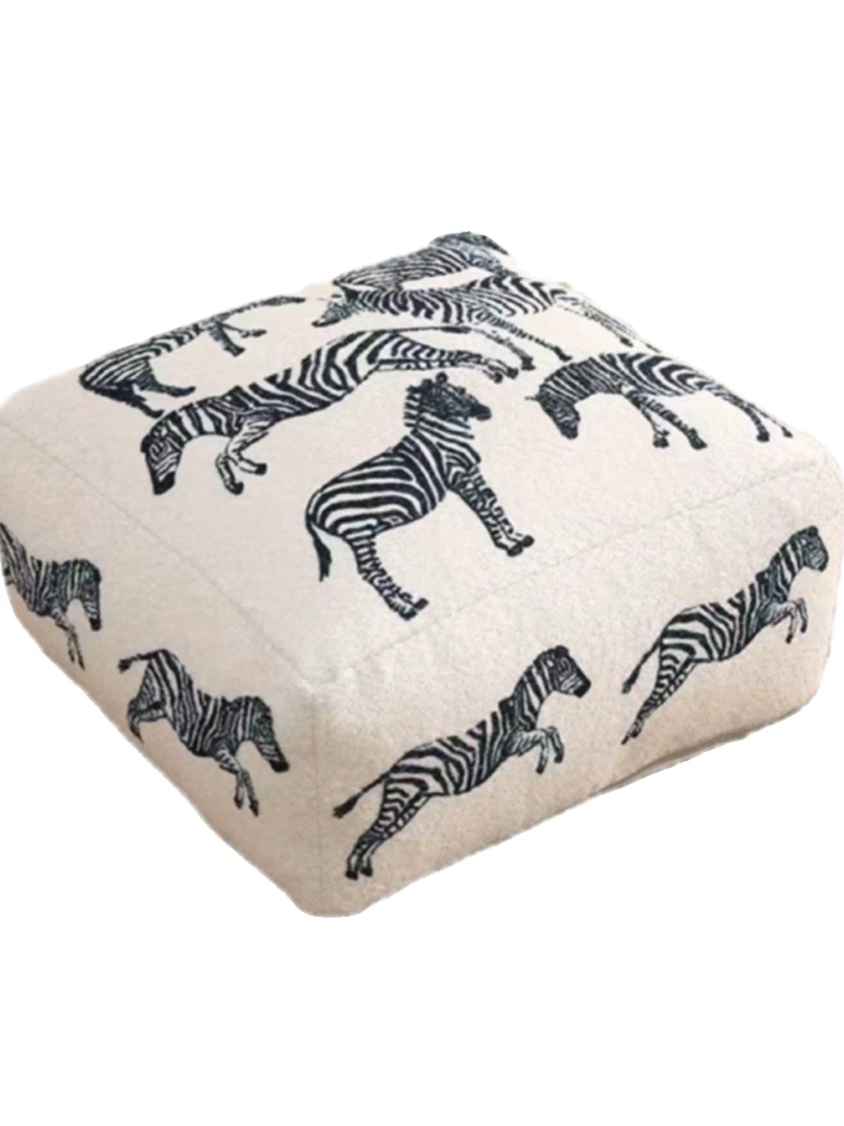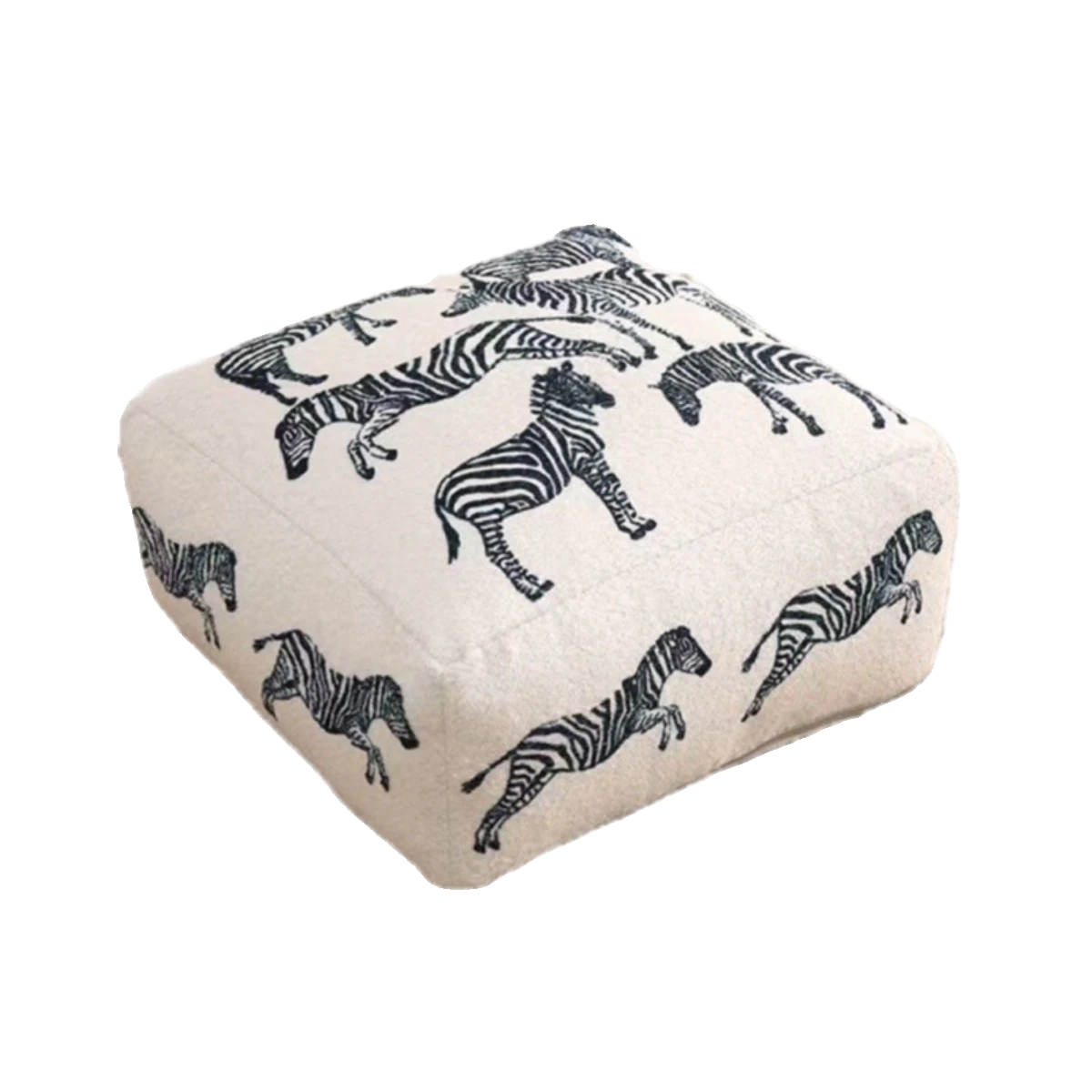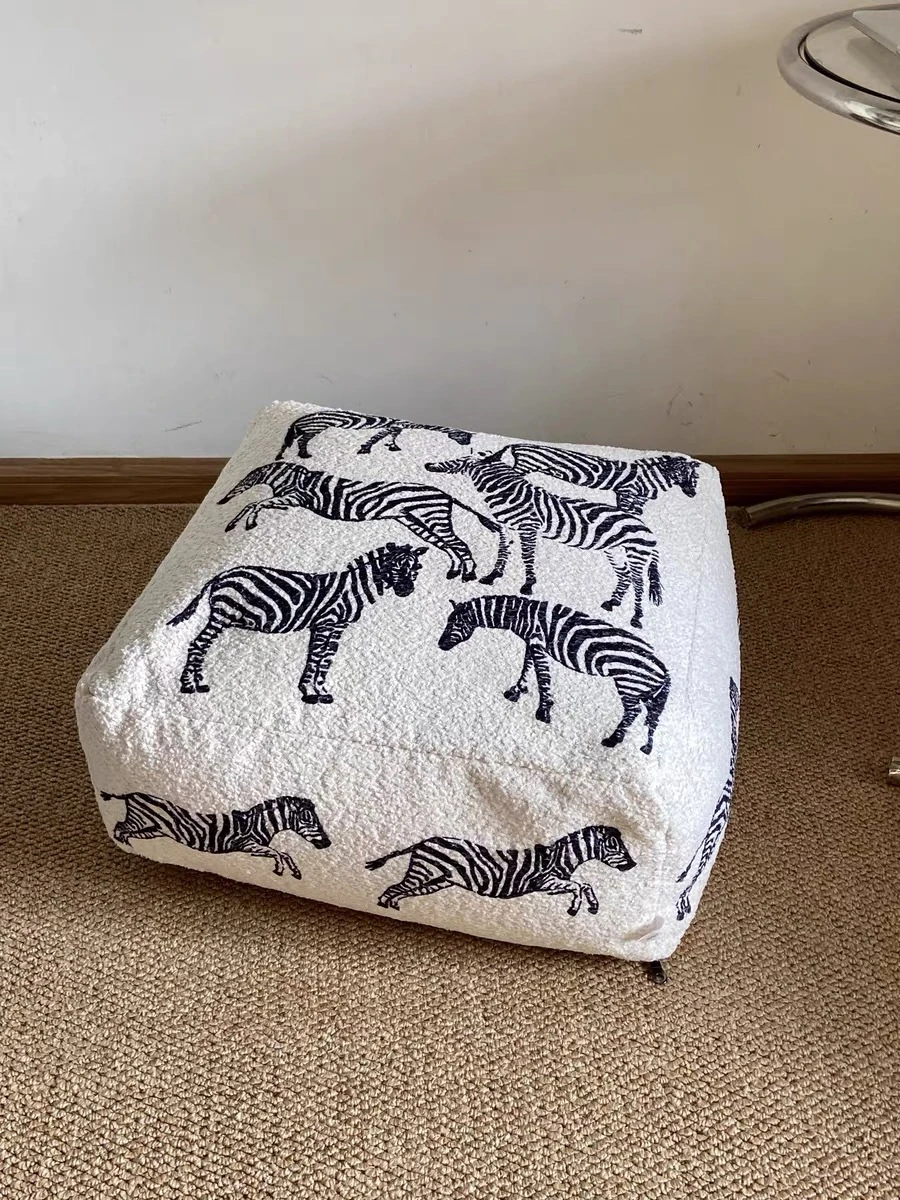 MOMO Vintage Zebra Ottoman | Removable & Washable Cushion · Stylish Zebra Print for Ultimate Comfort