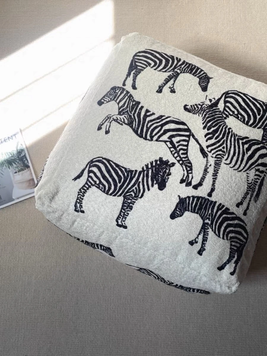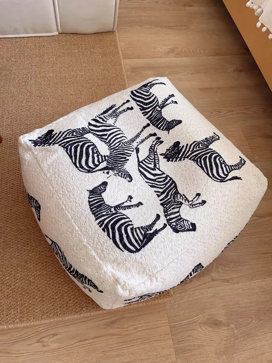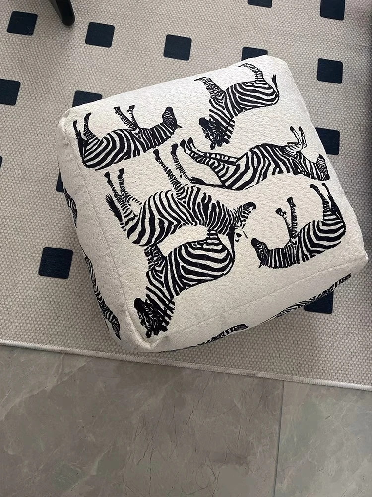MOMO Vintage Zebra Ottoman | Removable & Washable Cushion · Stylish Zebra Print for Ultimate Comfort
