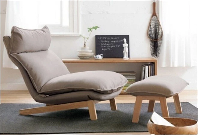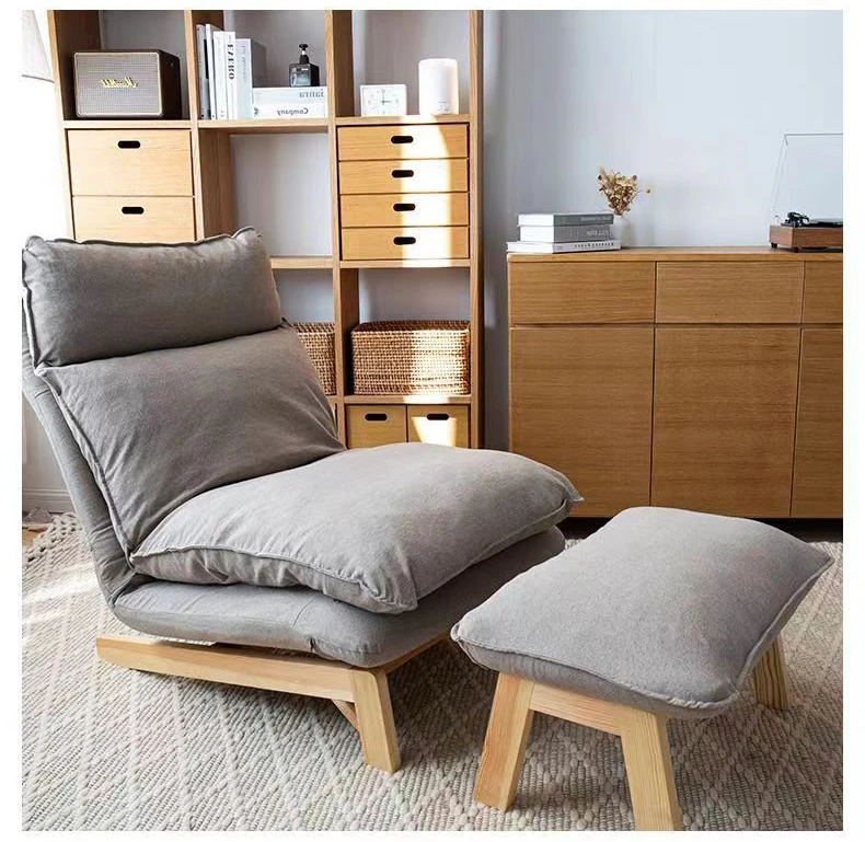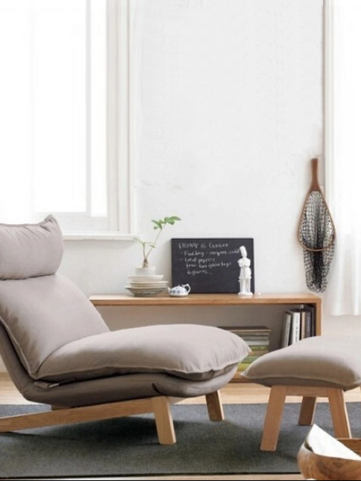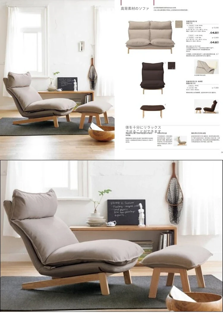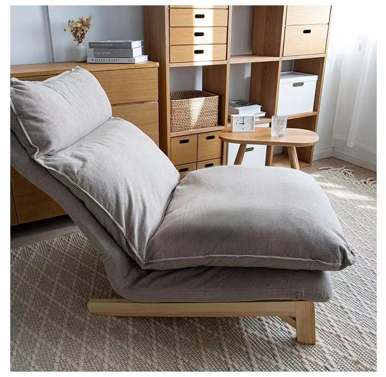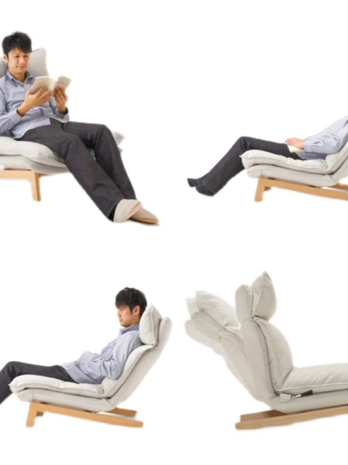 無印良品スタイルの高背もたれソファチェア - 木製のリクライニングでお昼寝も快適!折りたたみ&伸縮可能なデザインで、リラックスしたい大人にぴったりのレジャー用ソファ。