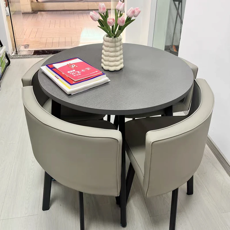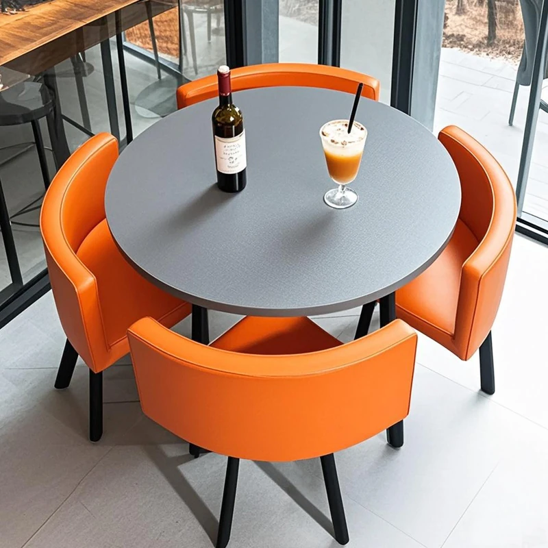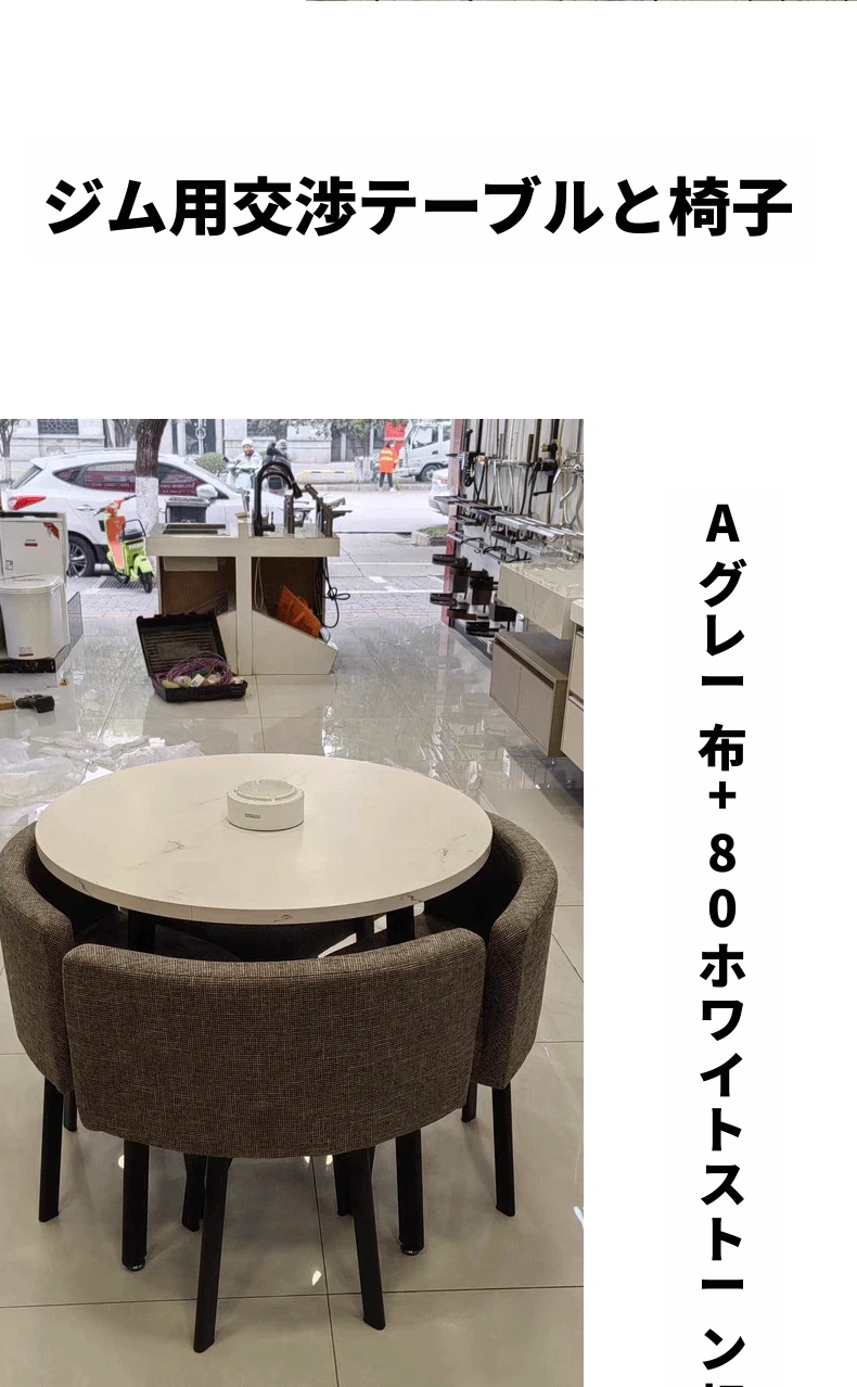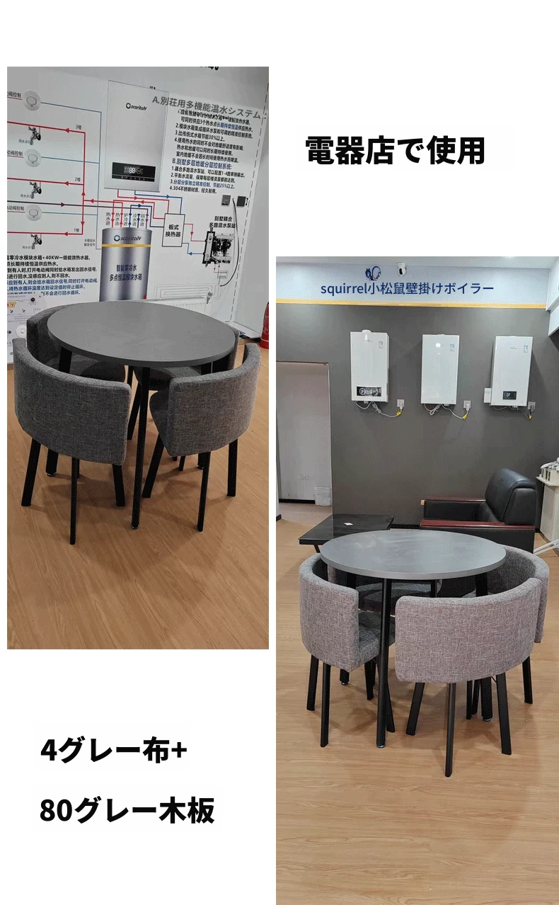 新作!80cmのグレーラウンドテーブル|接客・打ち合わせ・図書館にぴったりの小型テーブル|レストランにも最適!白石根木板デザインでおしゃれな雰囲気を演出。