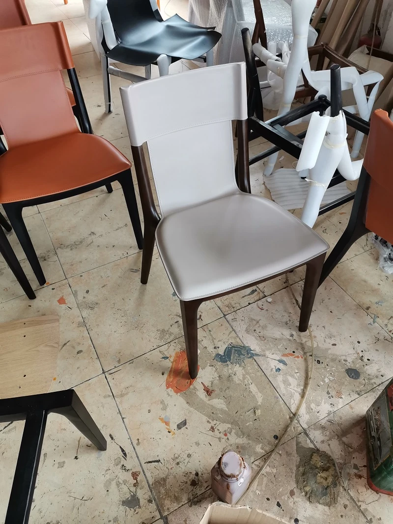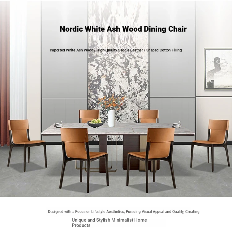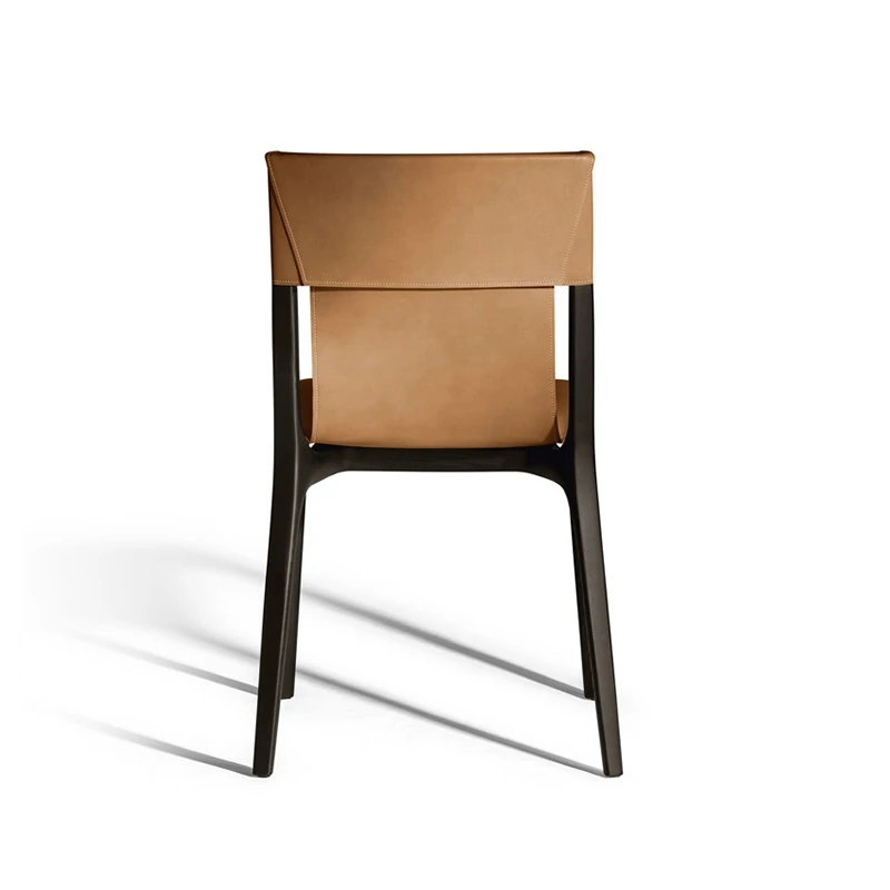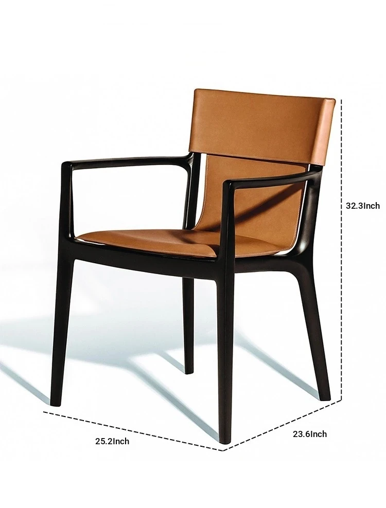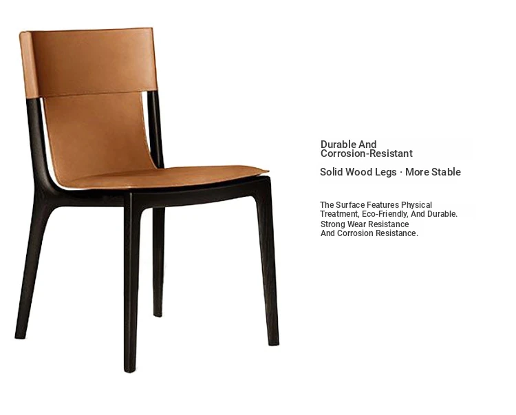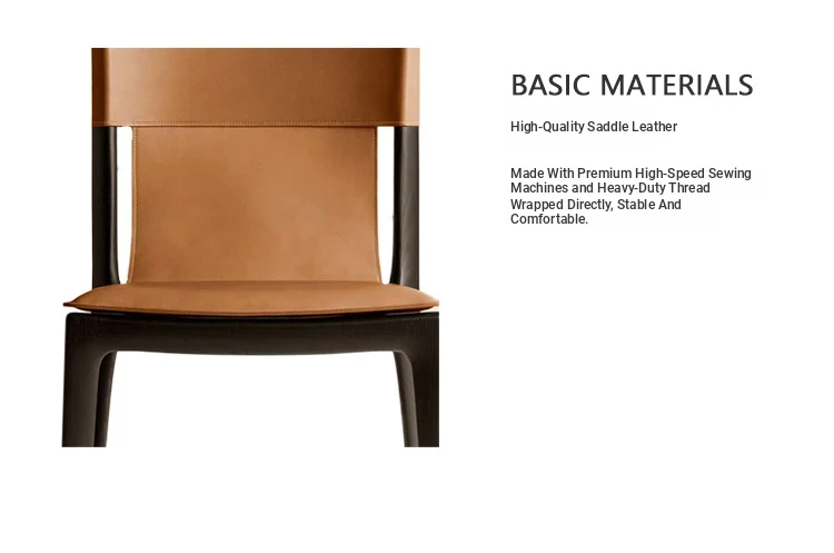 Nordic E-Home Poltrona Frau Saddle Leather Designer Solid Wood Dining Chair – Perfect for Cafés, Lounges, and Home Use