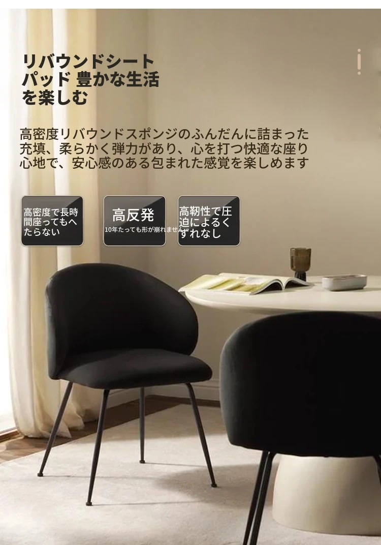 北欧スタイルの軽やかなラグジュアリー!シンプルなデザインのダイニングチェア、家庭用やレストラン、カフェにも最適。快適な背もたれで、食事や読書の時間をより特別に演出します。