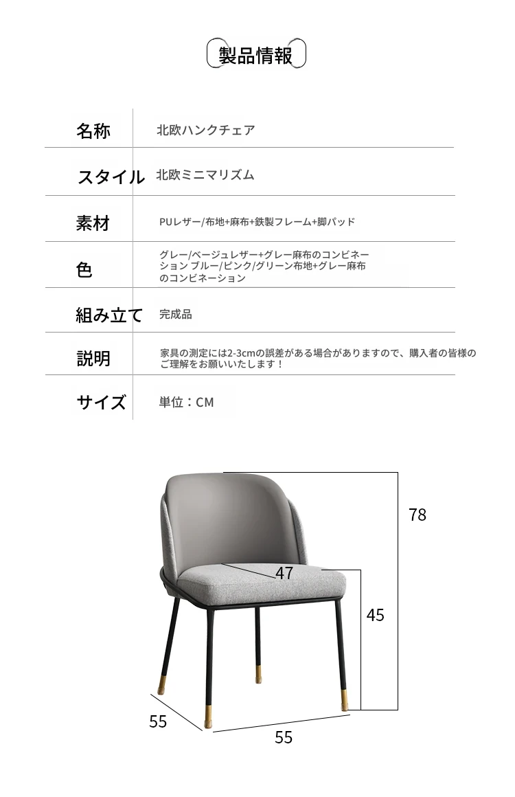 北欧風のリュクスなダイニングチェア|シンプルでモダンなデザイン|おしゃれなカフェやティーショップにぴったり|リラックスできる接客用チェアとして最適!