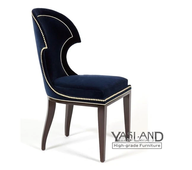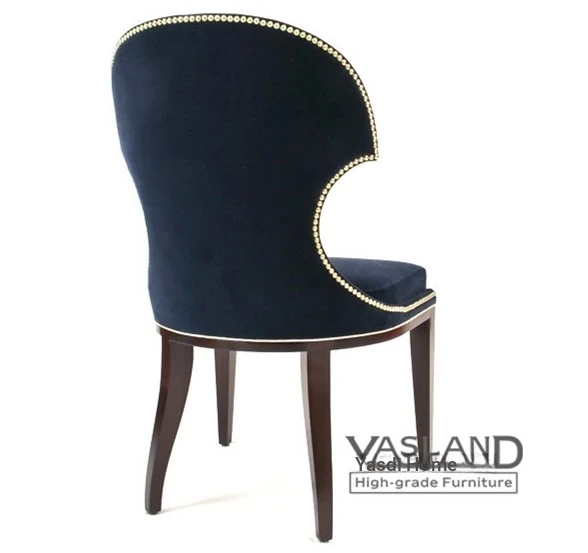 Nordic Minimalist Modern Dining Chair - American Solid Wood with Soft Upholstered Deep Blue Fabric, New Classical Creative Design for Your Home