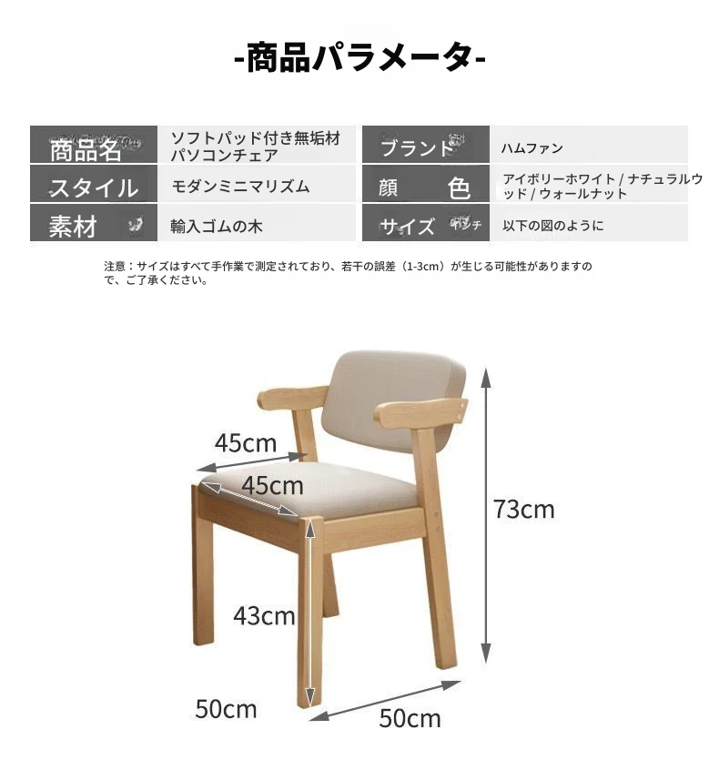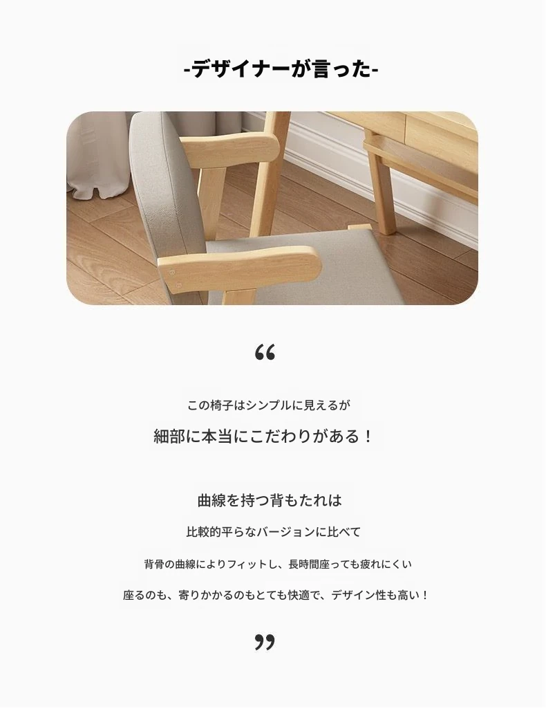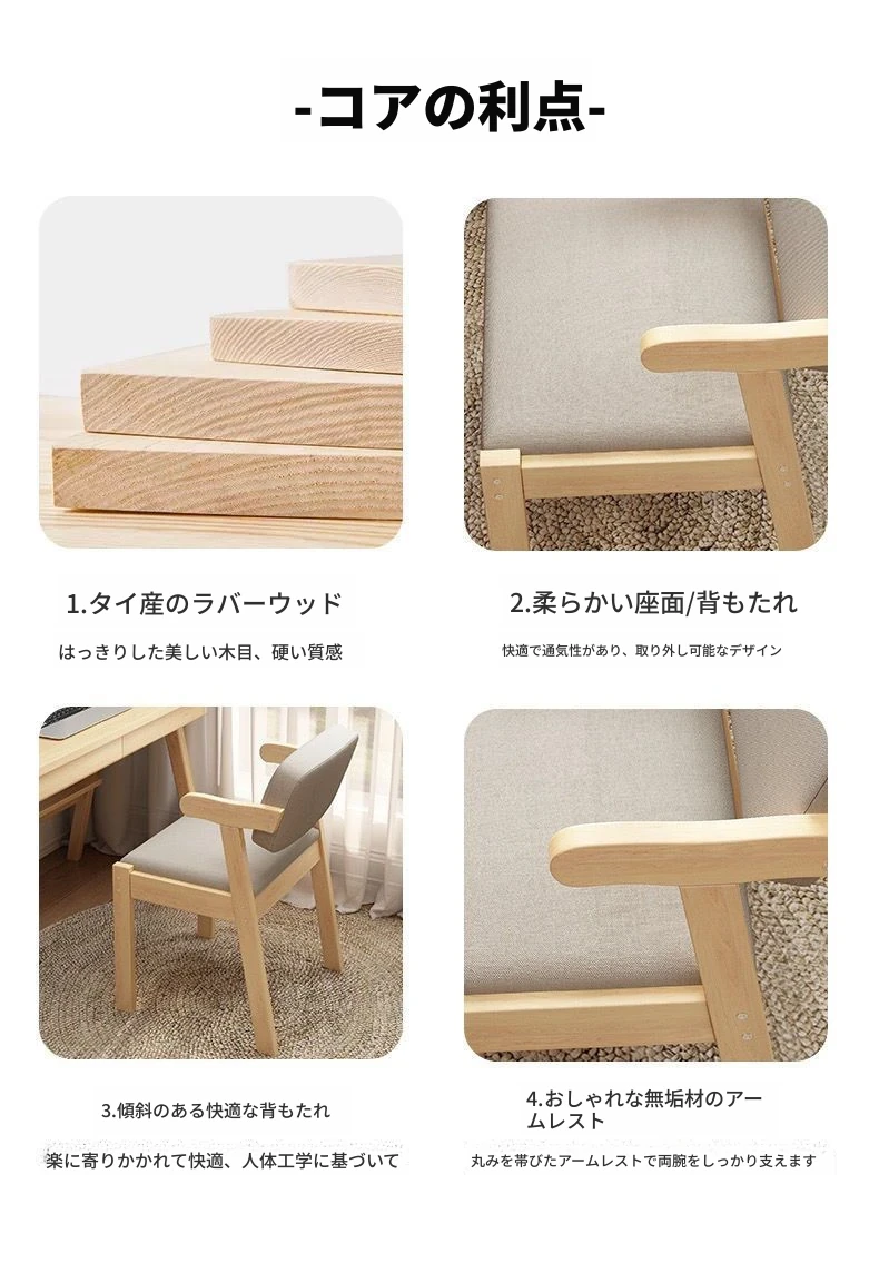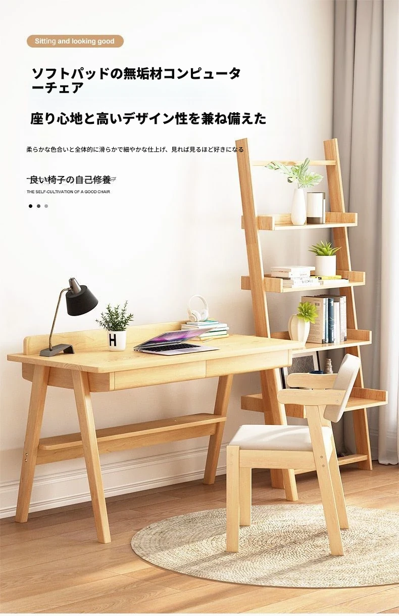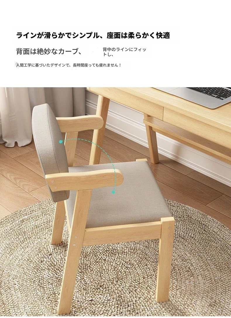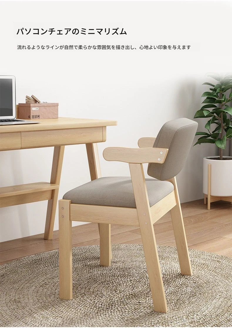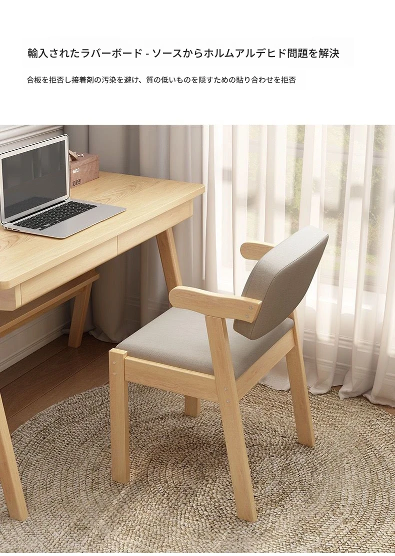 北欧スタイルのシンプルな天然木製デスク&チェアセット|背もたれ付きアームチェア|自宅学習やオフィスに最適な快適な書斎用椅子|学生にもおすすめ!
