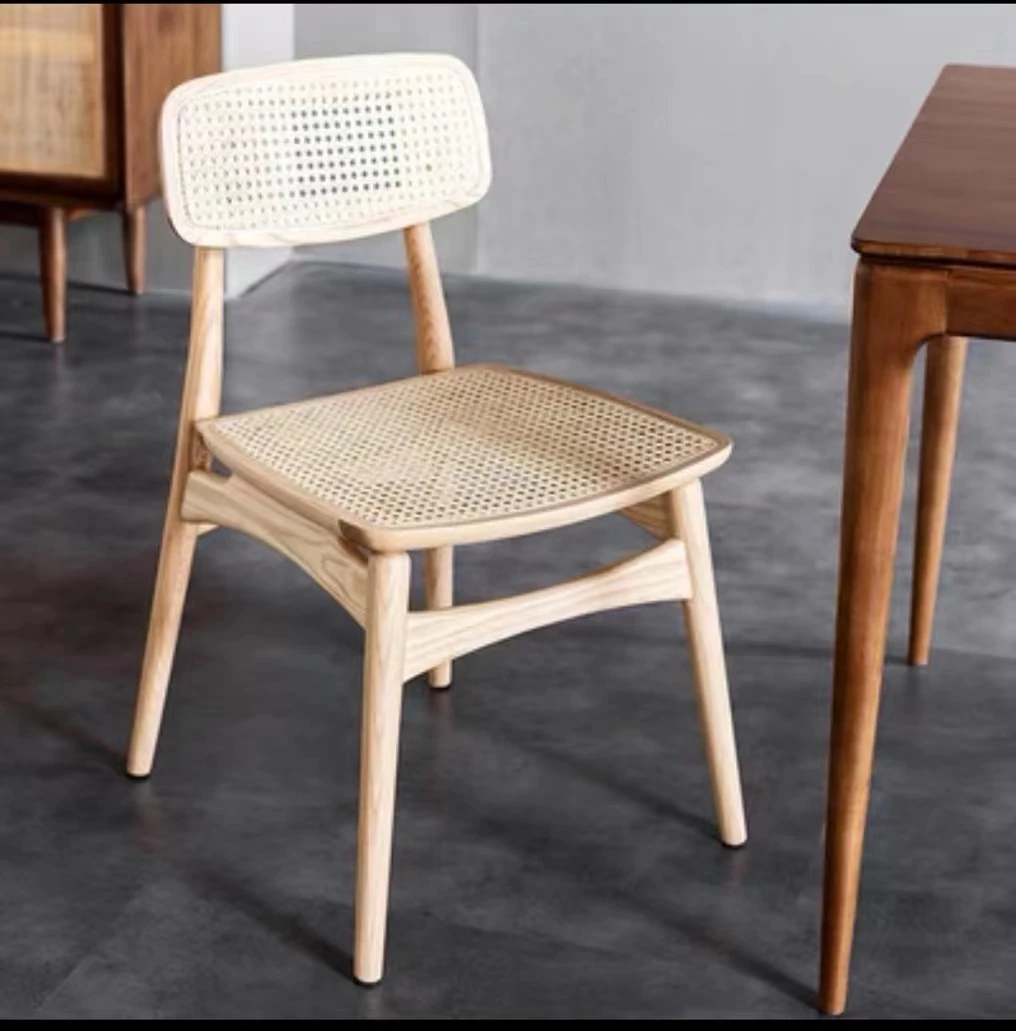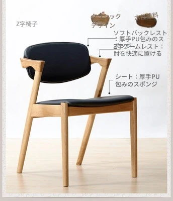 北欧スタイルのシンプルな無垢材ダイニングテーブル&チェアセット - 鉄製の背もたれ付きリクライニングチェアで快適なオフィスやリビングに最適!小さなスペースにもぴったり。