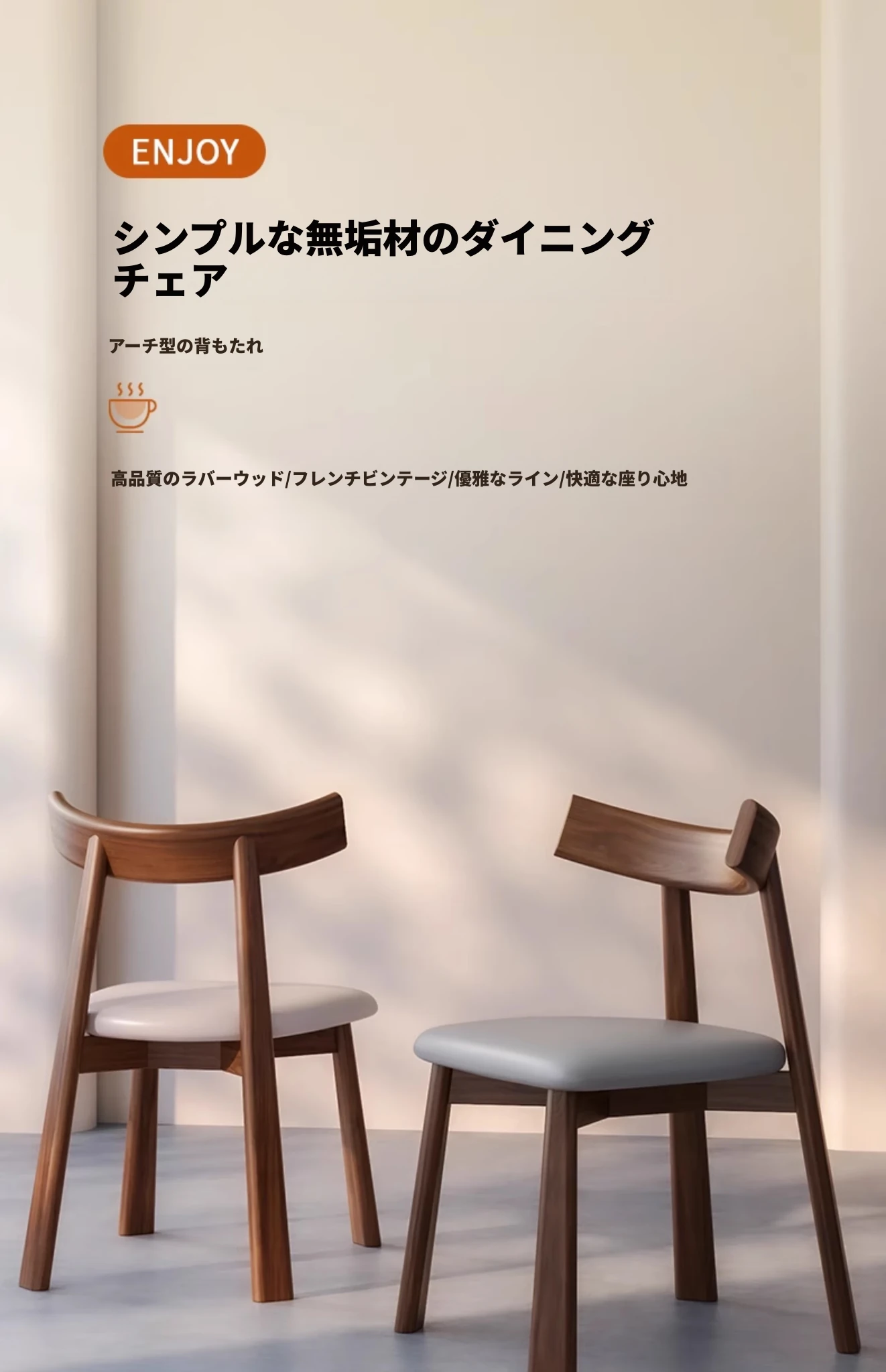 北欧スタイルの無垢材ダイニングチェア|フレンチヴィンテージデザインの背もたれ付き|高級感あふれるレストランや家庭にぴったり|アンティーク風のテーブルチェアセット【おしゃれなインテリアに最適】