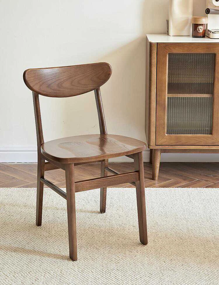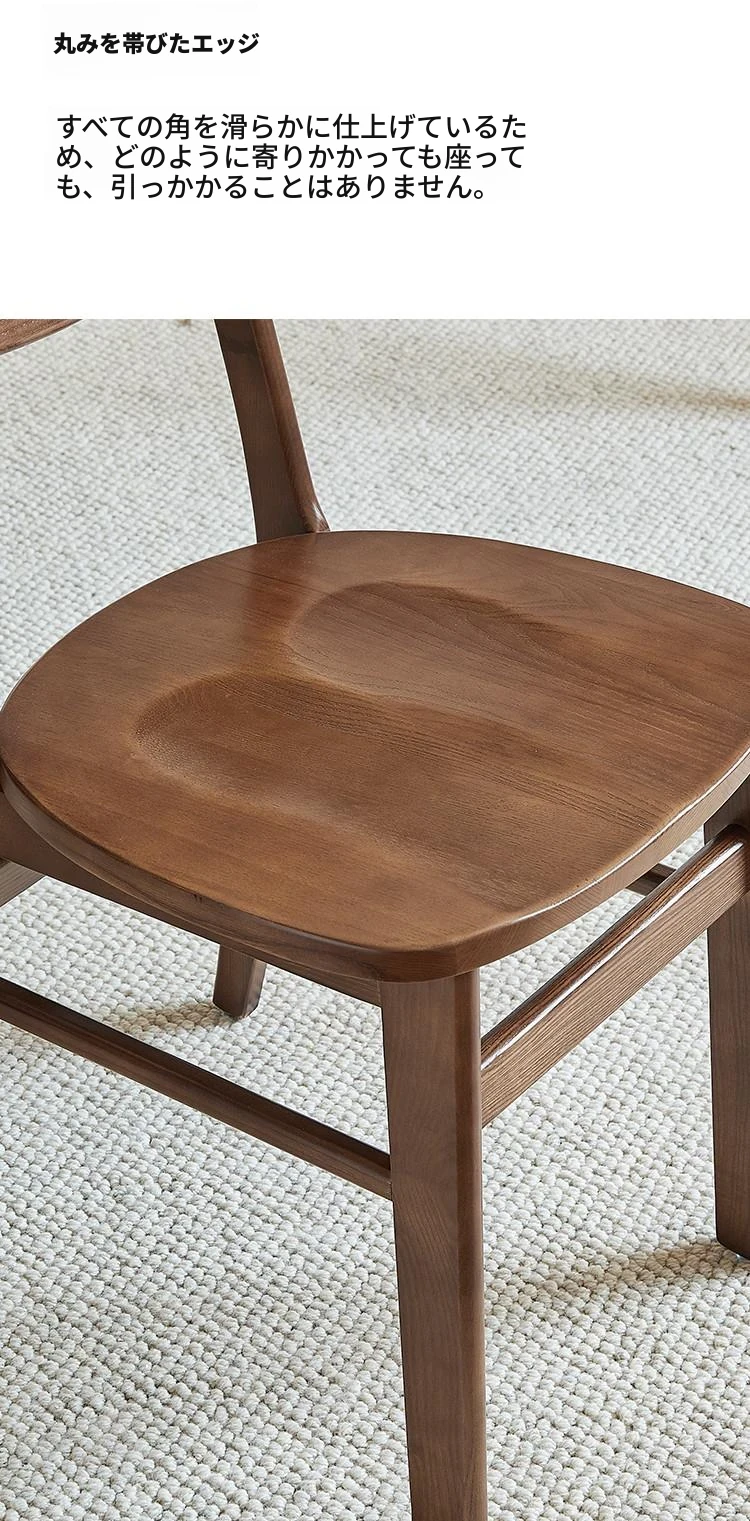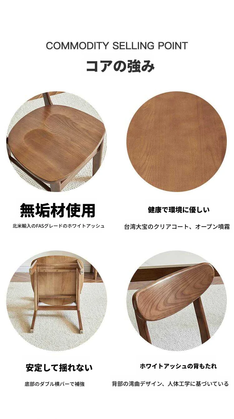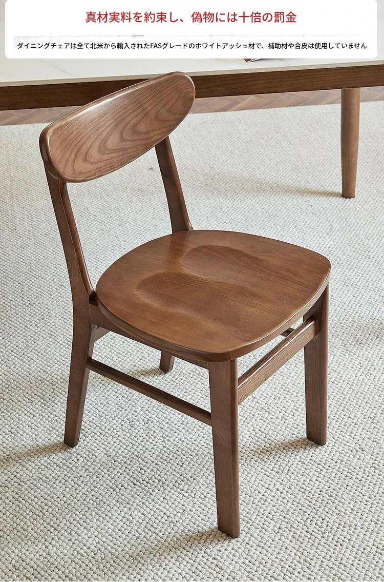 北欧スタイルの無垢材ダイニングチェア|シンプルでモダンなデザイン|ホワイトアッシュ使用|快適な背もたれ|高級レザーのクッション|おしゃれな食卓にぴったりのポテトチップスチェア