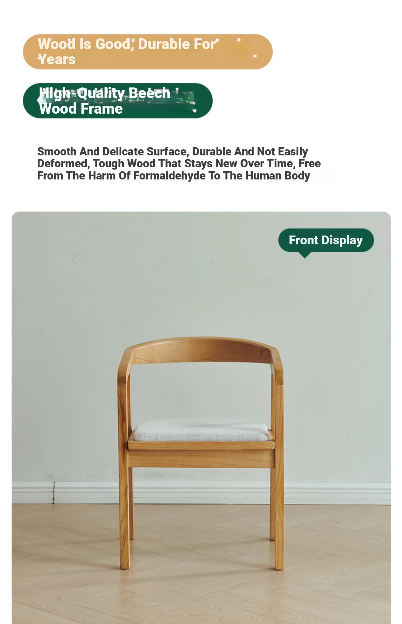 Nordic Solid Wood Dining Chair - Modern Minimalist Office Meeting Chair with Backrest, Perfect for Home Use, Study Desks, and Relaxation - Model 1131