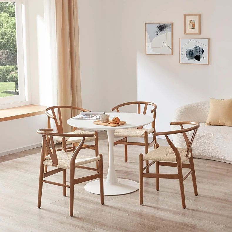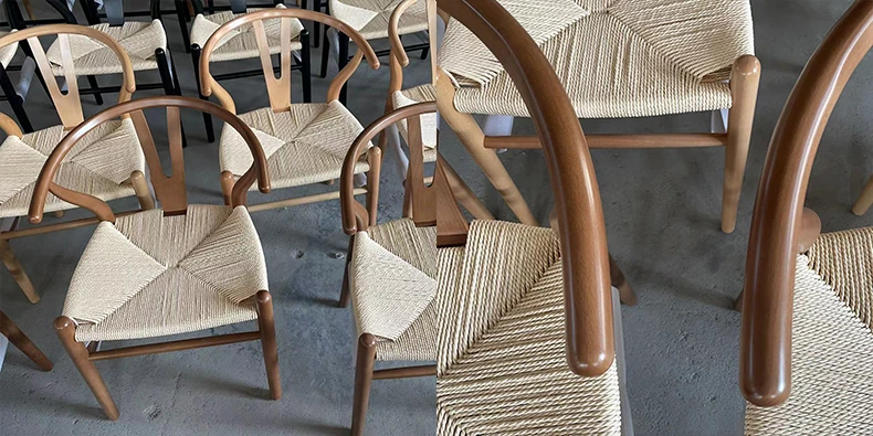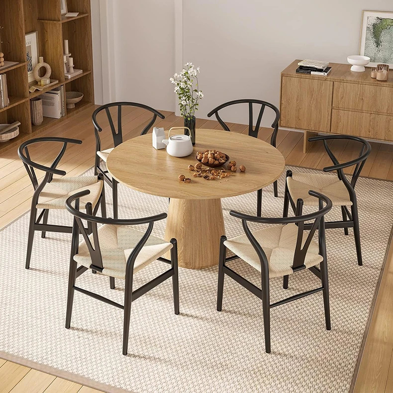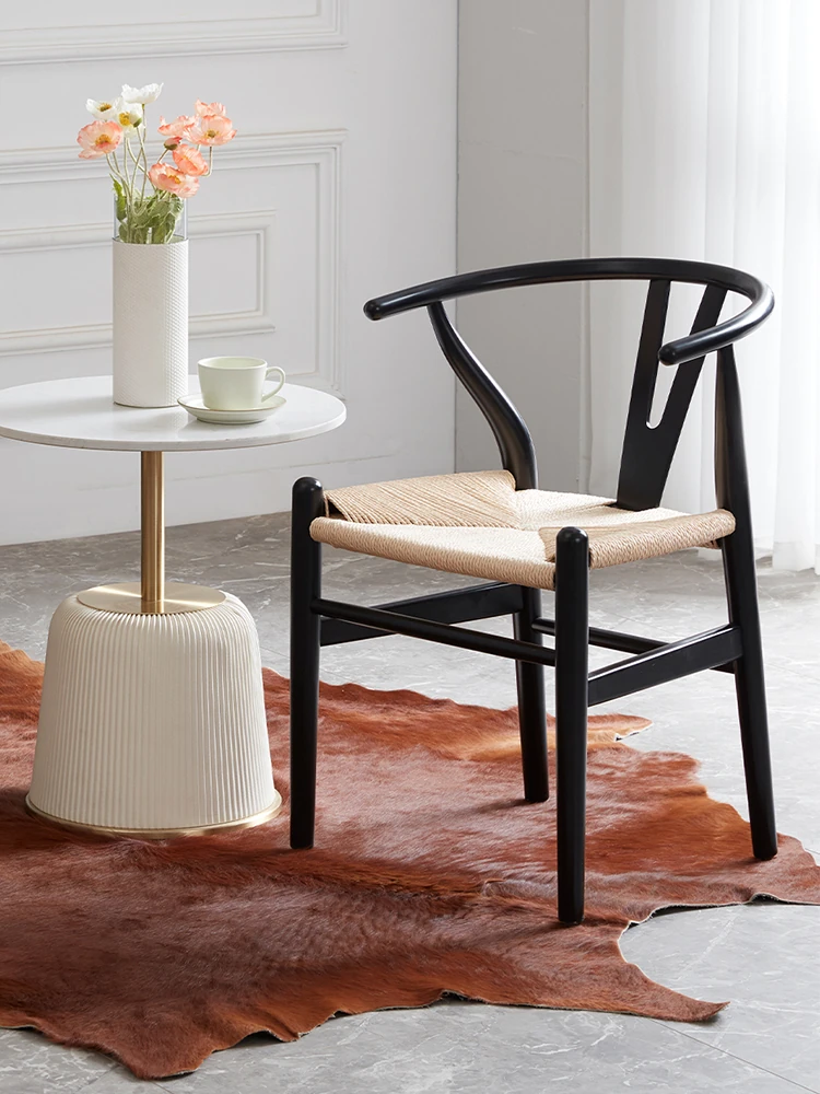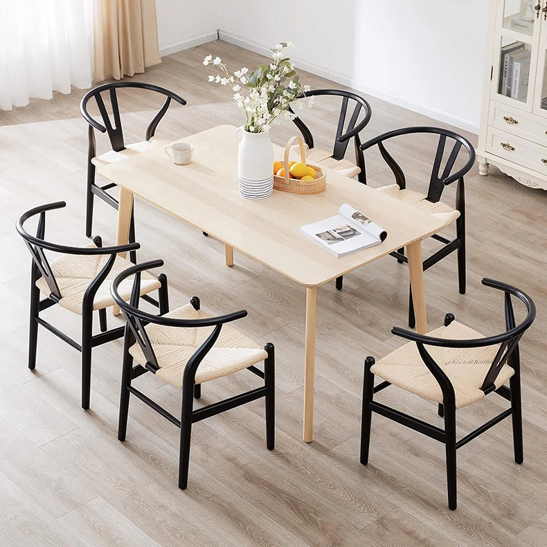北欧風の天然木とラタン編みのダイニングチェア|家庭用・民宿・ティールームに最適!背もたれ付きのモダンでシンプルなデザイン、クリエイティブなアームチェアで快適なひとときを。