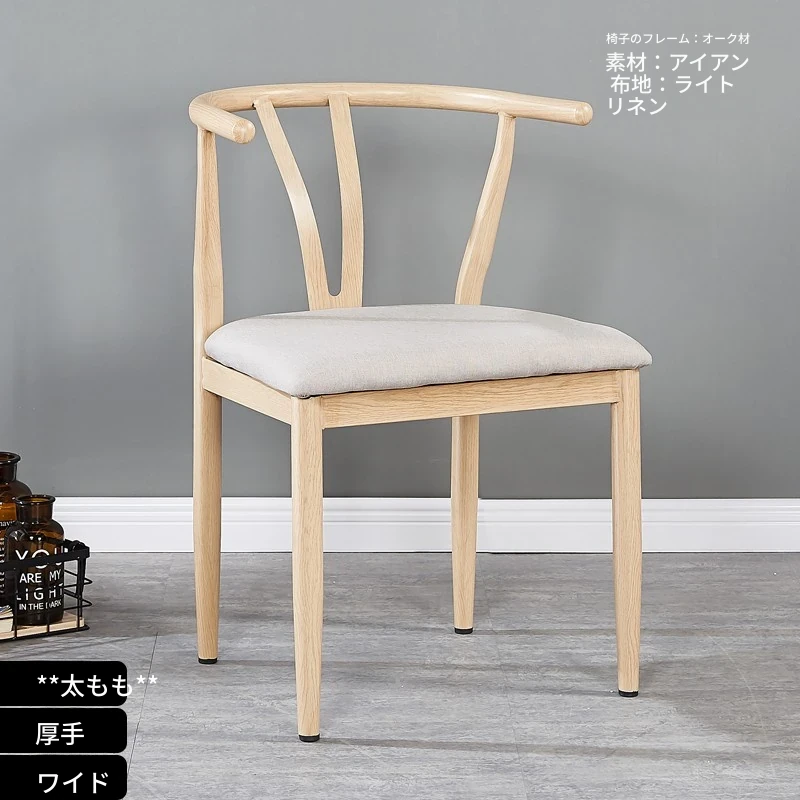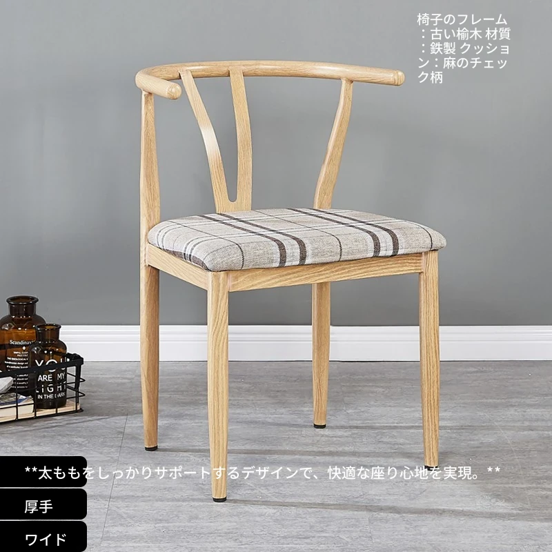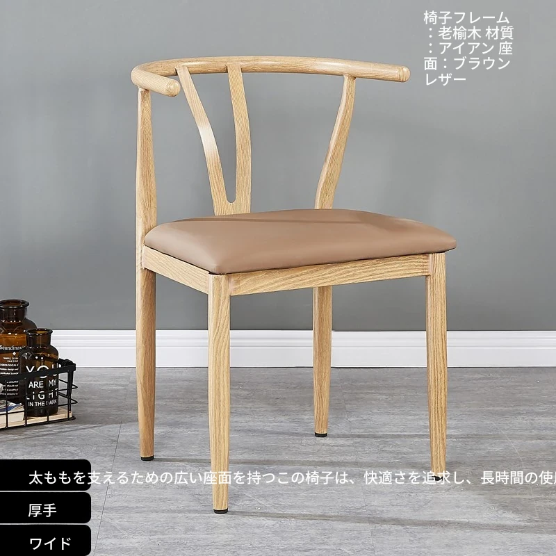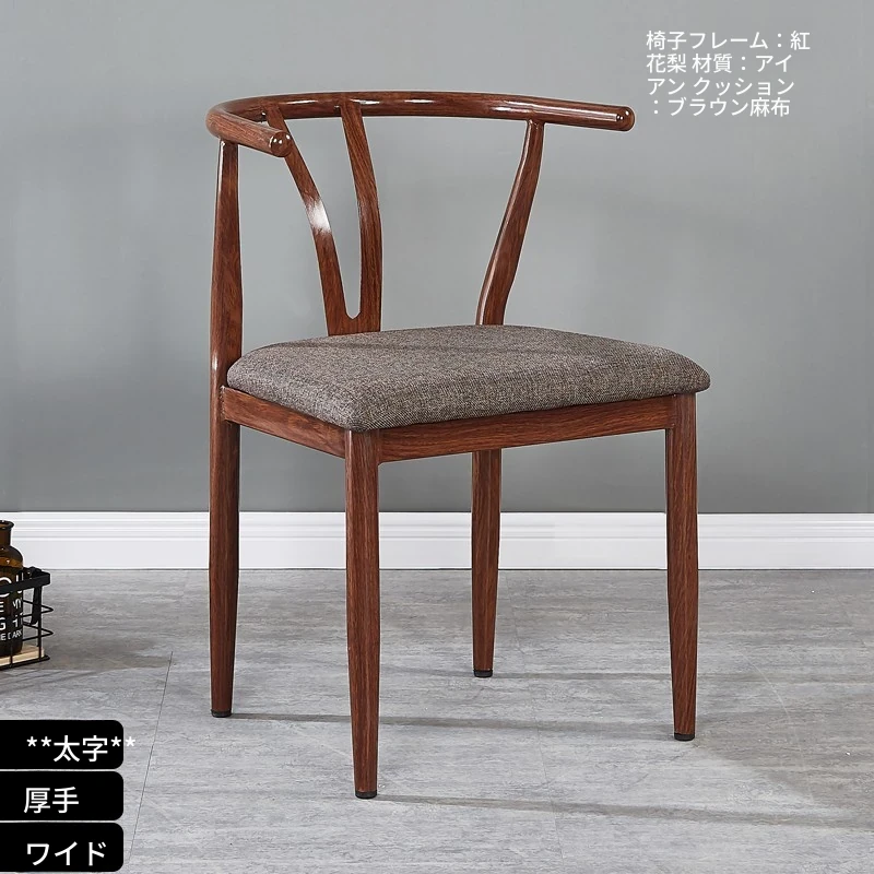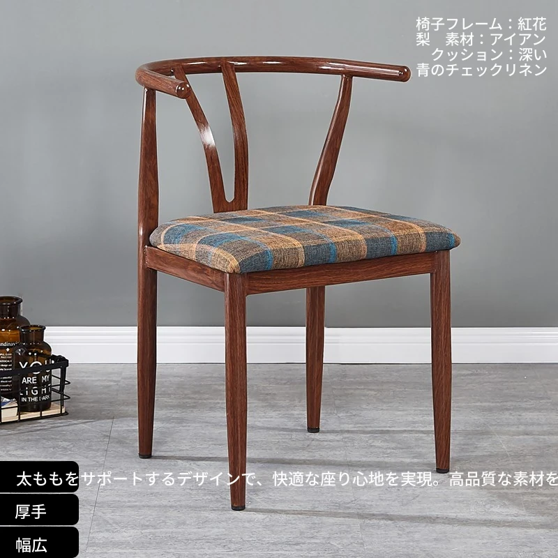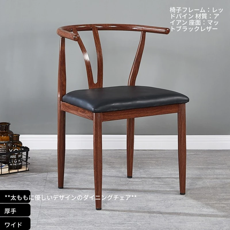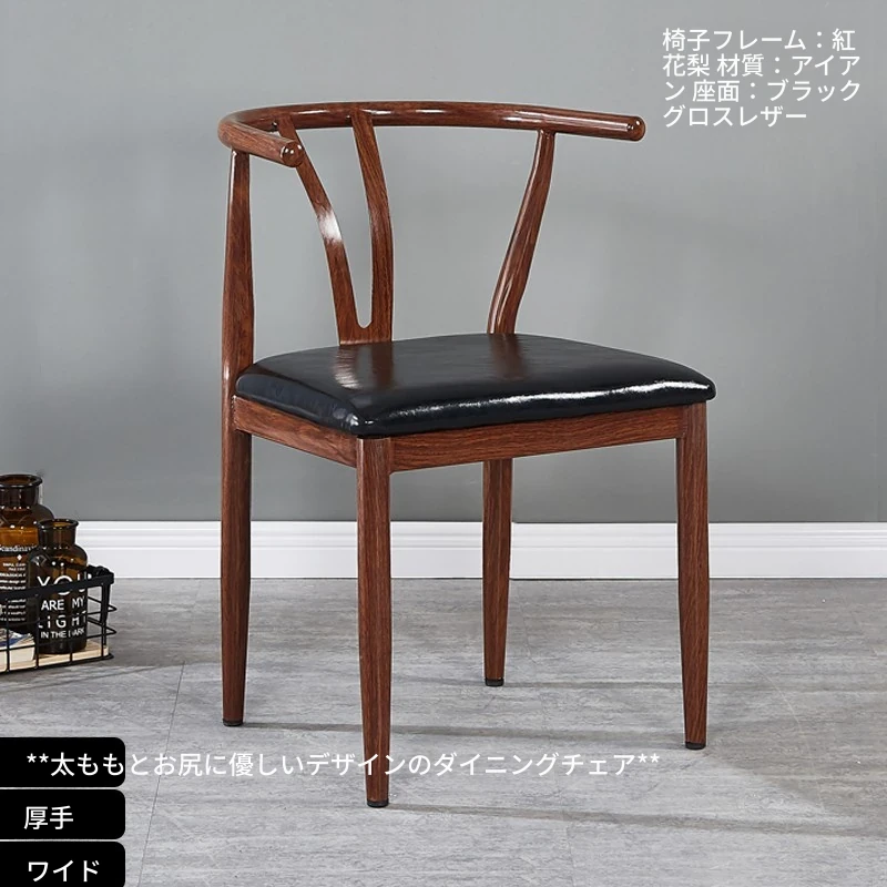中式デザインの北欧風ダイニングチェア - 実木風アイアン製の背もたれ付き太師椅子Y字型 - レストランやカフェに最適なスタイリッシュなテーブルセット!