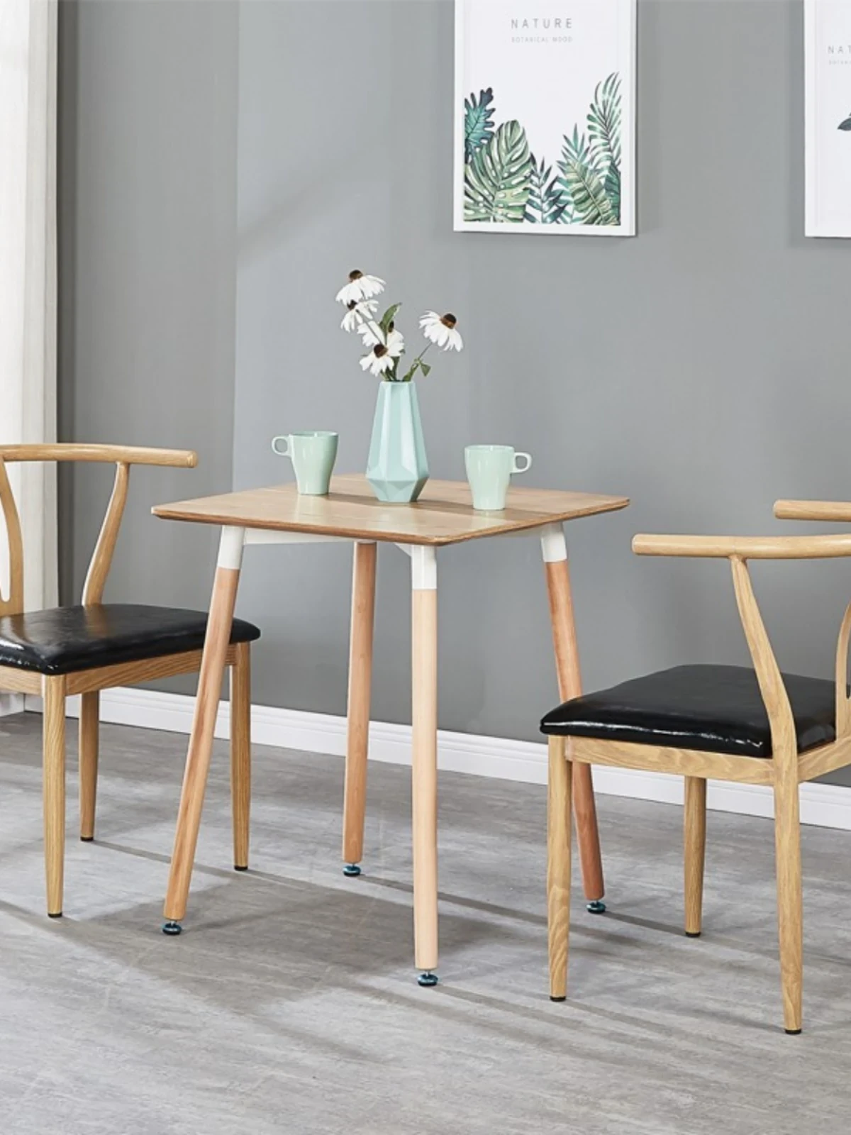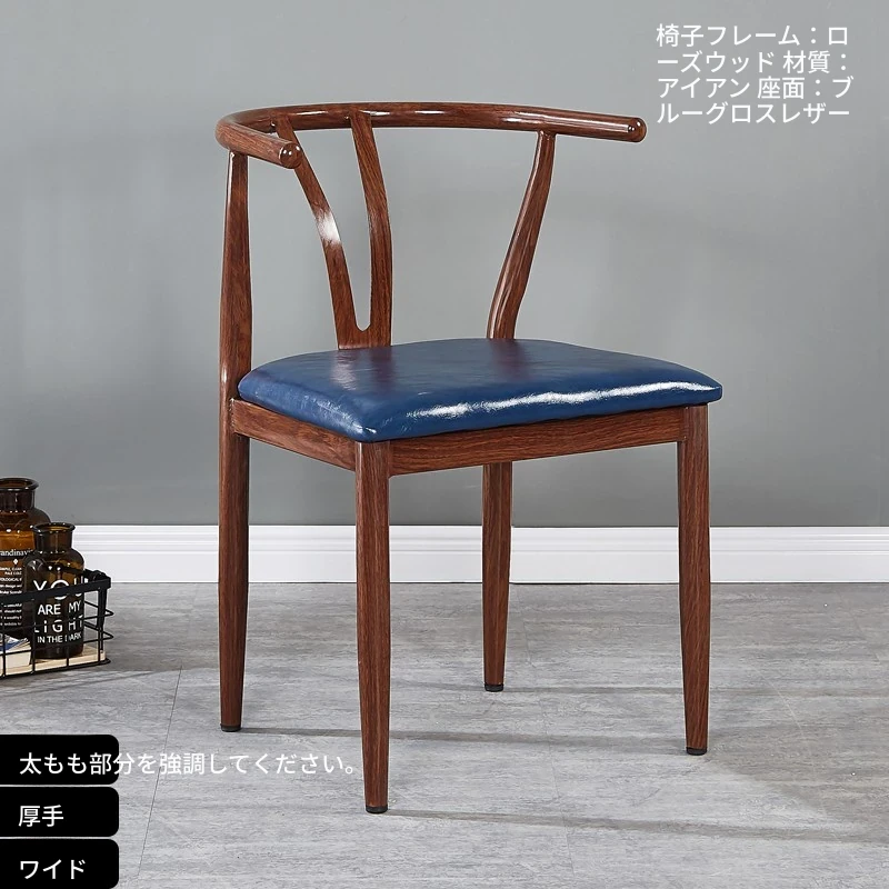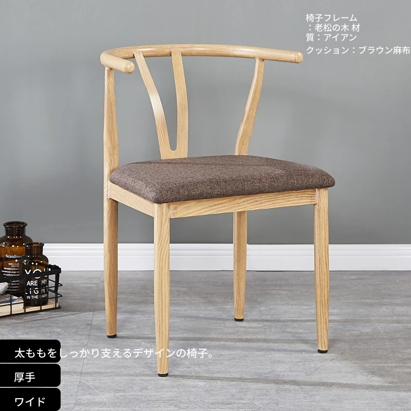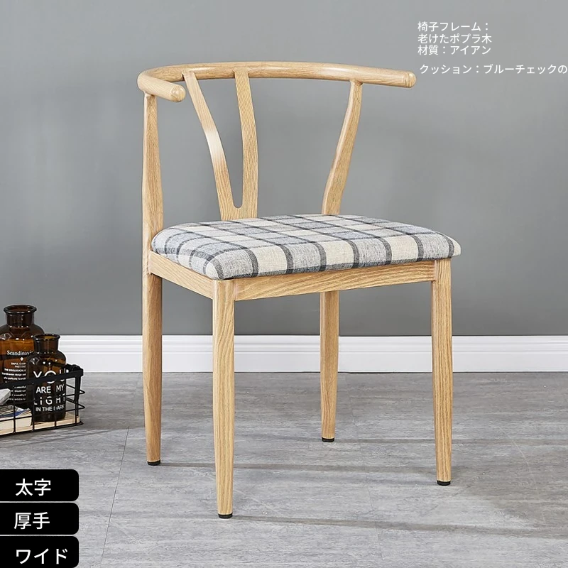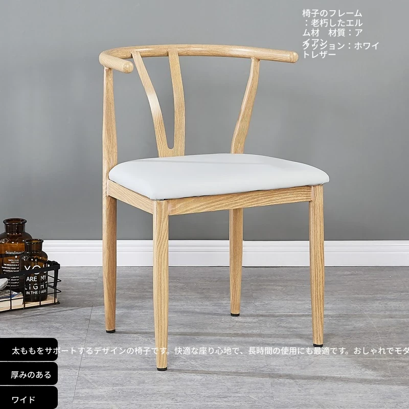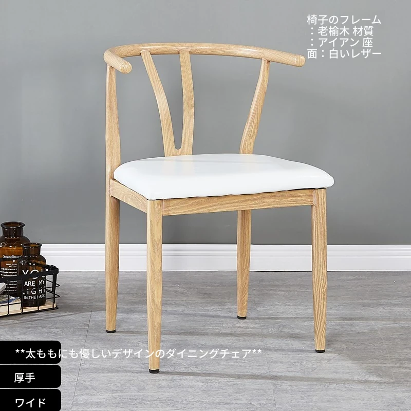 中式デザインの北欧風ダイニングチェア - 実木風アイアン製の背もたれ付き太師椅子Y字型 - レストランやカフェに最適なスタイリッシュなテーブルセット!
