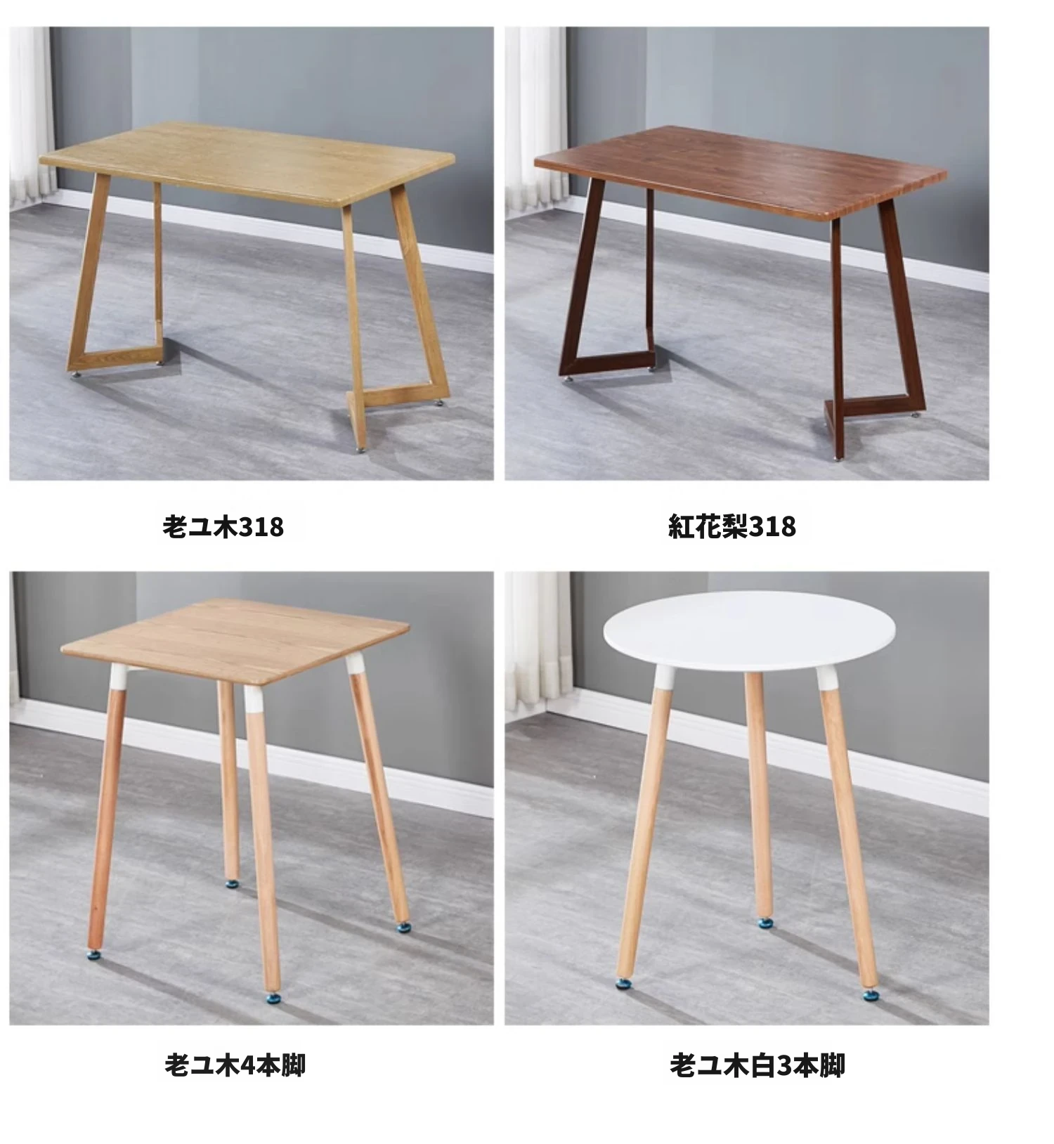 60*60方形木皮テーブル面ブナ木脚