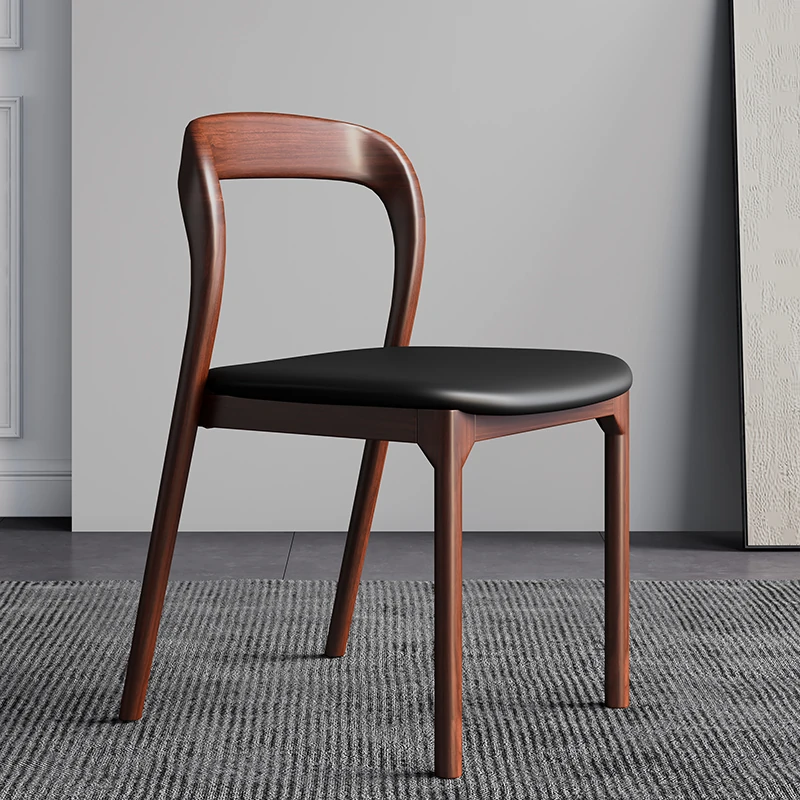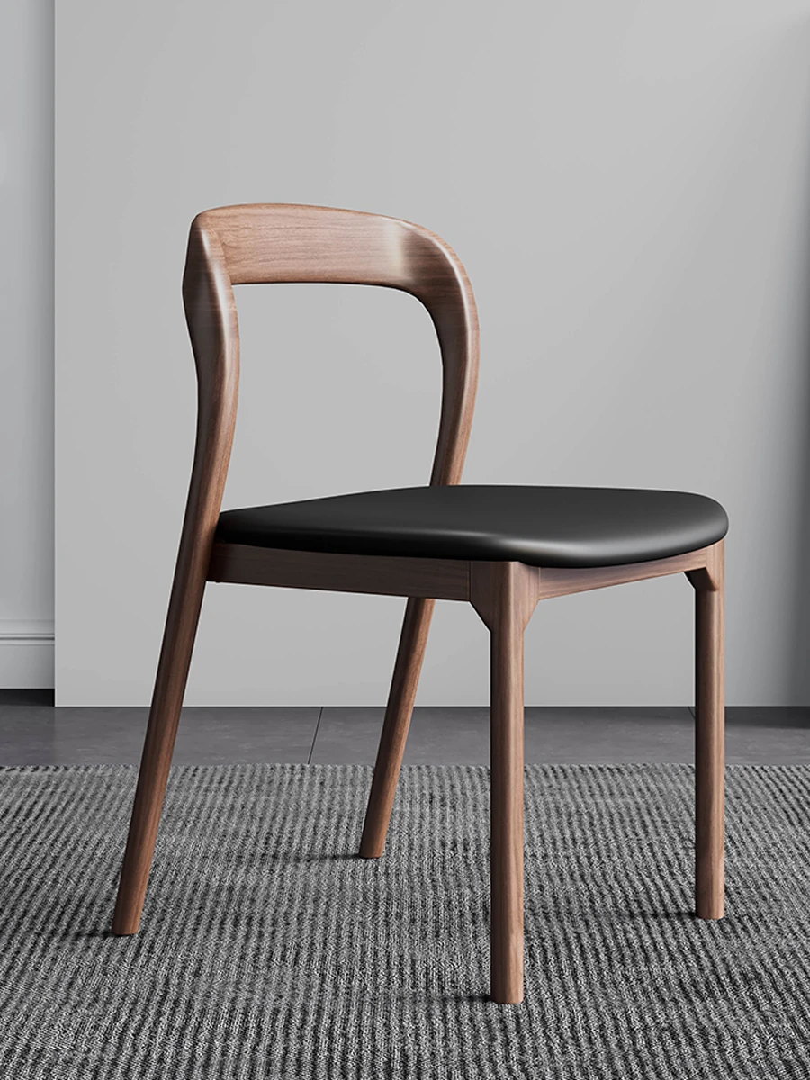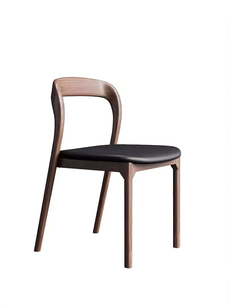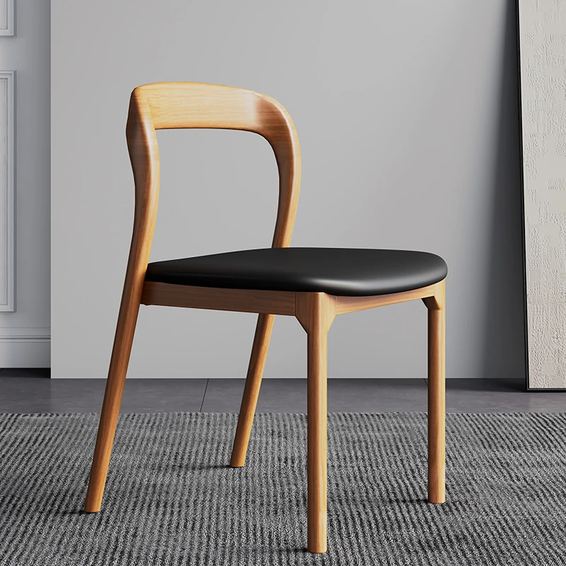 北欧スタイルのシンプルな無垢材ダイニングチェア - 快適さとスタイリッシュさを兼ね備えた、現代の小さなスペースに最適なリビング・書斎用背もたれ付き椅子!