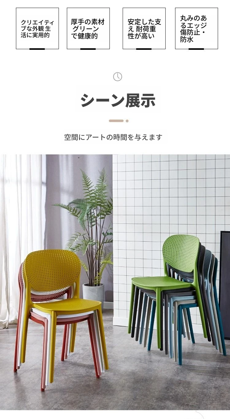 北欧風シンプルデザインのプラスチック製厚背もたれダイニングチェア - 家庭用、リビング、レストランに最適な談話・接客用椅子!快適な座り心地で、スタイリッシュな空間を演出します。