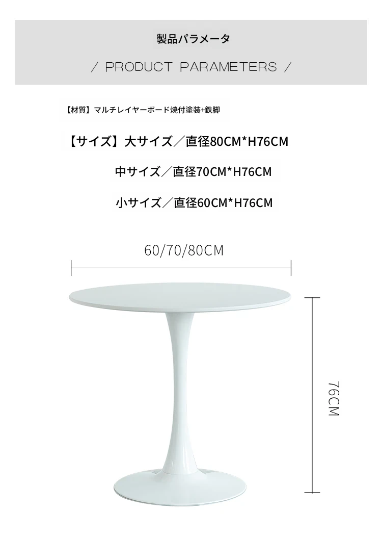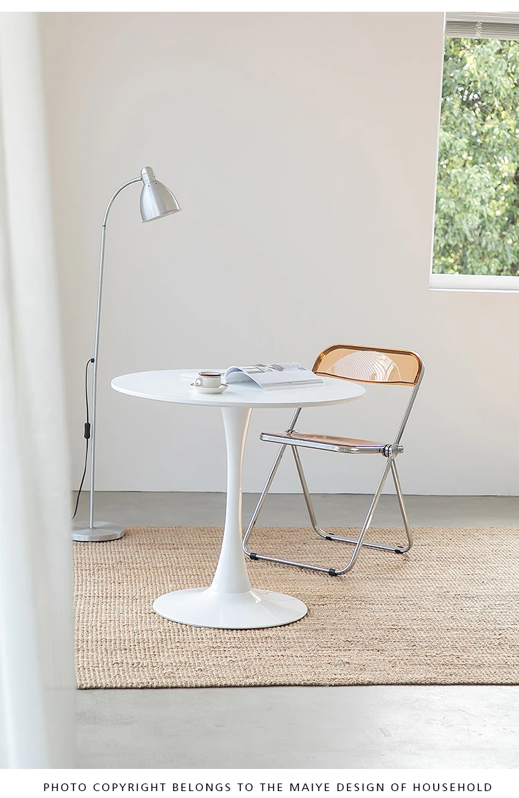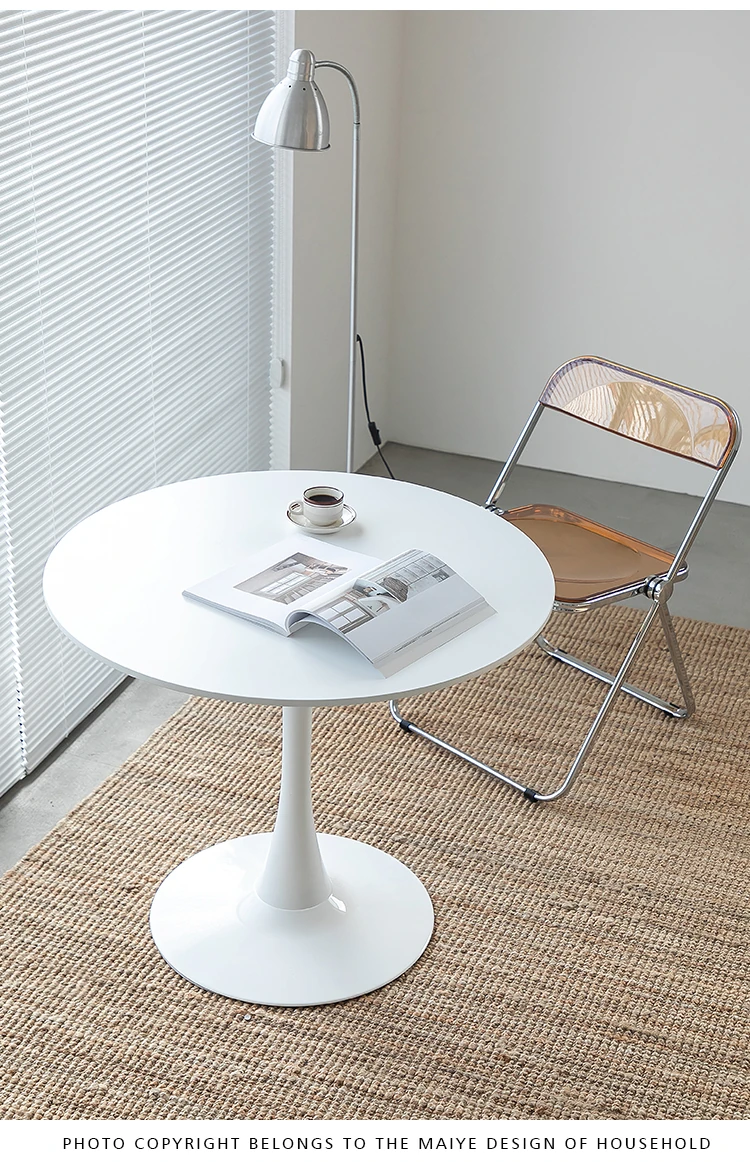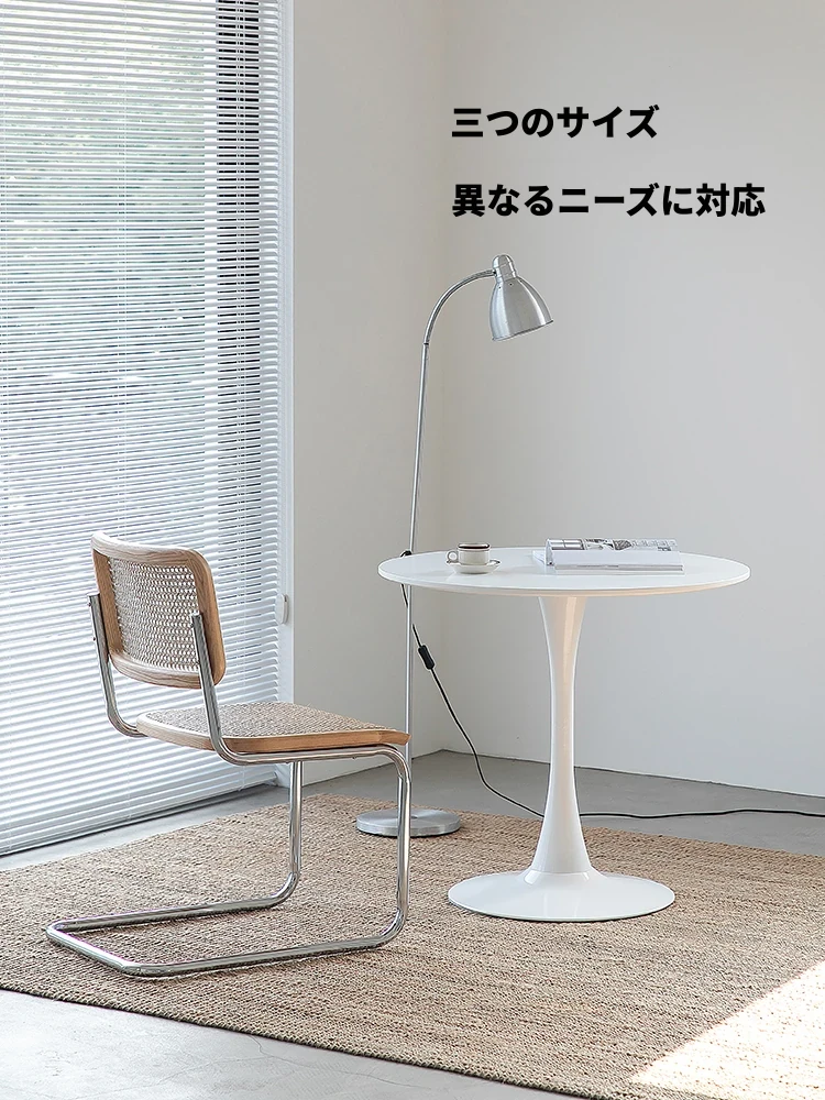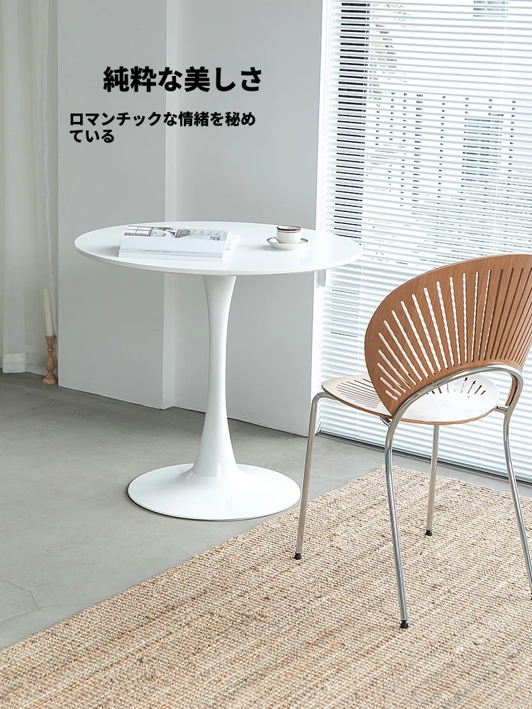 インスタ映えする北欧風チューリップダイニングテーブル!モダンでシンプル、狭いスペースにもぴったりのカジュアルなカフェテーブル。クリエイティブなデザインで、食事やおしゃべりを楽しむのに最適です!