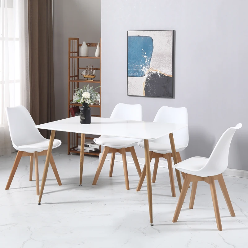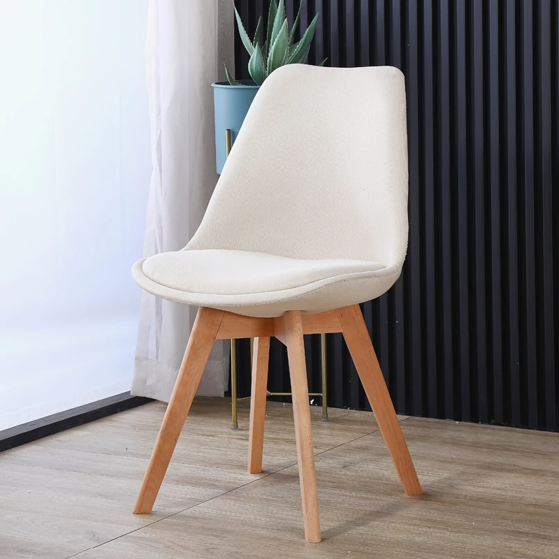 プラミー 北欧風ビーチウッドダイニングチェア&談話椅子 創造的なデスクチェア シンプルでおしゃれなレジャーチェア ホワイトレザー仕上げで快適さ抜群!