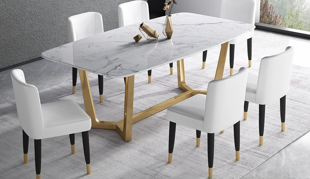 ポストモダン・ライトラグジュアリー大理石ダイニングテーブル&チェア 北欧スタイルの食卓セット!人気デザイナーによる洗練された家具で、あなたの食空間を格上げします。おしゃれで快適な食事を楽しんでください!
