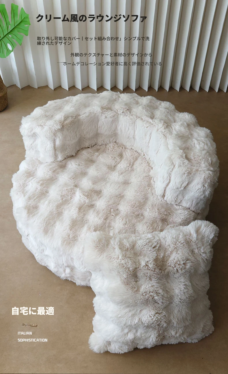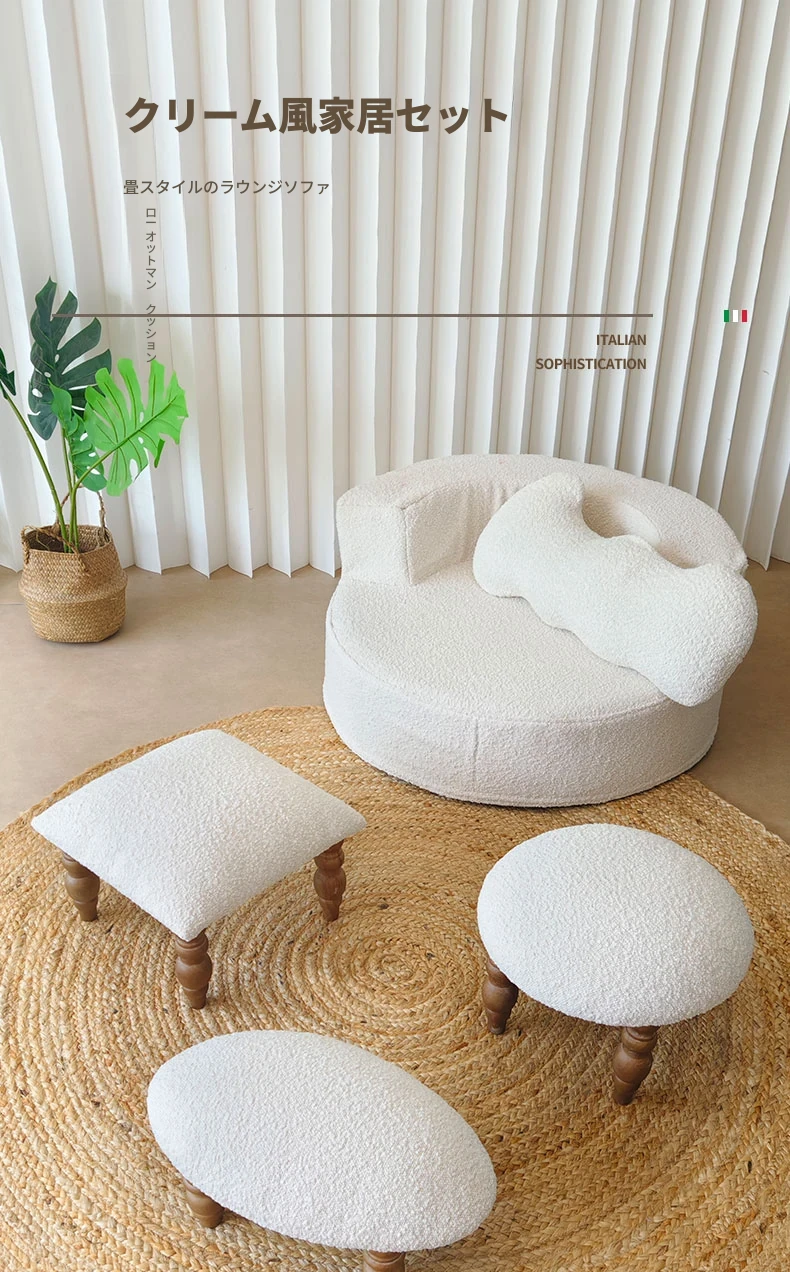 取り外し可能な布製リラックスソファ|おしゃれな寝室や畳スペースにぴったり!手作りのクッションで、クリーム色の侘寂風デザインが心地よい空間を演出します。快適なひとときをお楽しみください。