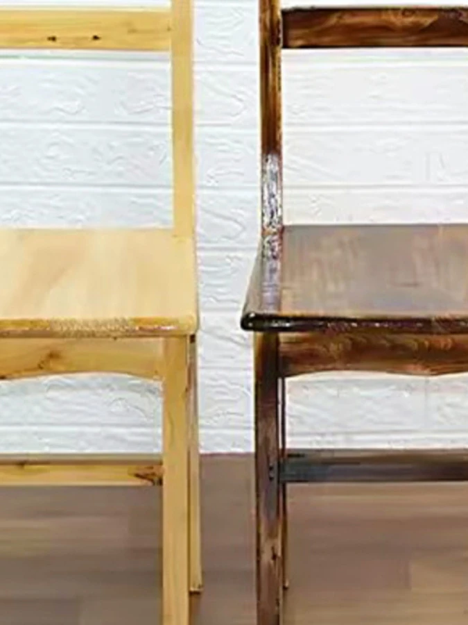 座面の高さ44cm、全体の高さ90cmのパイン炭化ダイニングチェア