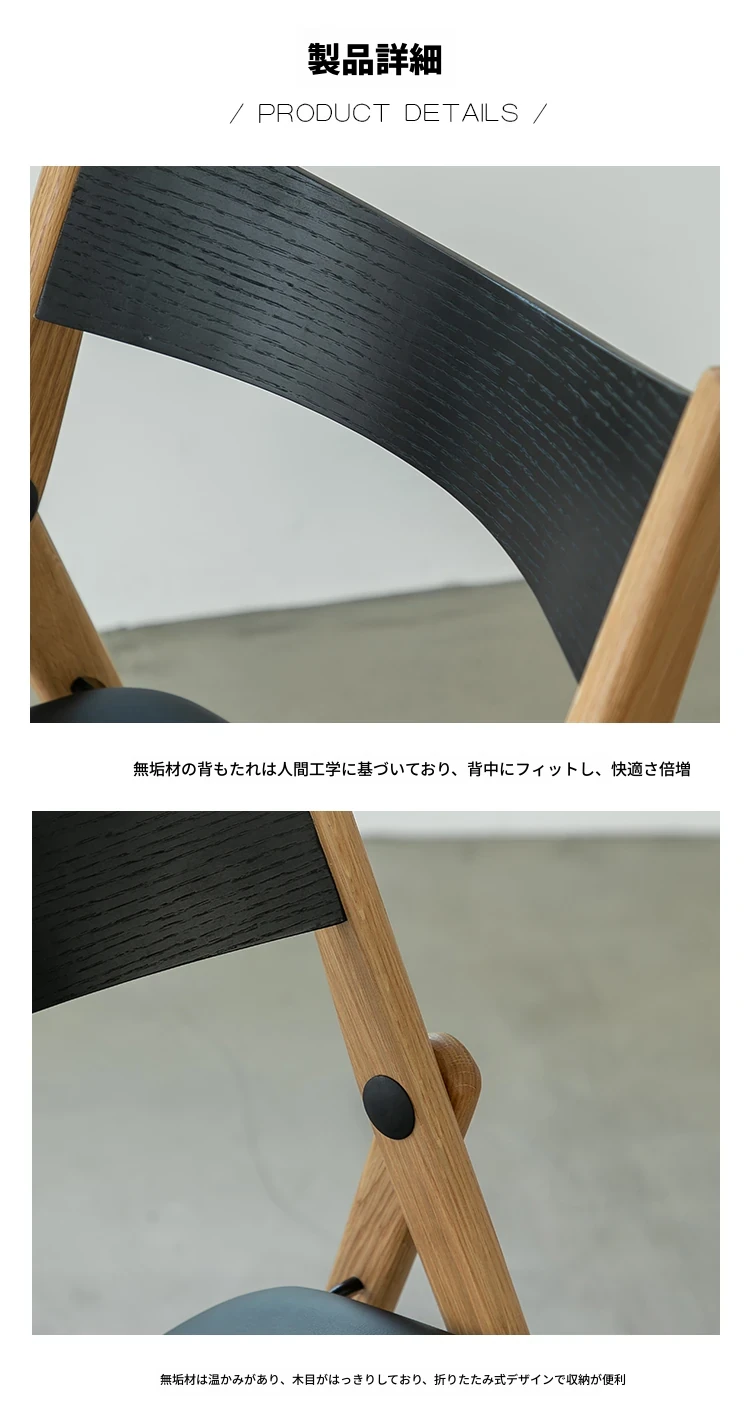 北欧デンマーク製の無垢材折りたたみダイニングチェア|デザイナーズ家庭用・背もたれ付き・便利なスタッキング機能|会議室や家で大活躍!