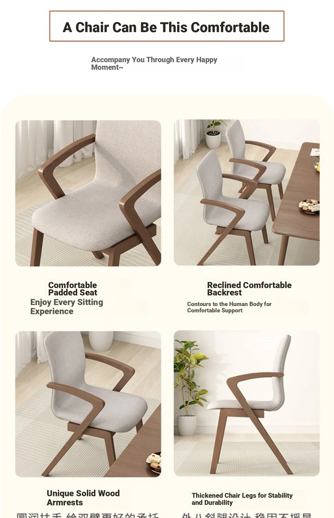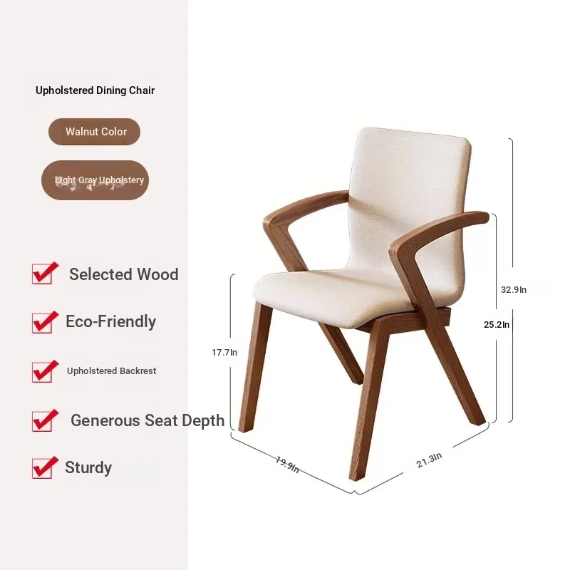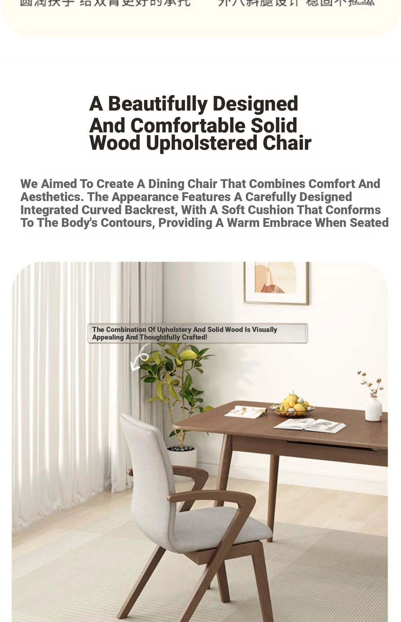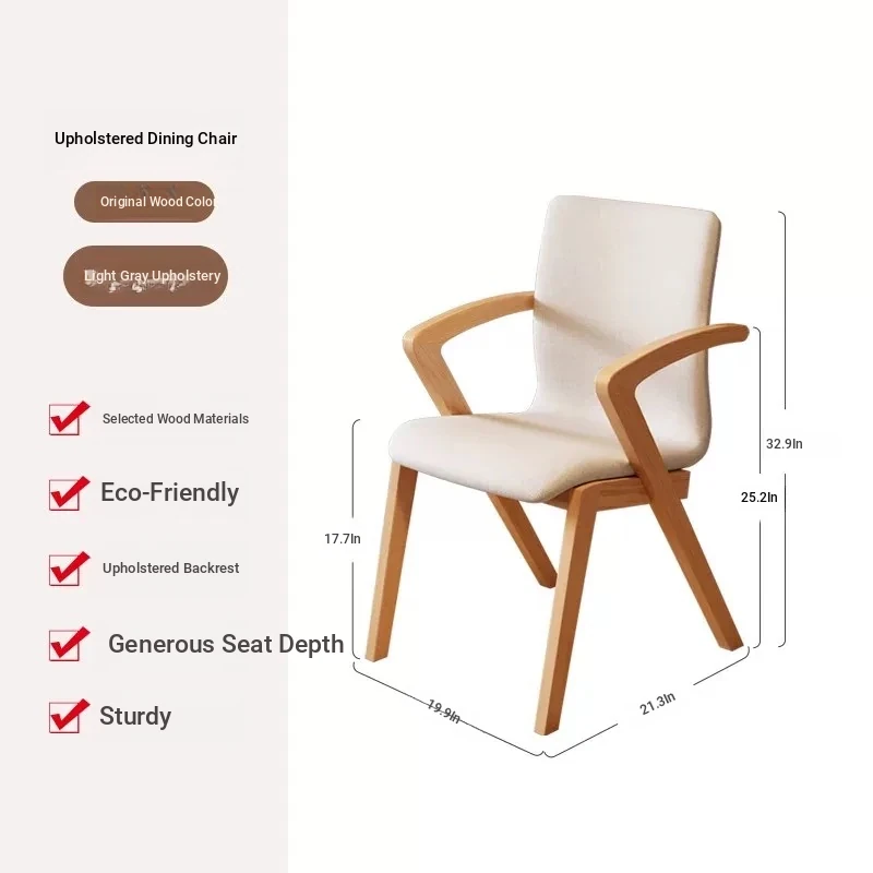 Scandinavian Style Upholstered Wooden Dining Chair - Modern Minimalist Leisure Armchair for Home, Perfect for Study Desks and Dining Rooms, Blending Comfort with Subtle Luxury.